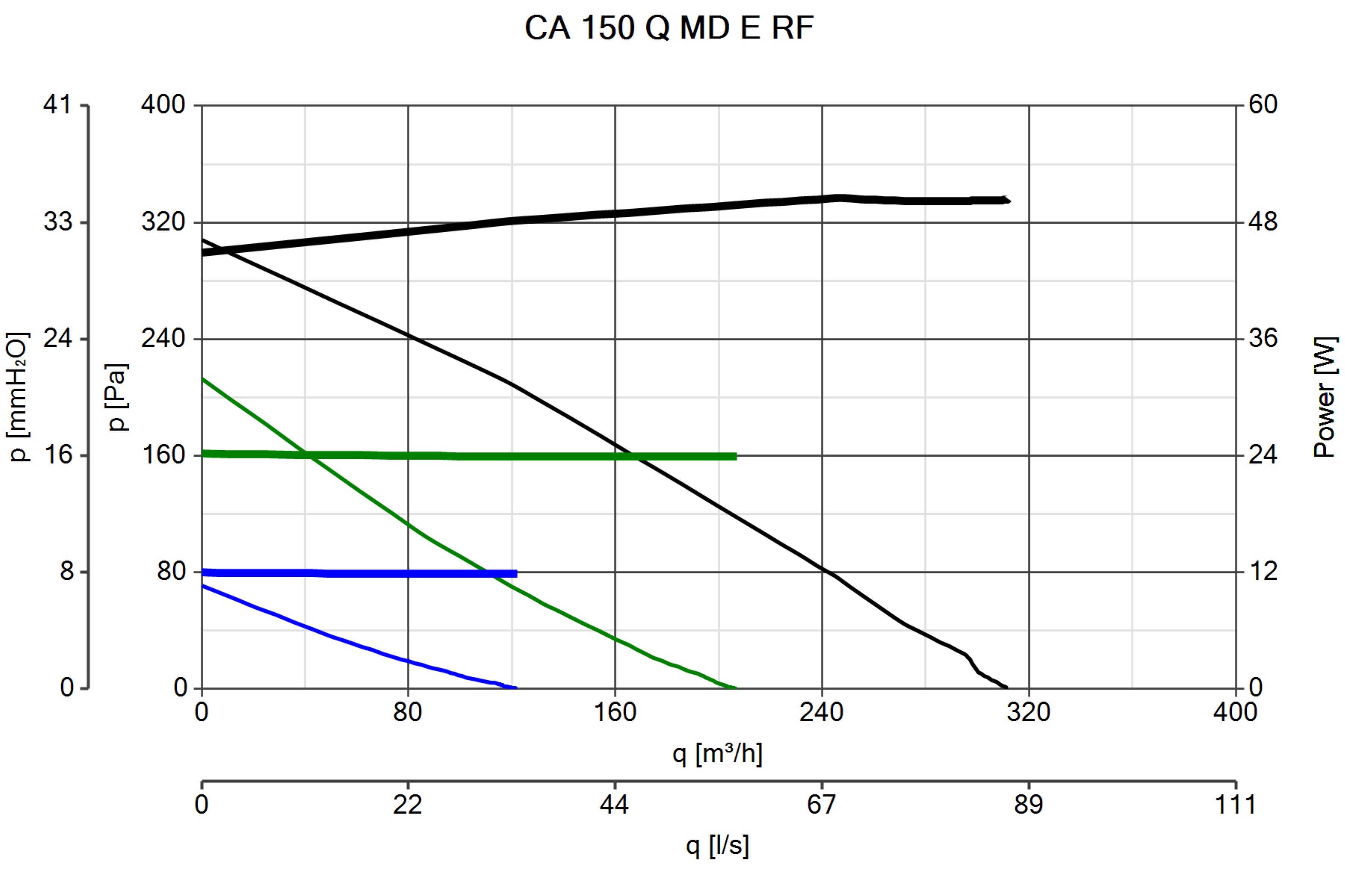 CA 150 Q MD E RF, Dach-Rohrradialventilator, NW 150 mm, aus verzinktem, lackiertem Stahlblech, Farbe hammerschlag grau, Dachhaube aus Kunststoff, 220-240 V~50 Hz, 50 W, max. 312 m³/h, max. 307,9 Pa, max. 2.430 U/min., LP max. 37,5 dB(A) -3m, Schutzart IP45, Schutzklasse II, Temp. max.für Dauerbetrieb 50° C, Motor kugelgelagert, 3-stufig, drehzahlregelbar, mit thermischen Überlastungsschutz