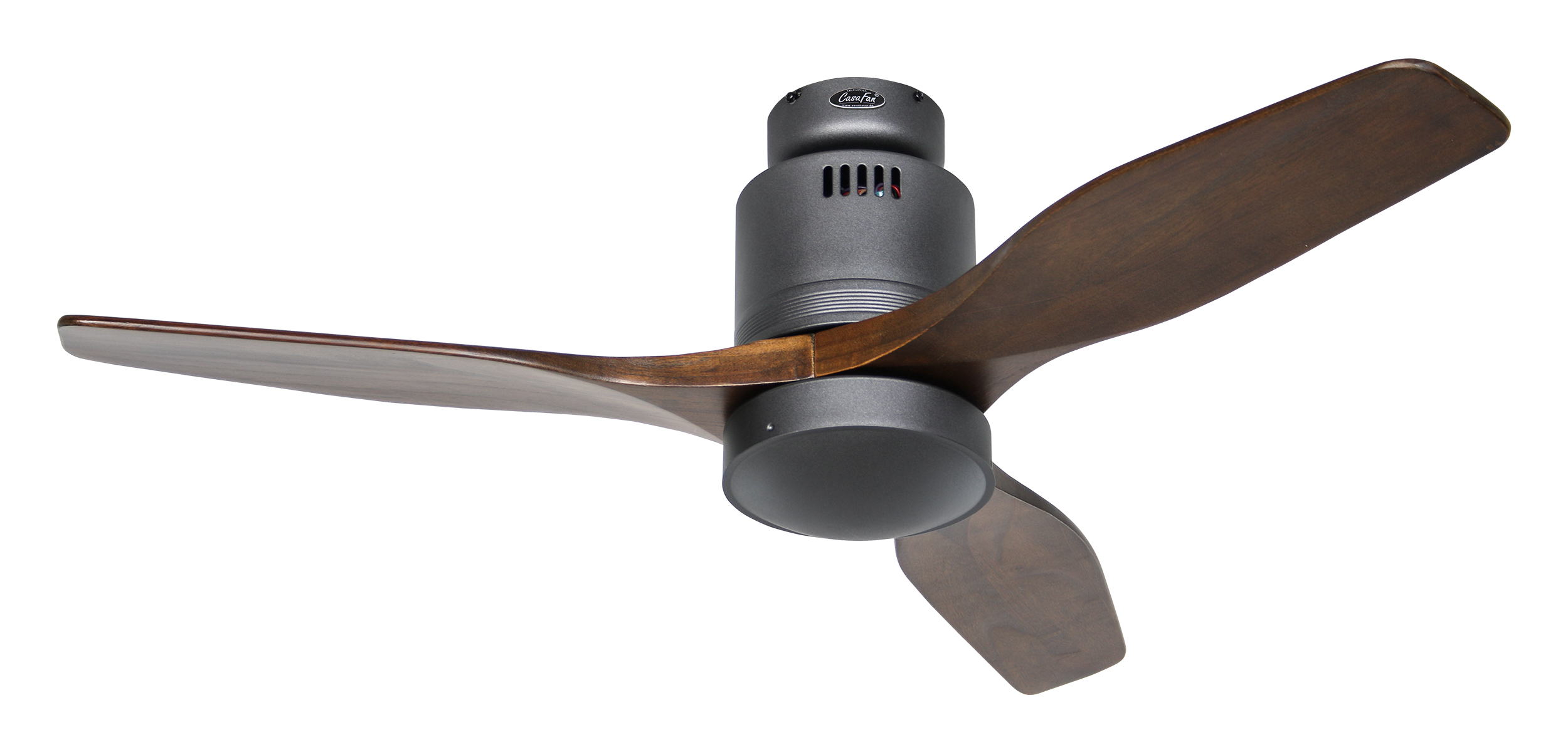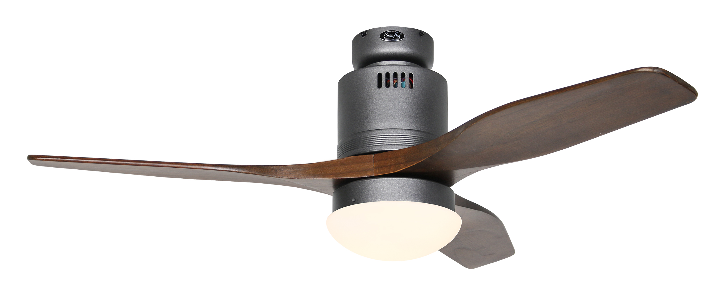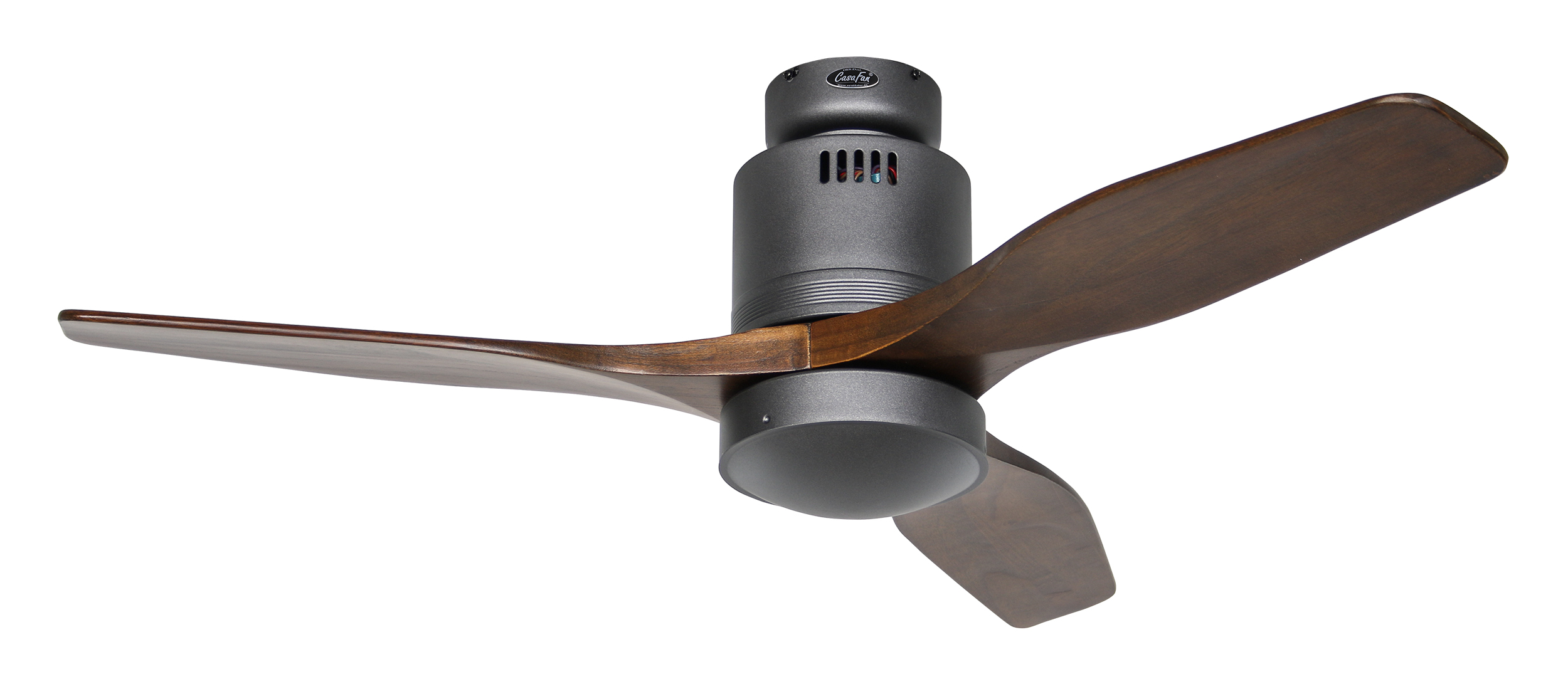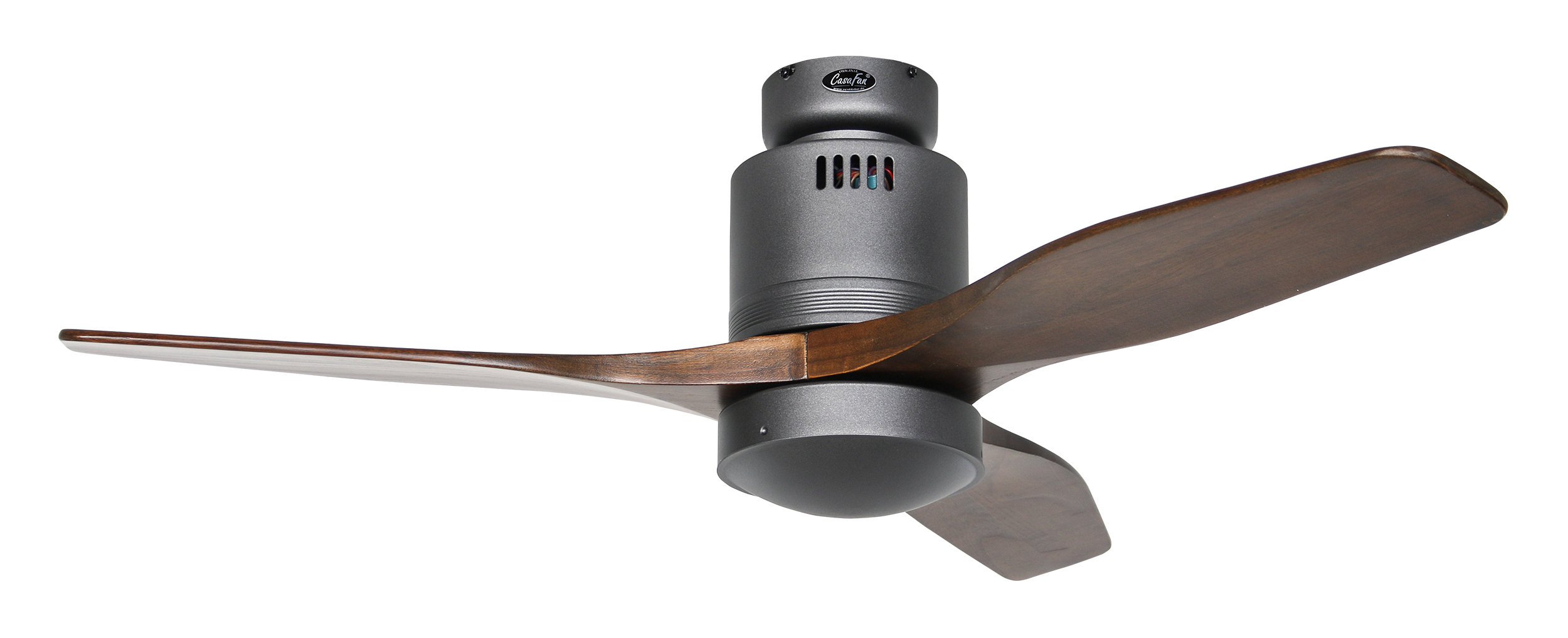 CasaFan AERODYNAMIX ECO 112 BG-NB, Energiespar Deckenventilator, Ø 112 cm, Gehäuse Lack basaltgrau, 3 Flügel Nussbaum, handgefertigt, Massivholz gefräst, 220-240 V 50 Hz, DC/EC Motor 3,8-11,3 W, inkl. Funk-Fernbedienung (Motor 6 Stufen, Vor-/Rückwärtslauf - Sommer/Winter -, Licht ein/aus) und Wandhalter, inkl. Milchglasleuchte 2 x 40 W E14 , auch für Energiesparleuchtmittel geeignet, Montage auch ohne Leuchte und mit Blindabdeckung (im Lieferumfang) möglich, Drehzahl max. 72-191 U/min, Abstand Decke - Flügel 250 mm, Montage nur an geraden Decken (mit optionaler Deckenstange an Schrägen bis 28°), gewuchteter Motor und Flügel, für Raumgrößen bis 16 m², Zubehör wie Flügel und längere Deckenstangen erhältlich