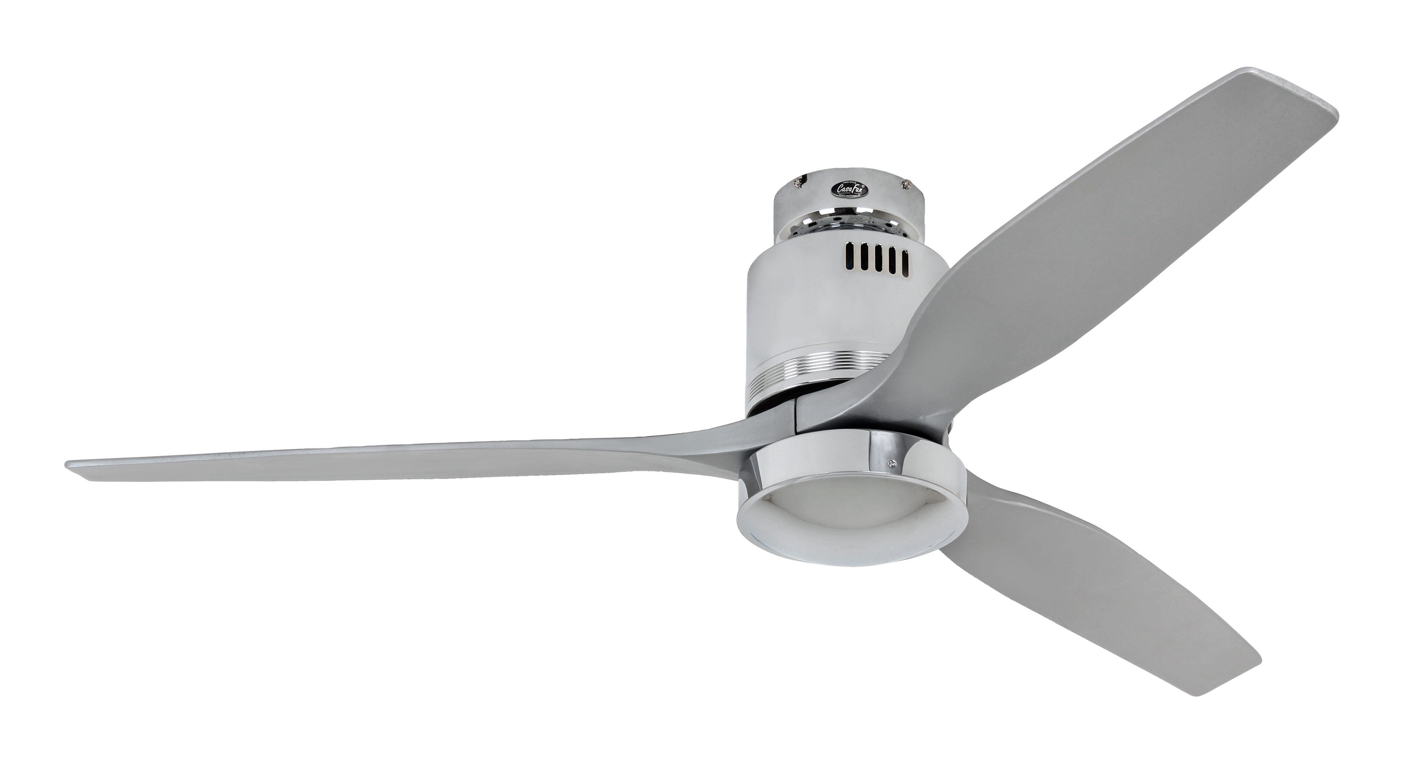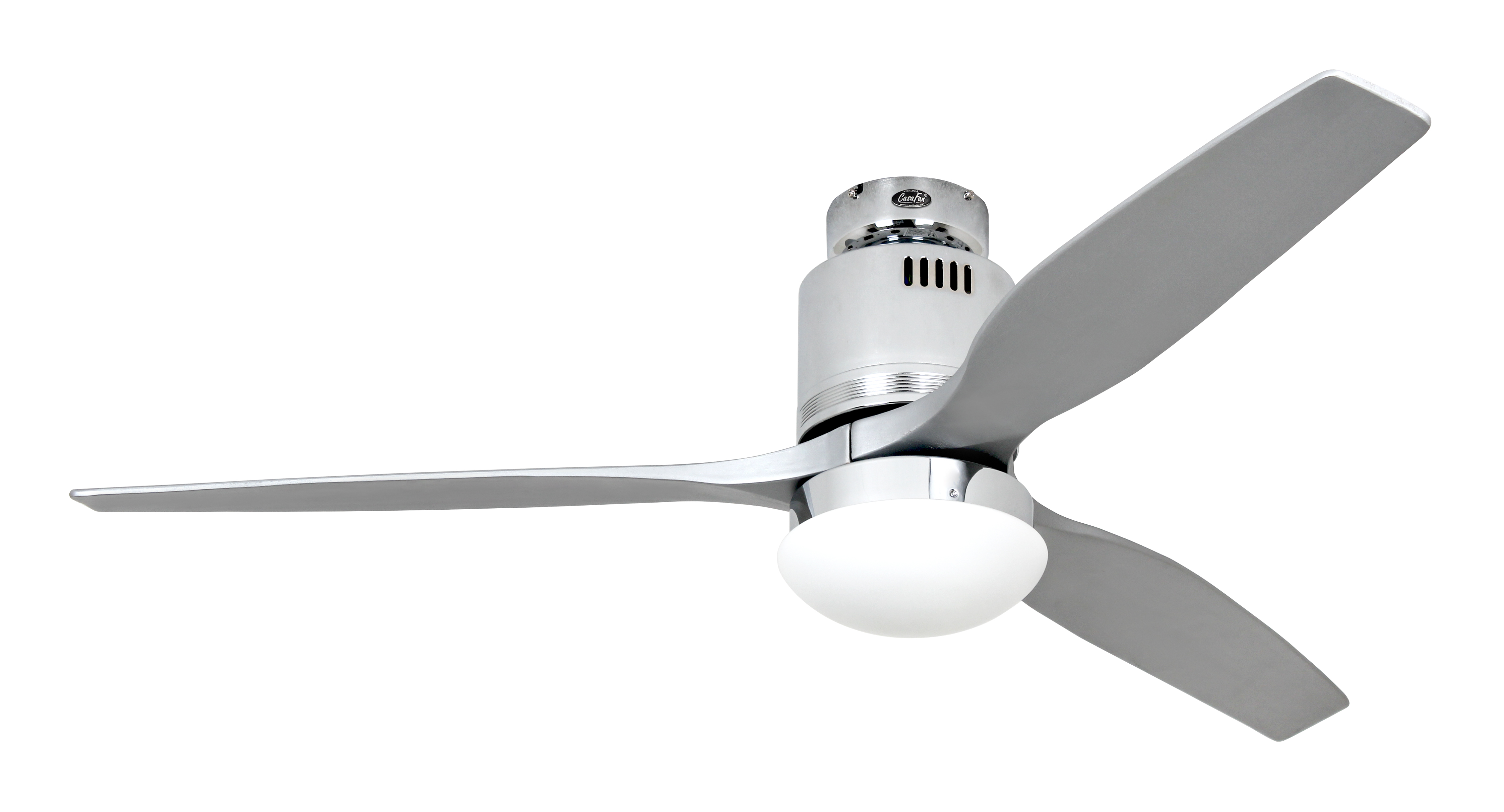 CasaFan AERODYNAMIX ECO 132 CH-SI, Energiespar Deckenventilator, Ø 132 cm, Gehäuse Chrom glänzend, 3 Flügel Lack silber, handgefertigt, Massivholz gefräst, 220-240 V 50 Hz, DC/EC Motor 3,8-20 W, inkl. Funk-Fernbedienung (Motor 6 Stufen, Vor-/Rückwärtslauf - Sommer/Winter -, Licht ein/aus) und Wandhalter, inkl. Milchglasleuchte 2 x 40 W E14 , auch für Energiesparleuchtmittel geeignet, Montage auch ohne Leuchte und mit Blindabdeckung (im Lieferumfang) möglich, Drehzahl max. 72-188 U/min, Abstand Decke - Flügel 250 mm, Montage nur an geraden Decken (mit optionaler Deckenstange an Schrägen bis 28°), gewuchteter Motor und Flügel, für Raumgrößen bis 25 m², Zubehör wie Flügel und längere Deckenstangen erhältlich