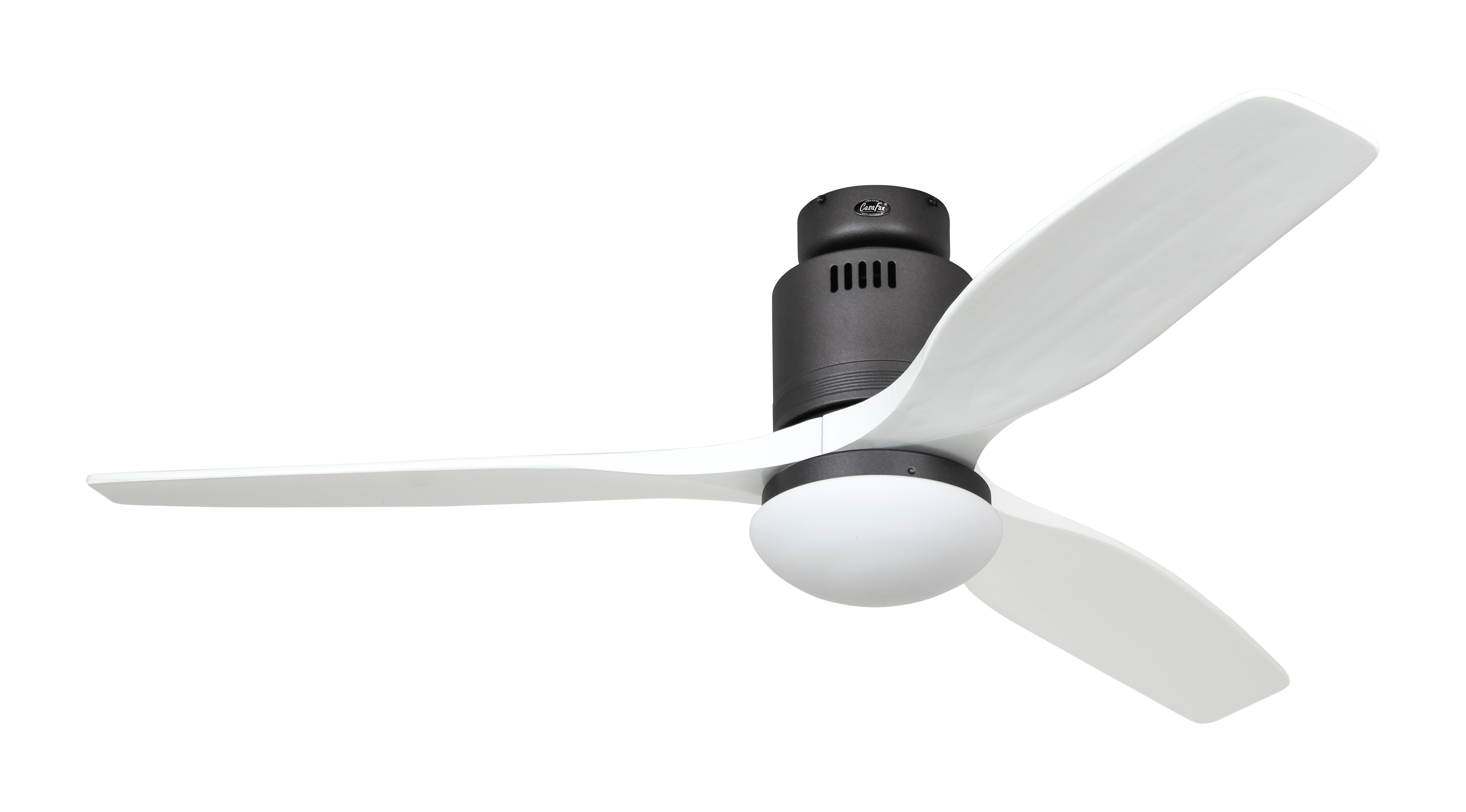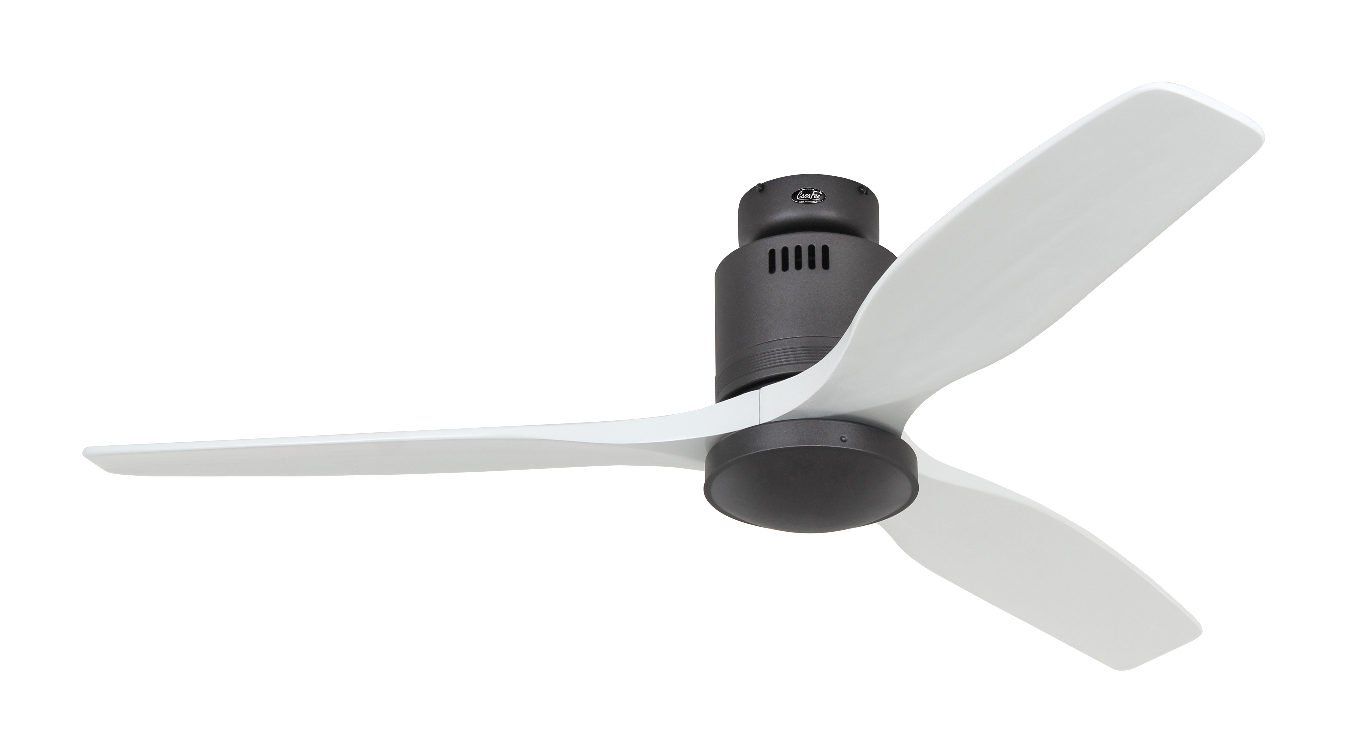 CasaFan AERODYNAMIX ECO 132 BG-WE, Energiespar Deckenventilator, Ø 132 cm, Gehäuse Lack basaltgrau, 3 Flügel Lack weiß, handgefertigt, Massivholz gefräst, 220-240 V 50 Hz, DC/EC Motor 3,8-20 W, inkl. Funk-Fernbedienung (Motor 6 Stufen, Vor-/Rückwärtslauf - Sommer/Winter -, Licht ein/aus) und Wandhalter, inkl. Milchglasleuchte 2 x 40 W E14 , auch für Energiesparleuchtmittel geeignet, Montage auch ohne Leuchte und mit Blindabdeckung (im Lieferumfang) möglich, Drehzahl max. 72-188 U/min, Abstand Decke - Flügel 250 mm, Montage nur an geraden Decken (mit optionaler Deckenstange an Schrägen bis 28°), gewuchteter Motor und Flügel, für Raumgrößen bis 25 m², Zubehör wie Flügel und längere Deckenstangen erhältlich