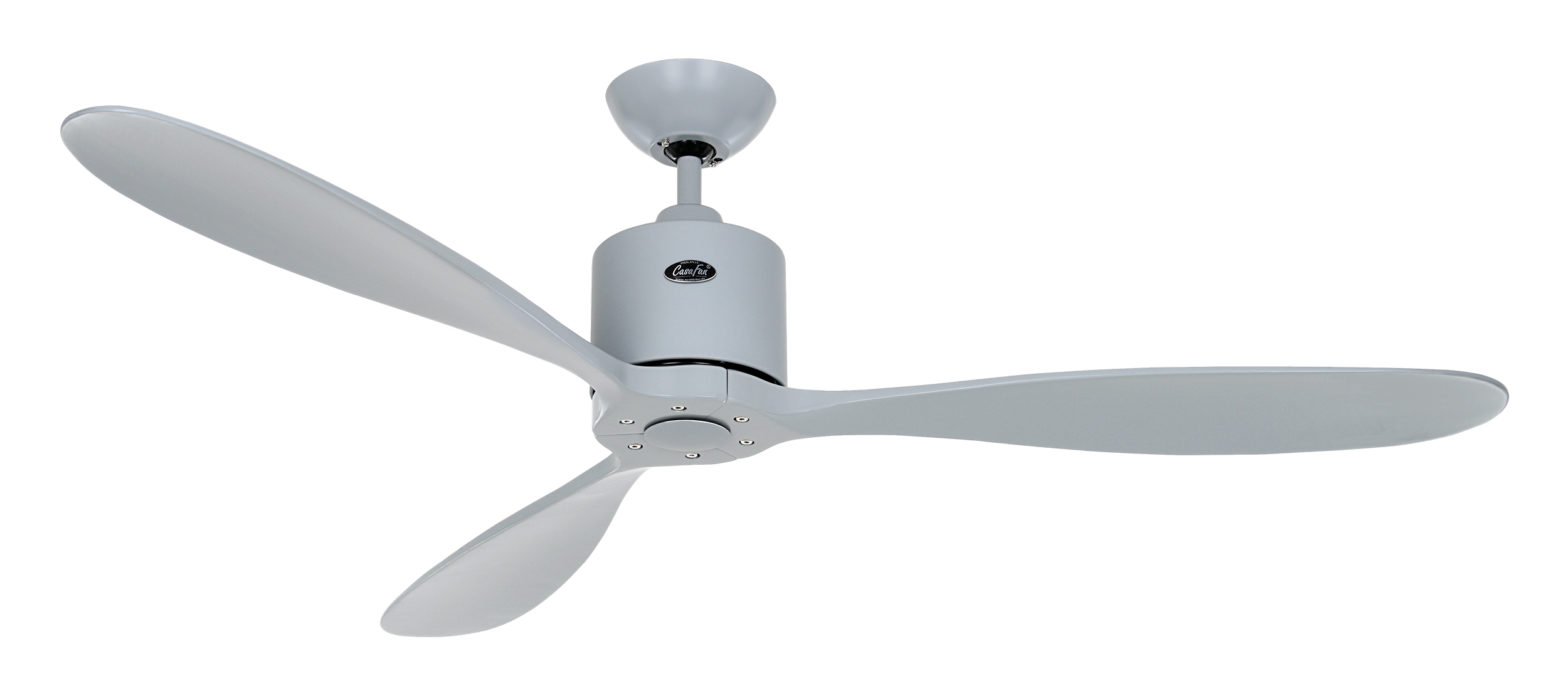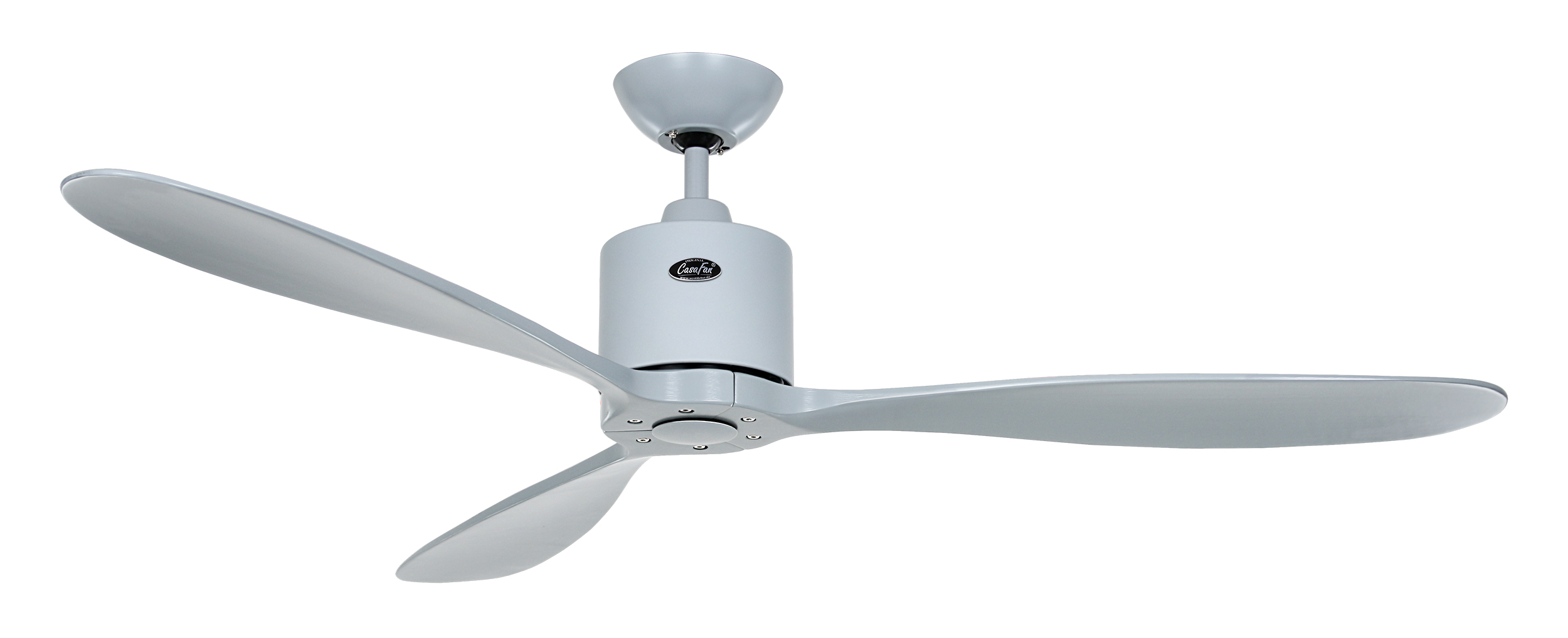 CasaFan AEROPLAN ECO LG-LG, Energiespar Deckenventilator, Ø 132 cm, Gehäuse Lack lichtgrau, 3 Flügel Lack lichtgrau, Massivholz gefräst, 100-240 V 50-60 Hz, DC/EC Motor 2,7-27 W, inkl. Funk-Fernbedienung (Motor 6 Stufen, Vor-/Rückwärtslauf - Sommer/Winter -, Schlaftimer) und Wandhalter, Zeitlupenstufe, Drehzahl max. 30-226 U/min, inkl. 2 Deckenstangen (100 und 60 mm), Abstand Decke - Flügel 310 mm (270 mm mit kurzer Deckenstange), Montage an Schrägen bis 30°, gewuchteter Motor und Flügel, für Raumgrößen bis 25 m², Zubehör wie längere Deckenstangen erhältlich