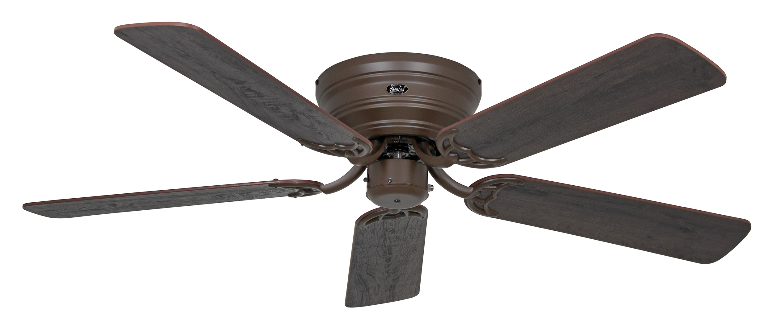 CasaFan CLASSIC FLAT 132-III BZ-AE/EK, Deckenventilator, Ø 132 cm, Gehäuse Lack bronze, 5 Wendeflügel Altholz Eiche/Eiche kolonial, 220-240 V 50 Hz, Motor max. 68 W, 3-Stufen-Zugschalter, Vor-/Rückwärtslauf - Sommer/Winter - über Schiebeschalter, Drehzahl max. 172 U/min, extraflach, Abstand Decke - Flügel 164 mm, extraflach, Montage nur an geraden Decken, gewuchteter Motor und Flügel, für Raumgrößen bis 20 m², nicht für Leuchtenanbau geeignet, Zubehör wie Austauschflügel, Fernbedienungen und Wandschalter erhältlich