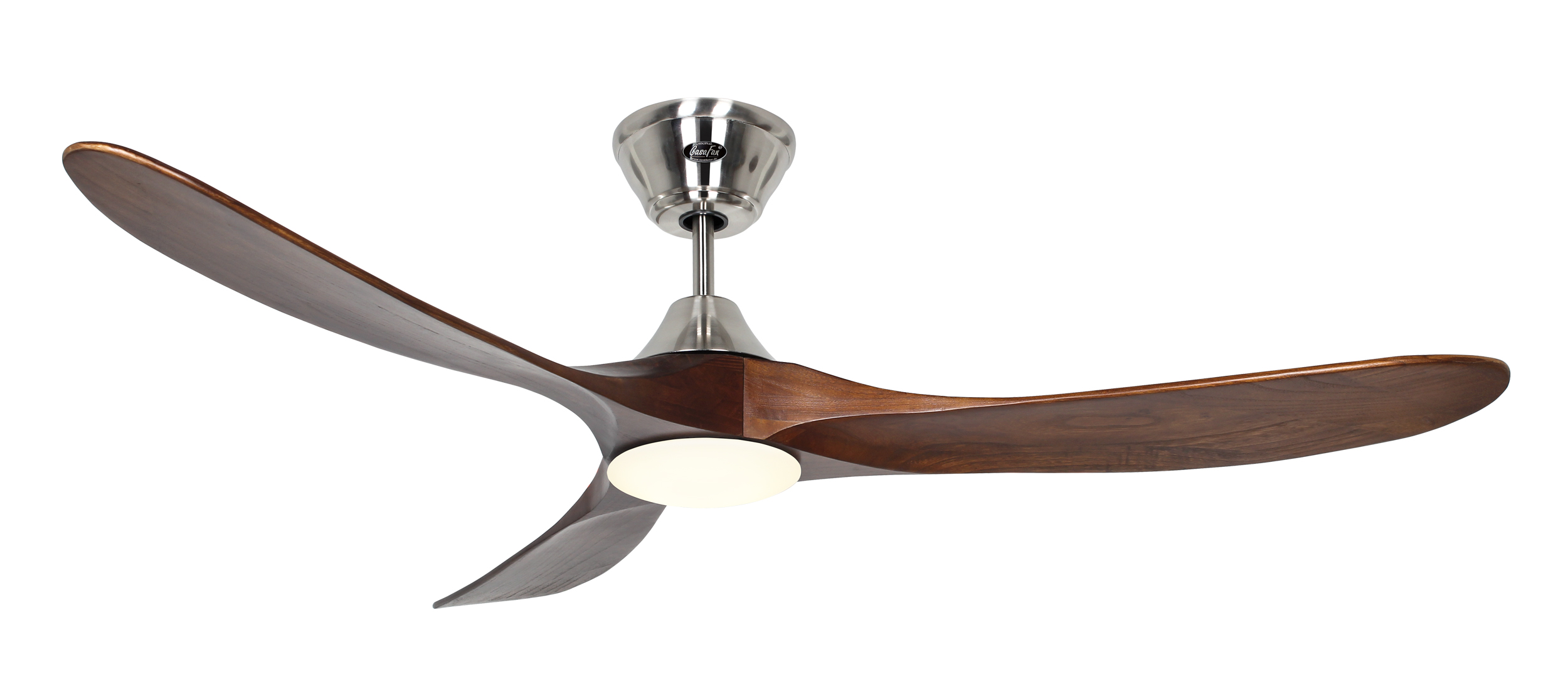 CasaFan ECO GENUINO-L 152 BN-NB, Energiespar Deckenventilator, Ø 152 cm, Gehäuse Chrom gebürstet, 3 Flügel Nussbaum, gefräst aus schichtverleimtem Massivholz, 220-240 V 50 Hz, DC/EC Motor 3,3-16,5 W, inkl. Funk-Fernbedienung (Motor 6 Stufen, Vor-/Rückwärtslauf - Sommer/Winter -, Licht ein/aus/dimmen) und Wandhalter, Zeitlupenstufe, inkl. LED-Leuchte 17 W LED-Modul , Lichtfarbe warmweiß, 3.000 K, 1.800 lm, Abstrahlwinkel 120°, Lebensdauer 20.000 h, CRI 80, dimmbar, Drehzahl max. 50-144 U/min, inkl. 1 Deckenstange (200 mm), Abstand Decke - Flügel 390 mm (290 mm mit kurzer Deckenstange), Montage an Schrägen bis 18°, gewuchteter Motor und Flügel, für Raumgrößen bis 35 m², Zubehör wie längere Deckenstangen erhältlich. Die Leuchte enthält eingebaute LED-Lampen. Einzelne LEDs können in der Leuchte nicht ausgetauscht werden. Ersatz-LED-Module für Reparaturen sind verfügbar.