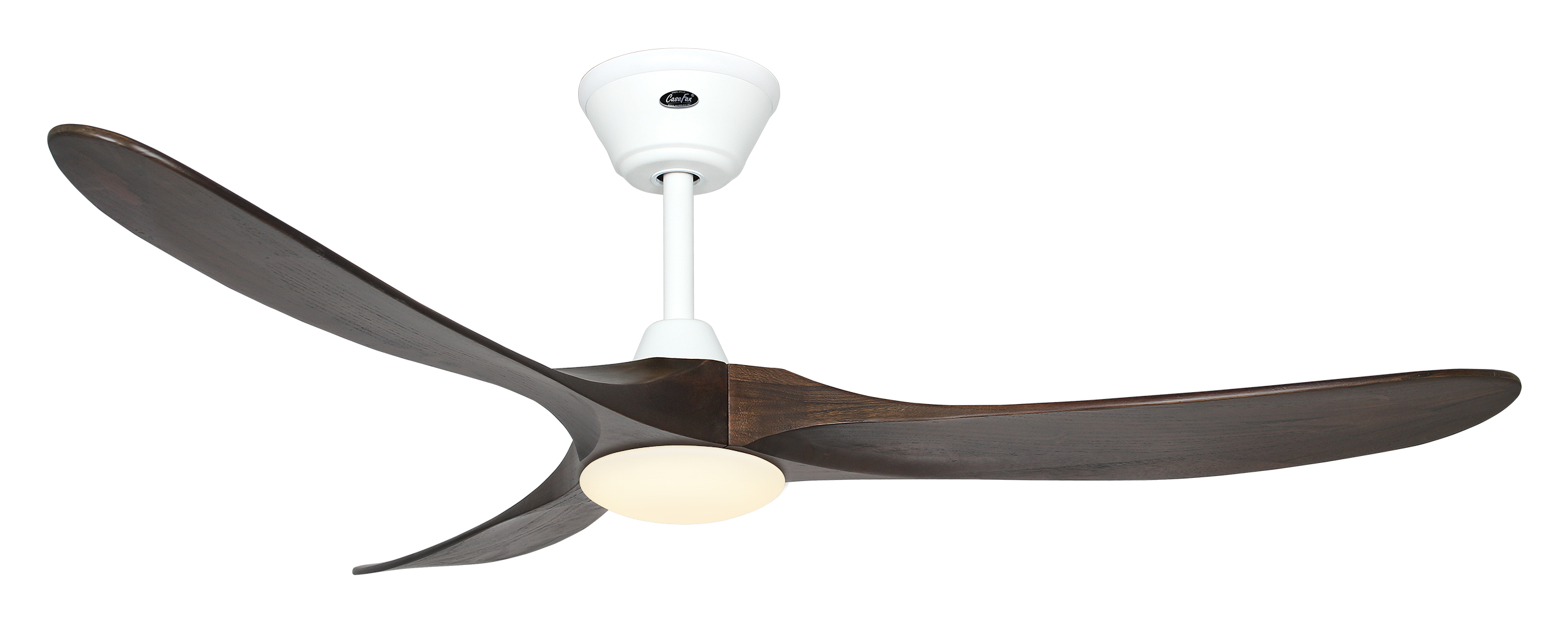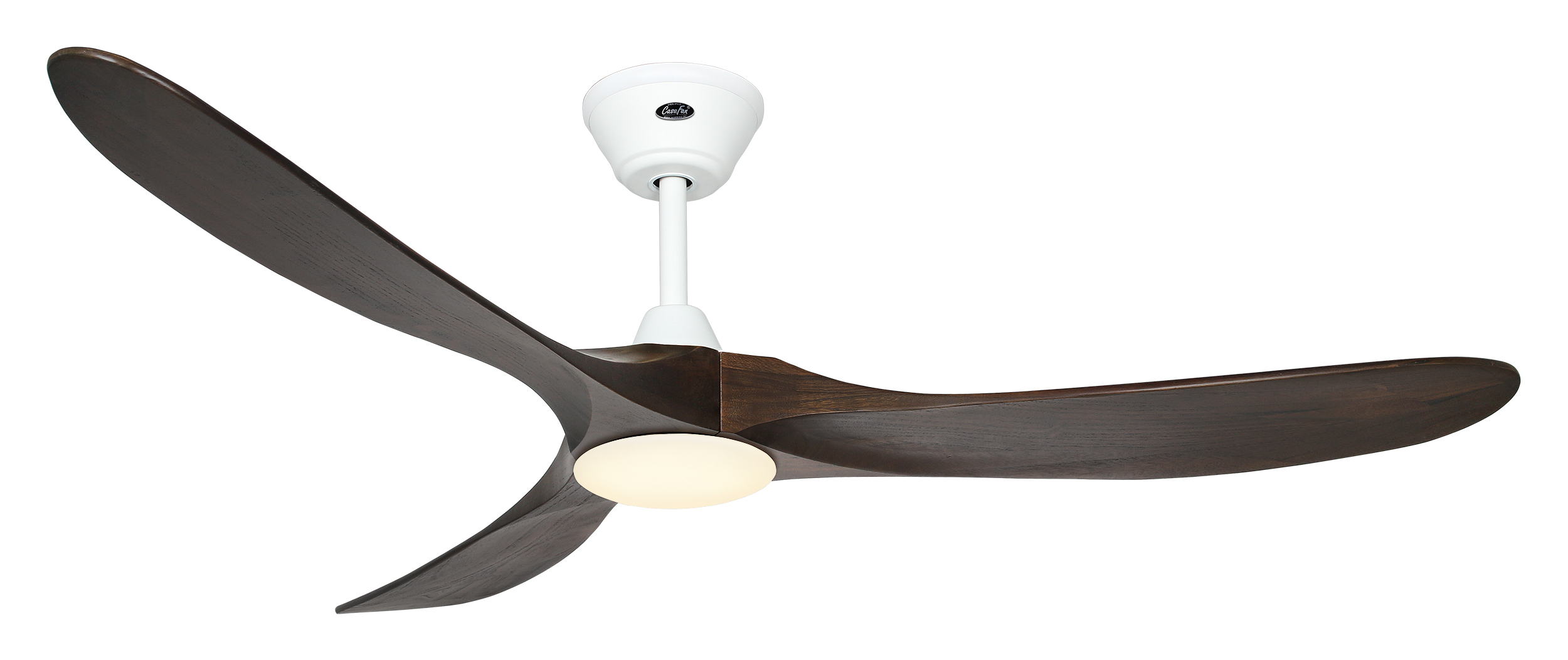 CasaFan ECO GENUINO-L 152 MW-NB, Energiespar Deckenventilator, Ø 152 cm, Gehäuse Lack matt weiß, 3 Flügel Nussbaum, gefräst aus schichtverleimtem Massivholz, 220-240 V 50 Hz, DC/EC Motor 3,3-16,5 W, inkl. Funk-Fernbedienung (Motor 6 Stufen, Vor-/Rückwärtslauf - Sommer/Winter -, Licht ein/aus/dimmen) und Wandhalter, Zeitlupenstufe, inkl. LED-Leuchte 17 W LED-Modul , Lichtfarbe warmweiß, 3.000 K, 1.800 lm, Abstrahlwinkel 120°, Lebensdauer 20.000 h, CRI 80, dimmbar, Drehzahl max. 50-144 U/min, inkl. 1 Deckenstange (200 mm), Abstand Decke - Flügel 390 mm (290 mm mit kurzer Deckenstange), Montage an Schrägen bis 18°, gewuchteter Motor und Flügel, für Raumgrößen bis 35 m², Zubehör wie längere Deckenstangen erhältlich. Die Leuchte enthält eingebaute LED-Lampen. Einzelne LEDs können in der Leuchte nicht ausgetauscht werden. Ersatz-LED-Module für Reparaturen sind verfügbar.