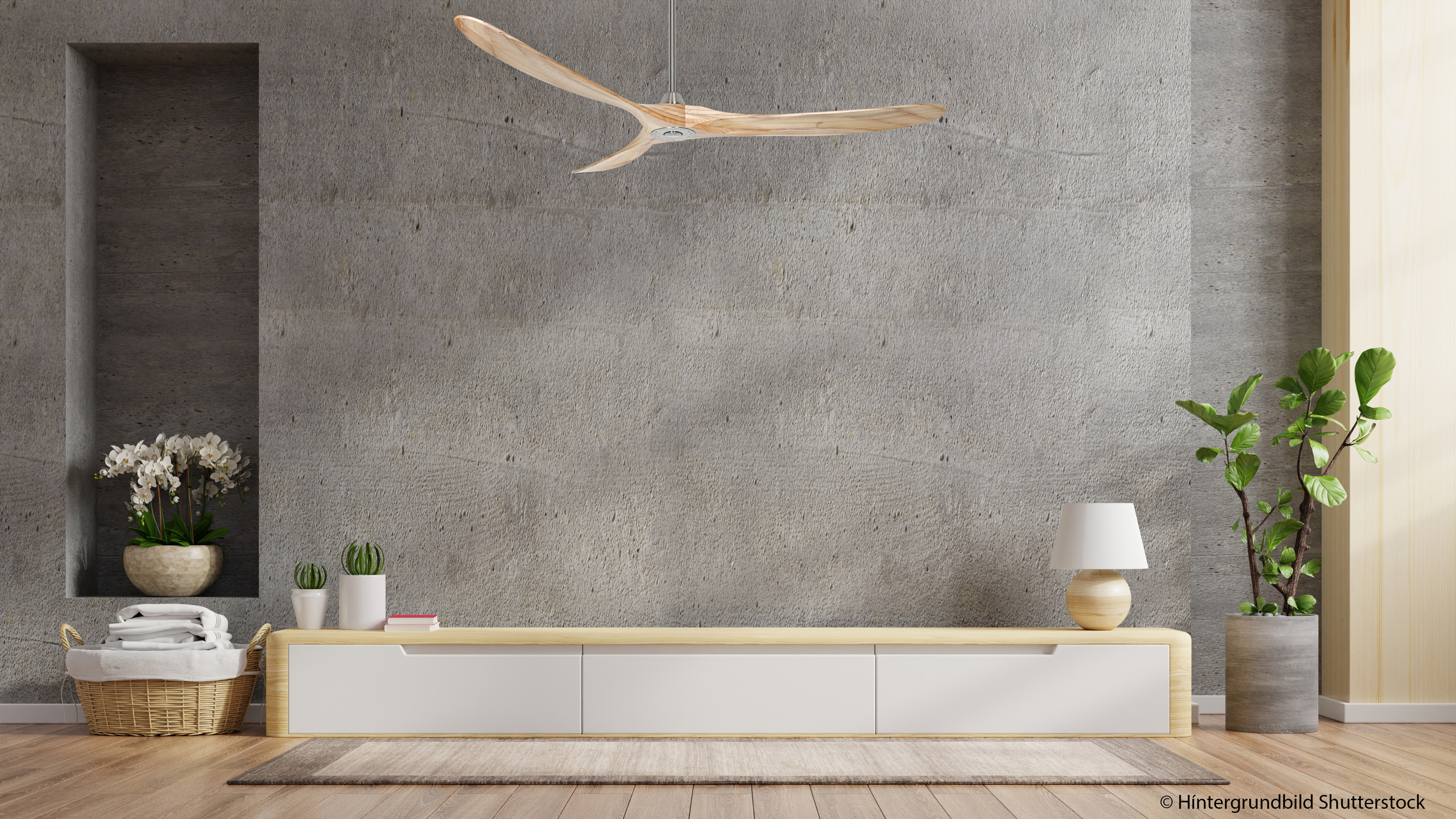 CasaFan ECO GENUINO 180 BN-NT, Energiespar Deckenventilator, Ø 180 cm, Gehäuse Chrom gebürstet, 3 Flügel Holz natur, gefräst aus schichtverleimtem Massivholz, 220-240 V 50 Hz, DC/EC Motor 4,1-30 W, inkl. Funk-Fernbedienung (Motor 6 Stufen, Vor-/Rückwärtslauf - Sommer/Winter -) und Wandhalter, Zeitlupenstufe, Drehzahl max. 50-132 U/min, inkl. 1 Deckenstange (200 mm), Abstand Decke - Flügel 365 mm (285 mm mit gekürzter Deckenstange), Montage an Schrägen bis 12°, gewuchteter Motor und Flügel, für Raumgrößen bis 45 m², Zubehör wie längere Deckenstangen erhältlich