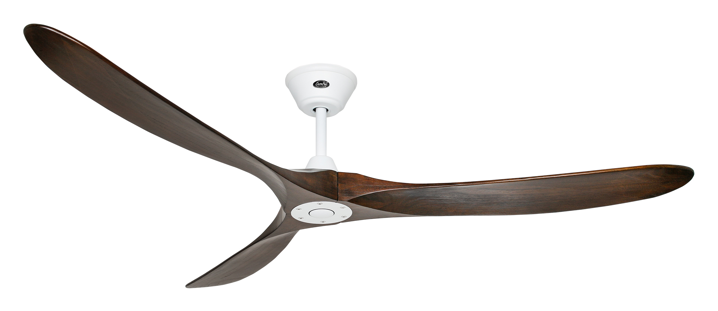 CasaFan ECO GENUINO 180 MW-NB, Energiespar Deckenventilator, Ø 180 cm, Gehäuse Lack matt weiß, 3 Flügel Nussbaum, gefräst aus schichtverleimtem Massivholz, 220-240 V 50 Hz, DC/EC Motor 4,1-30 W, inkl. Funk-Fernbedienung (Motor 6 Stufen, Vor-/Rückwärtslauf - Sommer/Winter -) und Wandhalter, Zeitlupenstufe, Drehzahl max. 50-132 U/min, inkl. 1 Deckenstange (200 mm), Abstand Decke - Flügel 365 mm (285 mm mit gekürzter Deckenstange), Montage an Schrägen bis 12°, gewuchteter Motor und Flügel, für Raumgrößen bis 45 m², Zubehör wie längere Deckenstangen erhältlich