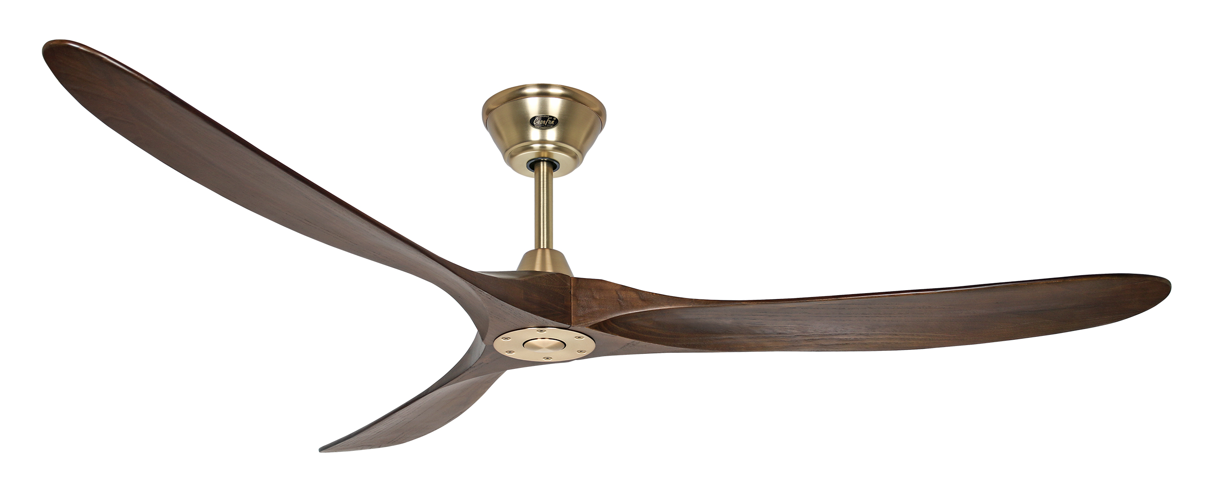 CasaFan ECO GENUINO 180 MG-NB, Energiespar Deckenventilator, Ø 180 cm, Gehäuse Messing gebürstet, 3 Flügel Nussbaum, gefräst aus schichtverleimtem Massivholz, 220-240 V 50 Hz, DC/EC Motor 4,1-30 W, inkl. Funk-Fernbedienung (Motor 6 Stufen, Vor-/Rückwärtslauf - Sommer/Winter -) und Wandhalter, Zeitlupenstufe, Drehzahl max. 50-132 U/min, inkl. 1 Deckenstange (200 mm), Abstand Decke - Flügel 365 mm (285 mm mit gekürzter Deckenstange), Montage an Schrägen bis 12°, gewuchteter Motor und Flügel, für Raumgrößen bis 45 m², Zubehör wie längere Deckenstangen erhältlich