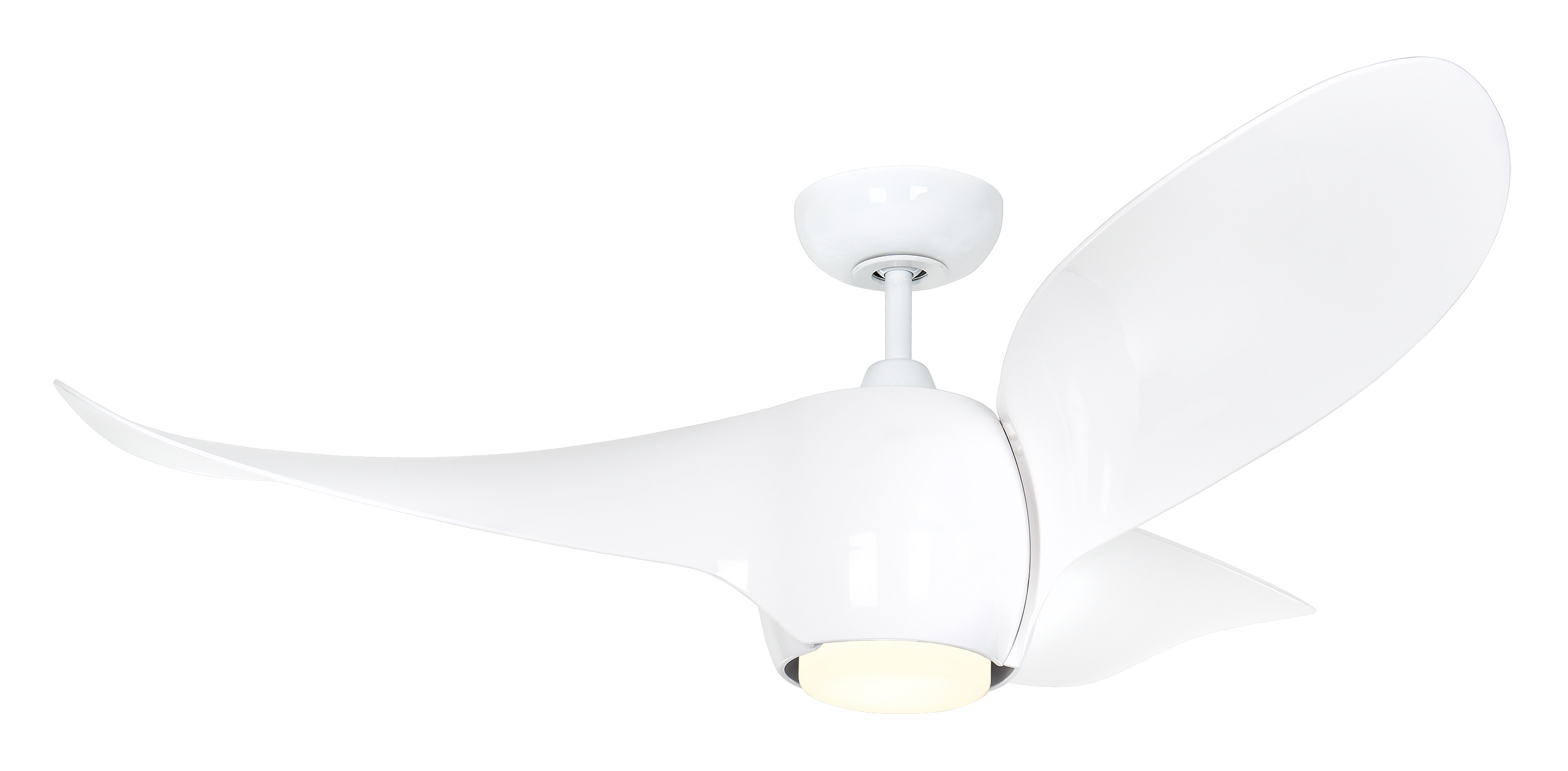 CasaFan ECO HELIX WE-WE, Energiespar Deckenventilator, Ø 132 cm, Gehäuse Lack weiß, 3 Flügel Lack weiß, Gehäuse und Flügel Kunststoff, 220-240 V 50 Hz, DC/EC Motor 2-31 W, inkl. LED-Leuchte 17 W Modul ML111B, Lichtfarbe warmweiß, 3.000 K, 1.800 lm, CRI 80, Abstrahlwinkel 120°, Lebensdauer 30.000 h, Energieeffizienzklasse F (Spektrum G bis A), nicht dimmbar, inkl. Funk-Fernbedienung (Motor 6 Stufen, Vor-/Rückwärtslauf - Sommer/Winter -, Licht ein/aus) und Wandhalter, Zeitlupenstufe, Drehzahl max. 30-163 U/min, inkl. 2 Deckenstangen (130 und 60 mm), Abstand Decke - Flügel 360 mm (300 mit kurzer Deckenstange), Montage an Schrägen bis 30°, gewuchteter Motor und Flügel, für Raumgrößen bis 35 m², Zubehör wie längere Deckenstangen erhältlich. Die Leuchte enthält eingebaute LED-Lampen. Einzelne LEDs können in der Leuchte nicht ausgetauscht werden. Ersatz-LED-Module verfügbar.