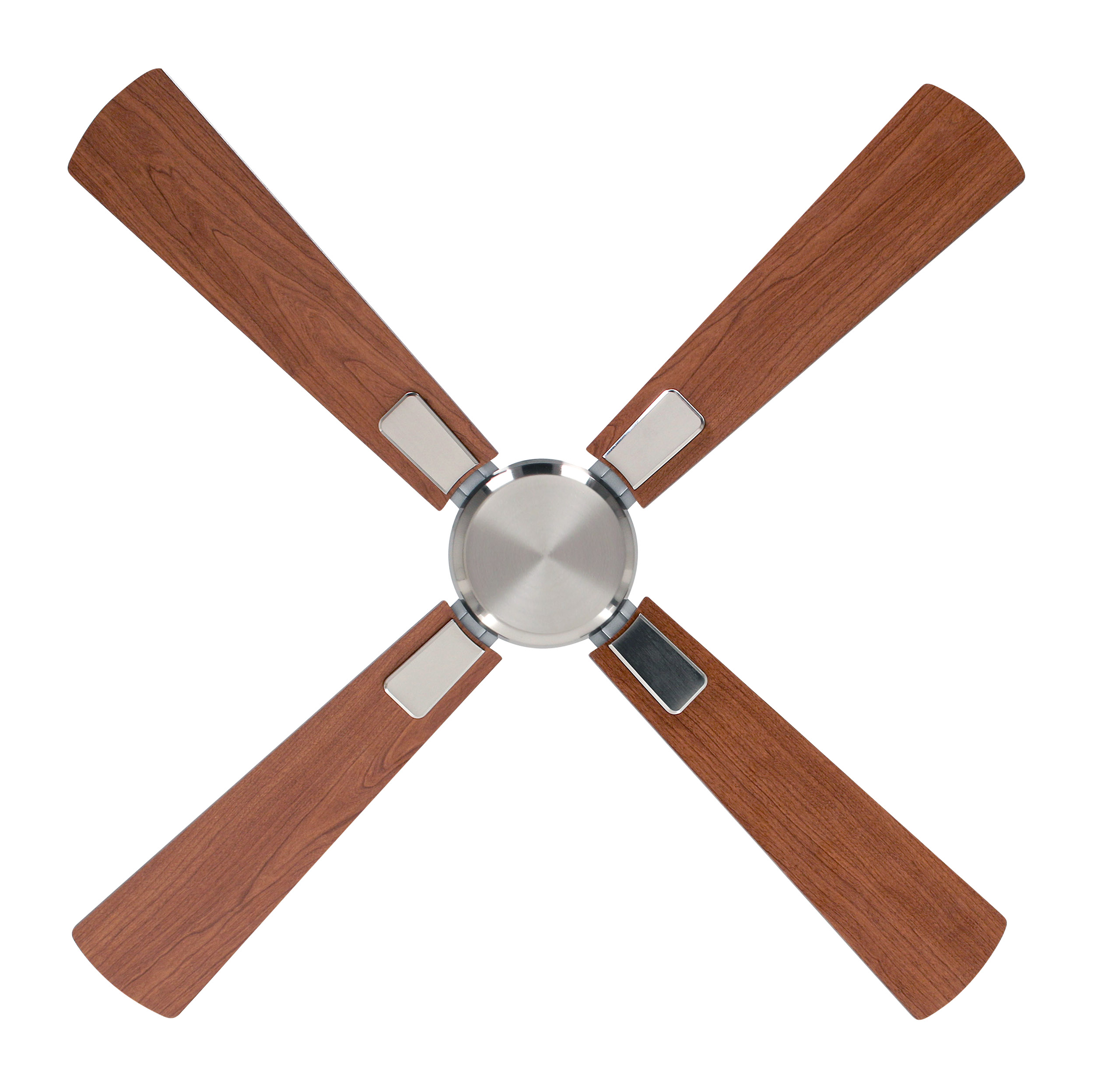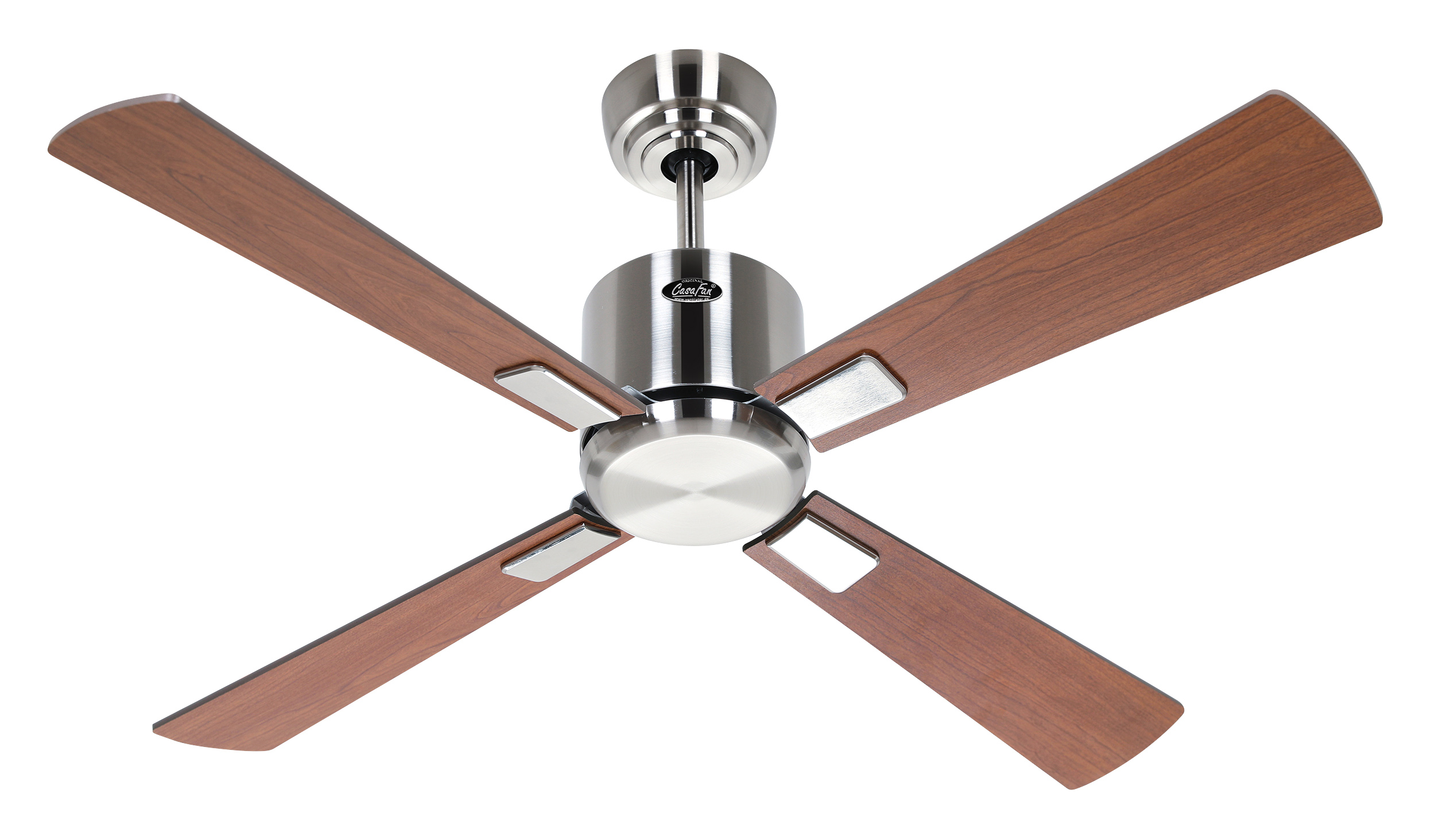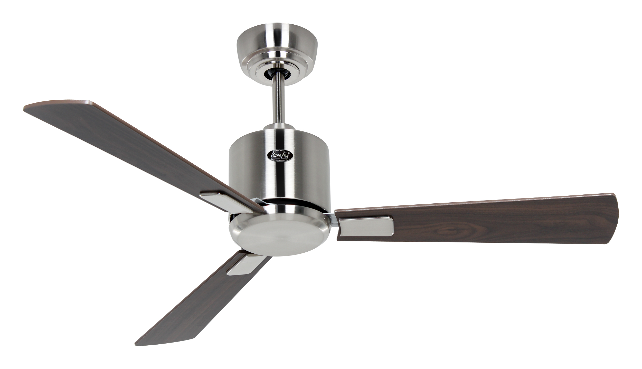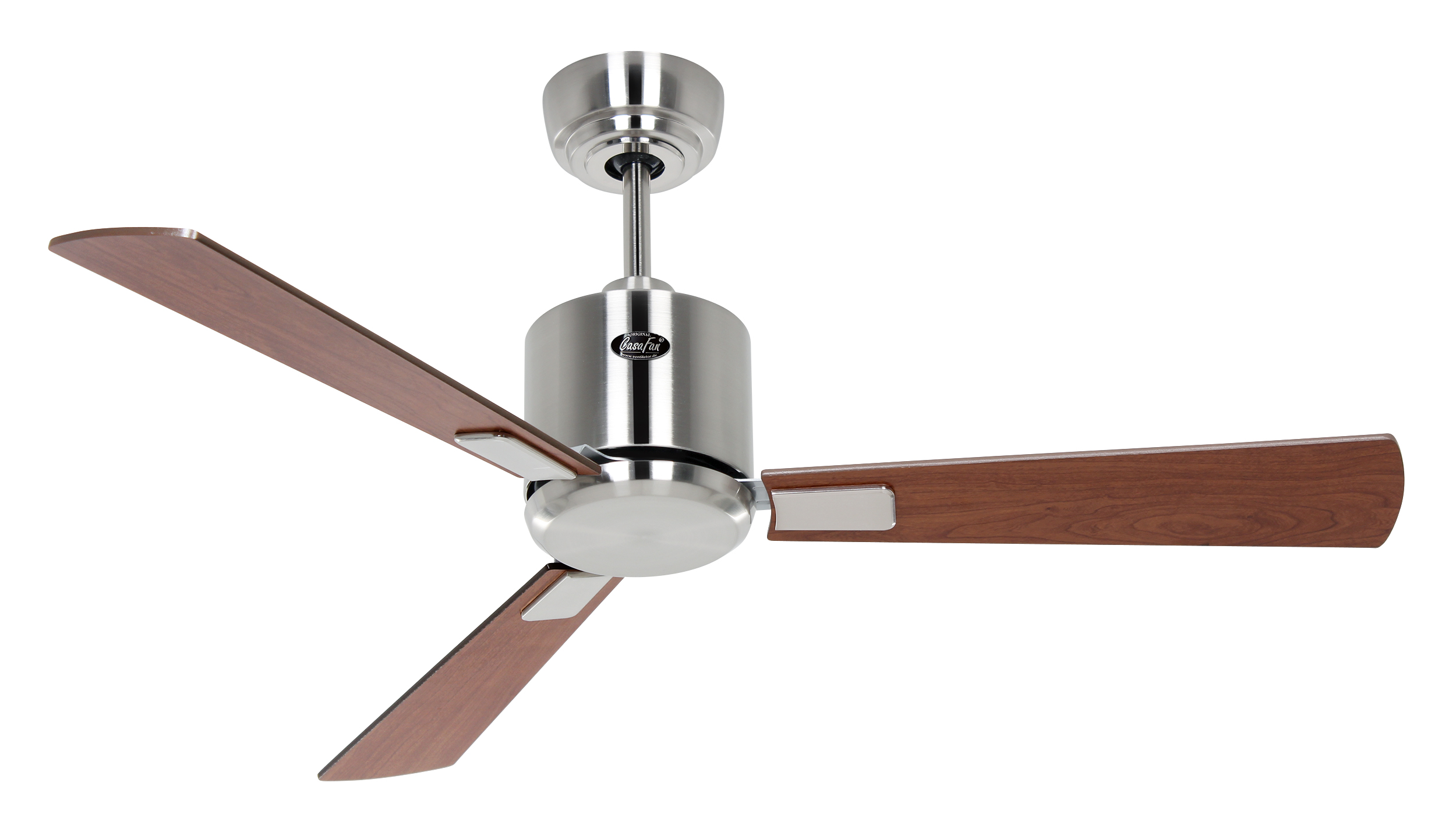 CasaFan ECO NEO III 103 BN-NB/KI 0 - 10 V, Energiespar Deckenventilator mit 0 - 10 V Schnittstelle, Ø 103 cm, Gehäuse Chrom gebürstet, 4 Wendeflügel Nussbaum/Kirschbaum (wahlweise 2,3,4 montierbar), 100-240 V 50-60 Hz, DC/EC Motor 2,5-16 W, inkl. Funk-Fernbedienung (Motor 6 Stufen, Vor-/Rückwärtslauf - Sommer/Winter -, Schlaftimer, Licht ein/aus/dimmen) und Wandhalter, Zeitlupenstufe, Drehzahl max. 30-208 U/min, inkl. 2 Deckenstangen (150 und 80 mm), Abstand Decke - Flügel 360 mm (290 mm mit kurzer Deckenstange, 270 mm mit gekürzter Deckenstange), Montage an Schrägen bis 23°, gewuchteter Motor und Flügel, für Raumgrößen bis 13 m², Zubehör wie Leuchten, Austauschflügel und längere Deckenstangen erhältlich