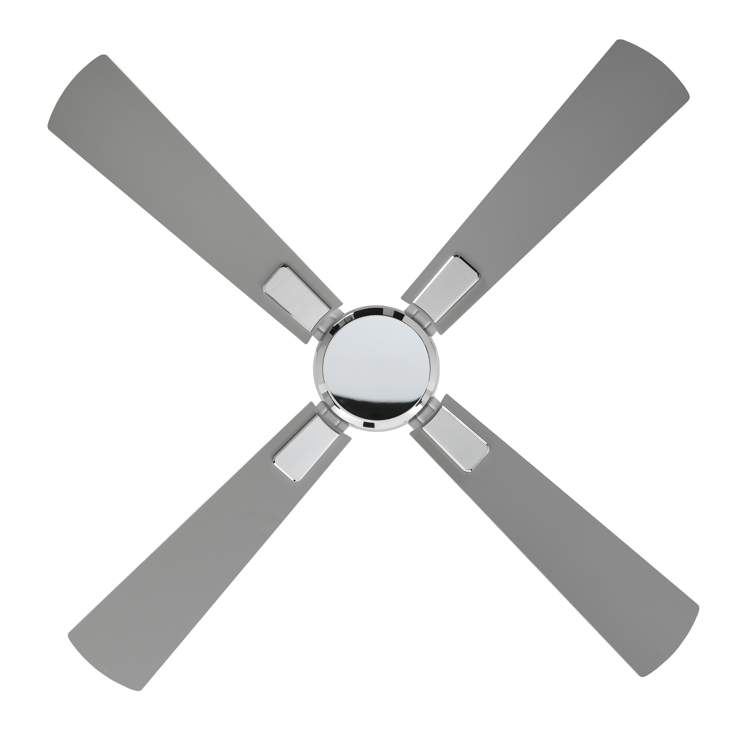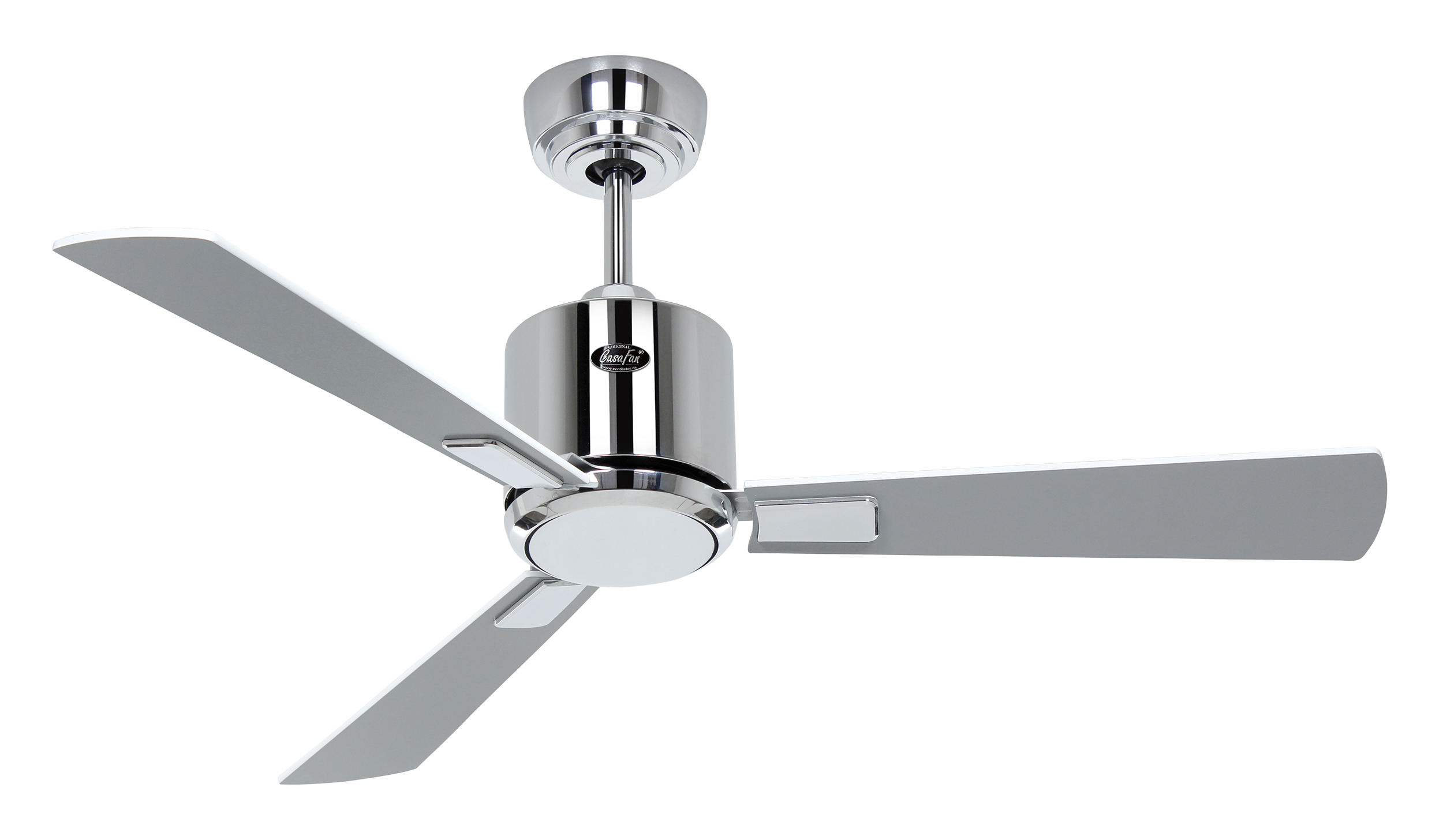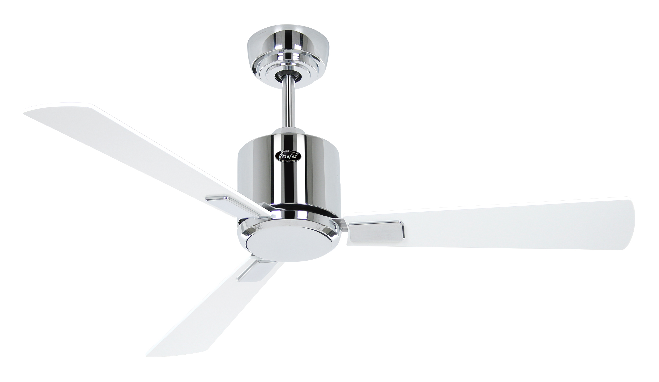CasaFan ECO NEO III 103 CH-WE/LG 0 - 10 V, Energiespar Deckenventilator mit 0 - 10 V Schnittstelle, Ø 103 cm, Gehäuse Chrom glänzend, 4 Wendeflügel Lack weiß/Lack lichtgrau (wahlweise 2,3,4 montierbar), 100-240 V 50-60 Hz, DC/EC Motor 2,5-16 W, inkl. Funk-Fernbedienung (Motor 6 Stufen, Vor-/Rückwärtslauf - Sommer/Winter -, Schlaftimer, Licht ein/aus/dimmen) und Wandhalter, Zeitlupenstufe, Drehzahl max. 30-208 U/min, inkl. 2 Deckenstangen (150 und 80 mm), Abstand Decke - Flügel 360 mm (290 mm mit kurzer Deckenstange, 270 mm mit gekürzter Deckenstange), Montage an Schrägen bis 23°, gewuchteter Motor und Flügel, für Raumgrößen bis 13 m², Zubehör wie Leuchten, Austauschflügel und längere Deckenstangen erhältlich