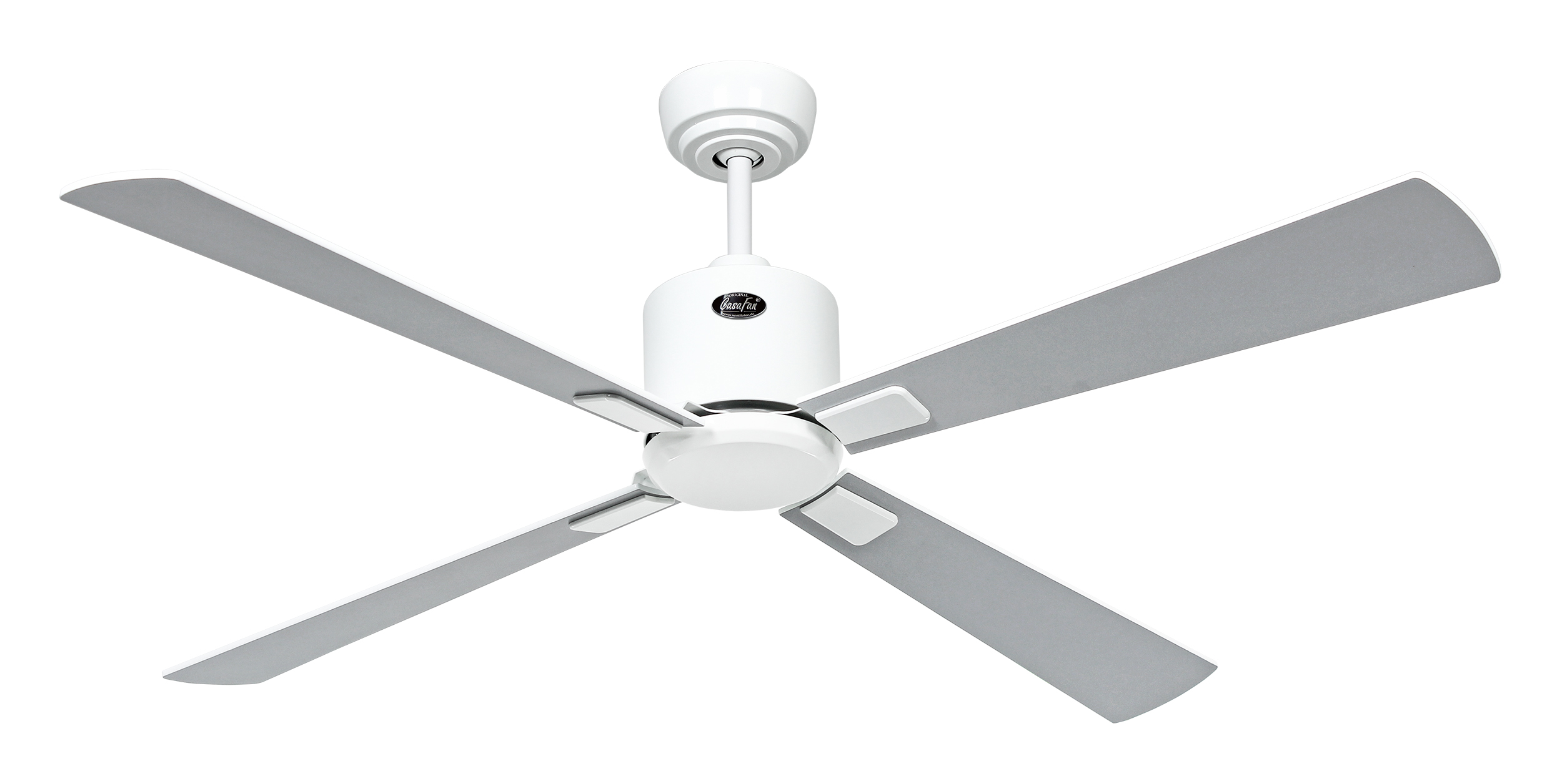 CasaFan ECO NEO III 132 WE-WE/LG 0 - 10 V, Energiespar Deckenventilator mit 0 - 10 V Schnittstelle, Ø 132 cm, Gehäuse Lack weiß, 4 Wendeflügel Lack weiß/Lack lichtgrau (wahlweise 2,3,4 montierbar), 100-240 V 50-60 Hz, DC/EC Motor 2,3-27 W, inkl. Funk-Fernbedienung (Motor 6 Stufen, Vor-/Rückwärtslauf - Sommer/Winter -, Schlaftimer, Licht ein/aus/dimmen) und Wandhalter, Zeitlupenstufe, Drehzahl max. 30-185 U/min, inkl. 2 Deckenstangen (150 und 80 mm), Abstand Decke - Flügel 360 mm (290 mm mit kurzer Deckenstange, 270 mm mit gekürzter Deckenstange), Montage an Schrägen bis 23°, gewuchteter Motor und Flügel, für Raumgrößen bis 25 m², Zubehör wie Leuchten, Austauschflügel und längere Deckenstangen erhältlich