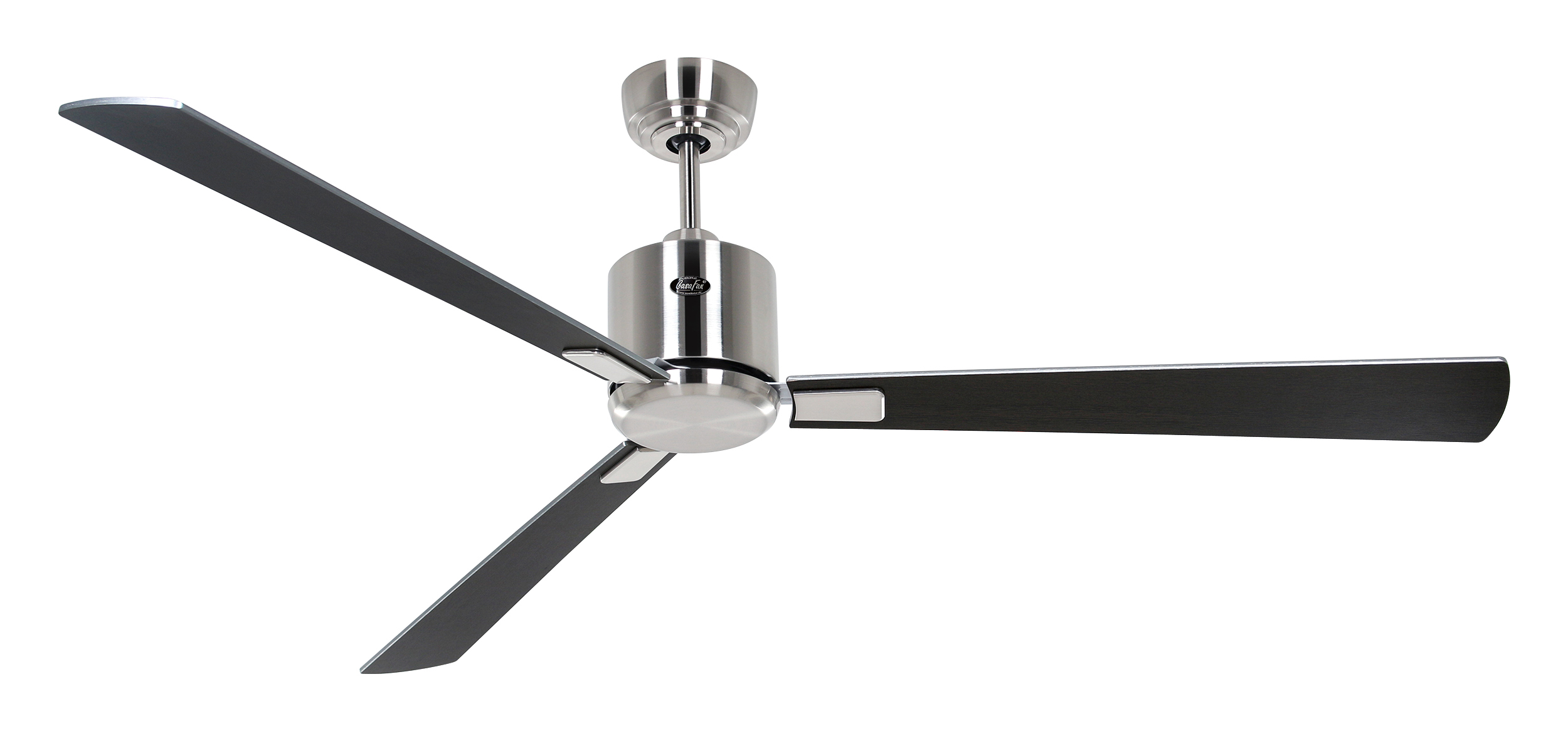 CasaFan ECO NEO III 152 BN-WN/SI 0 - 10 V, Energiespar Deckenventilator mit 0 - 10 V Schnittstelle, Ø 152 cm, Gehäuse Chrom gebürstet, 4 Wendeflügel Wenge/Lack silber (wahlweise 2,3,4 montierbar), 100-240 V 50-60 Hz, DC/EC Motor 2,5-27 W, inkl. Funk-Fernbedienung (Motor 6 Stufen, Vor-/Rückwärtslauf - Sommer/Winter -, Schlaftimer, Licht ein/aus/dimmen) und Wandhalter, Zeitlupenstufe, Drehzahl max. 30-150 U/min, inkl. 2 Deckenstangen (150 und 80 mm), Abstand Decke - Flügel 360 mm (290 mm mit kurzer Deckenstange, 270 mm mit gekürzter Deckenstange), Montage an Schrägen bis 23°, gewuchteter Motor und Flügel, für Raumgrößen bis 35 m², Zubehör wie Leuchten, Austauschflügel und längere Deckenstangen erhältlich