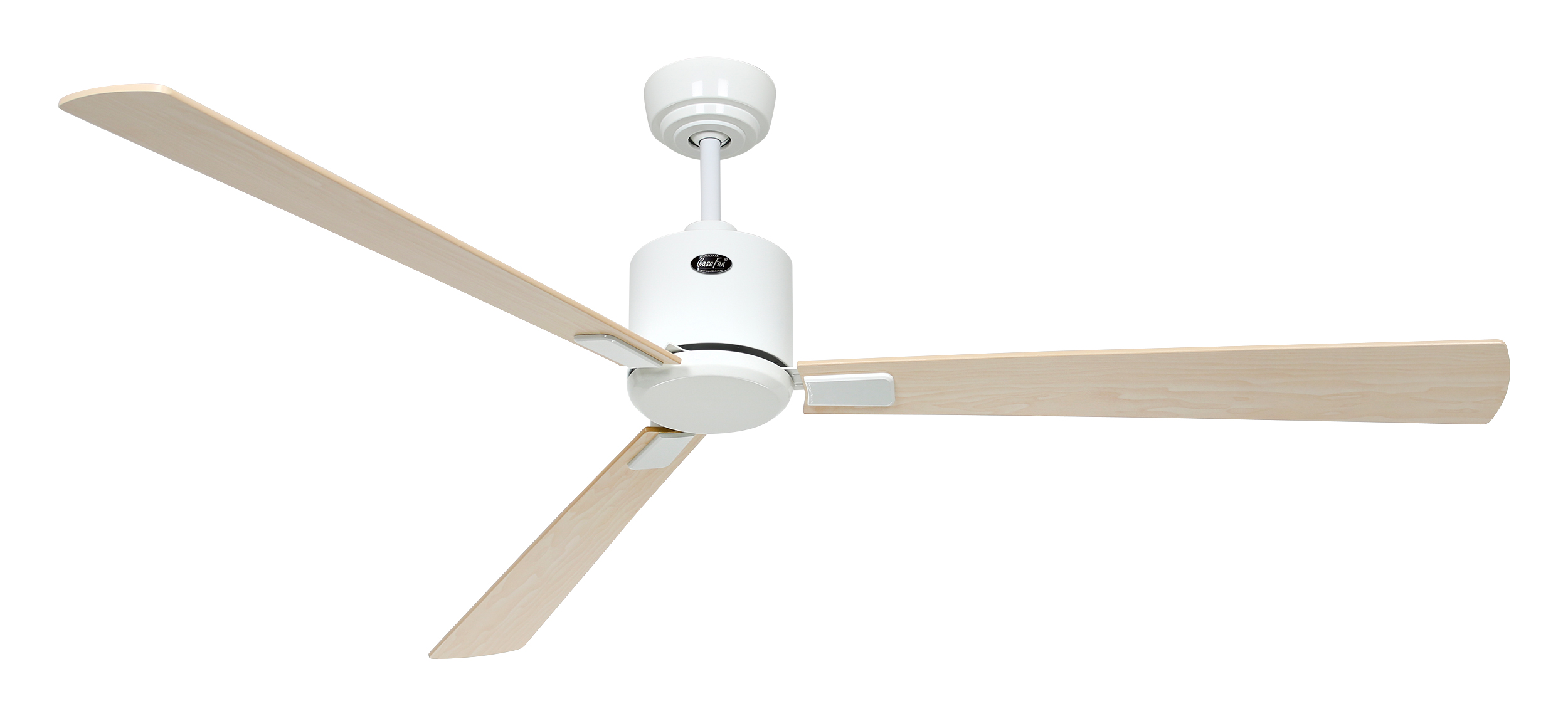CasaFan ECO NEO III 152 WE-AH/BU 0 - 10 V, Energiespar Deckenventilator mit 0 - 10 V Schnittstelle, Ø 152 cm, Gehäuse Lack weiß, 4 Wendeflügel Ahorn/Buche (wahlweise 2,3,4 montierbar), 100-240 V 50-60 Hz, DC/EC Motor 2,5-27 W, inkl. Funk-Fernbedienung (Motor 6 Stufen, Vor-/Rückwärtslauf - Sommer/Winter -, Schlaftimer, Licht ein/aus/dimmen) und Wandhalter, Zeitlupenstufe, Drehzahl max. 30-150 U/min, inkl. 2 Deckenstangen (150 und 80 mm), Abstand Decke - Flügel 360 mm (290 mm mit kurzer Deckenstange, 270 mm mit gekürzter Deckenstange), Montage an Schrägen bis 23°, gewuchteter Motor und Flügel, für Raumgrößen bis 35 m², Zubehör wie Leuchten, Austauschflügel und längere Deckenstangen erhältlich