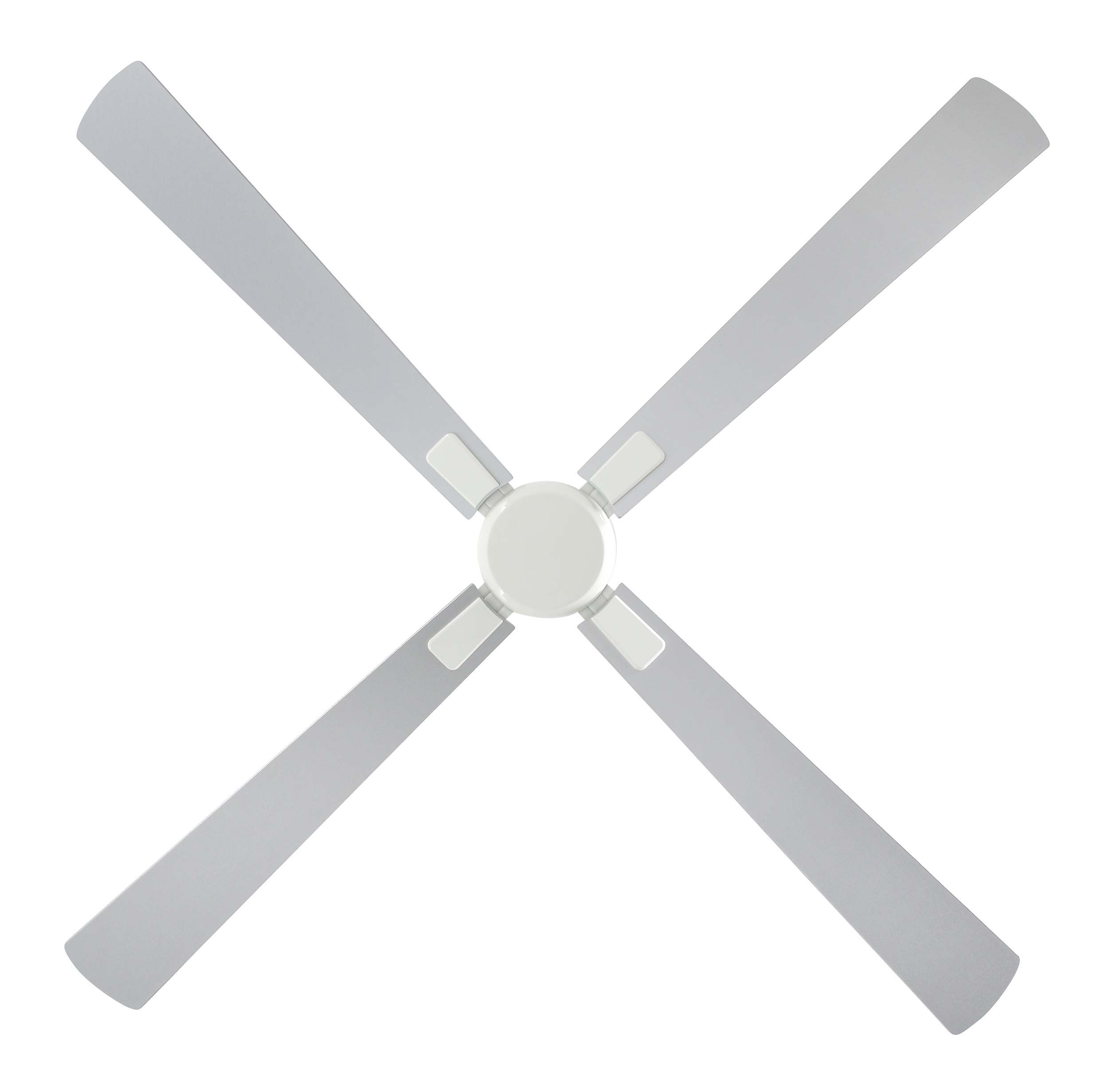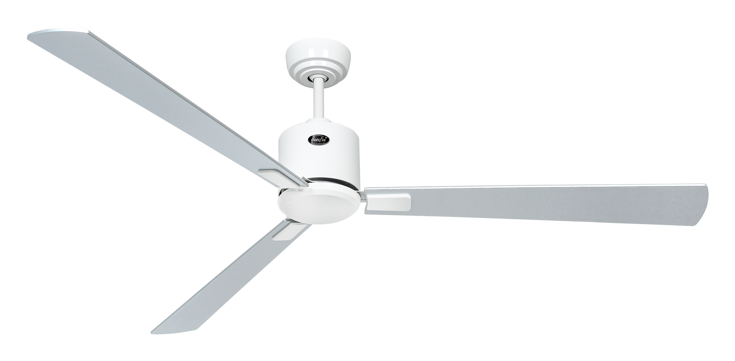CasaFan ECO NEO III 152 WE-WE/SI 0 - 10 V, Energiespar Deckenventilator mit 0 - 10 V Schnittstelle, Ø 152 cm, Gehäuse Lack weiß, 4 Wendeflügel Lack weiß/Lack silber (wahlweise 2,3,4 montierbar), 100-240 V 50-60 Hz, DC/EC Motor 2,5-27 W, inkl. Funk-Fernbedienung (Motor 6 Stufen, Vor-/Rückwärtslauf - Sommer/Winter -, Schlaftimer, Licht ein/aus/dimmen) und Wandhalter, Zeitlupenstufe, Drehzahl max. 30-150 U/min, inkl. 2 Deckenstangen (150 und 80 mm), Abstand Decke - Flügel 360 mm (290 mm mit kurzer Deckenstange, 270 mm mit gekürzter Deckenstange), Montage an Schrägen bis 23°, gewuchteter Motor und Flügel, für Raumgrößen bis 35 m², Zubehör wie Leuchten, Austauschflügel und längere Deckenstangen erhältlich