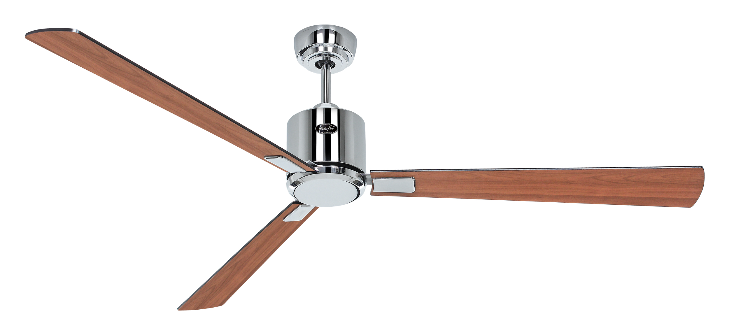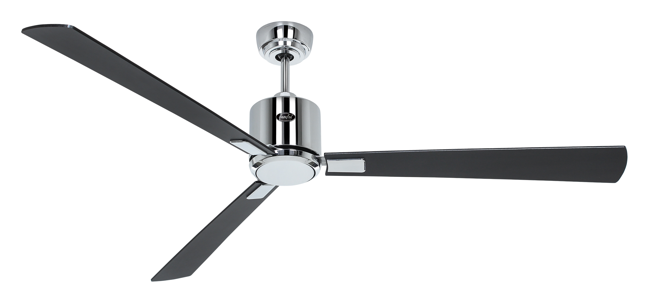 CasaFan ECO NEO III 152 CH-SW/TK 0 - 10 V, Energiespar Deckenventilator mit 0 - 10 V Schnittstelle, Ø 152 cm, Gehäuse Chrom glänzend, 4 Wendeflügel Lack schwarz/Teak (wahlweise 2,3,4 montierbar), 100-240 V 50-60 Hz, DC/EC Motor 2,5-27 W, inkl. Funk-Fernbedienung (Motor 6 Stufen, Vor-/Rückwärtslauf - Sommer/Winter -, Schlaftimer, Licht ein/aus/dimmen) und Wandhalter, Zeitlupenstufe, Drehzahl max. 30-150 U/min, inkl. 2 Deckenstangen (150 und 80 mm), Abstand Decke - Flügel 360 mm (290 mm mit kurzer Deckenstange, 270 mm mit gekürzter Deckenstange), Montage an Schrägen bis 23°, gewuchteter Motor und Flügel, für Raumgrößen bis 35 m², Zubehör wie Leuchten, Austauschflügel und längere Deckenstangen erhältlich