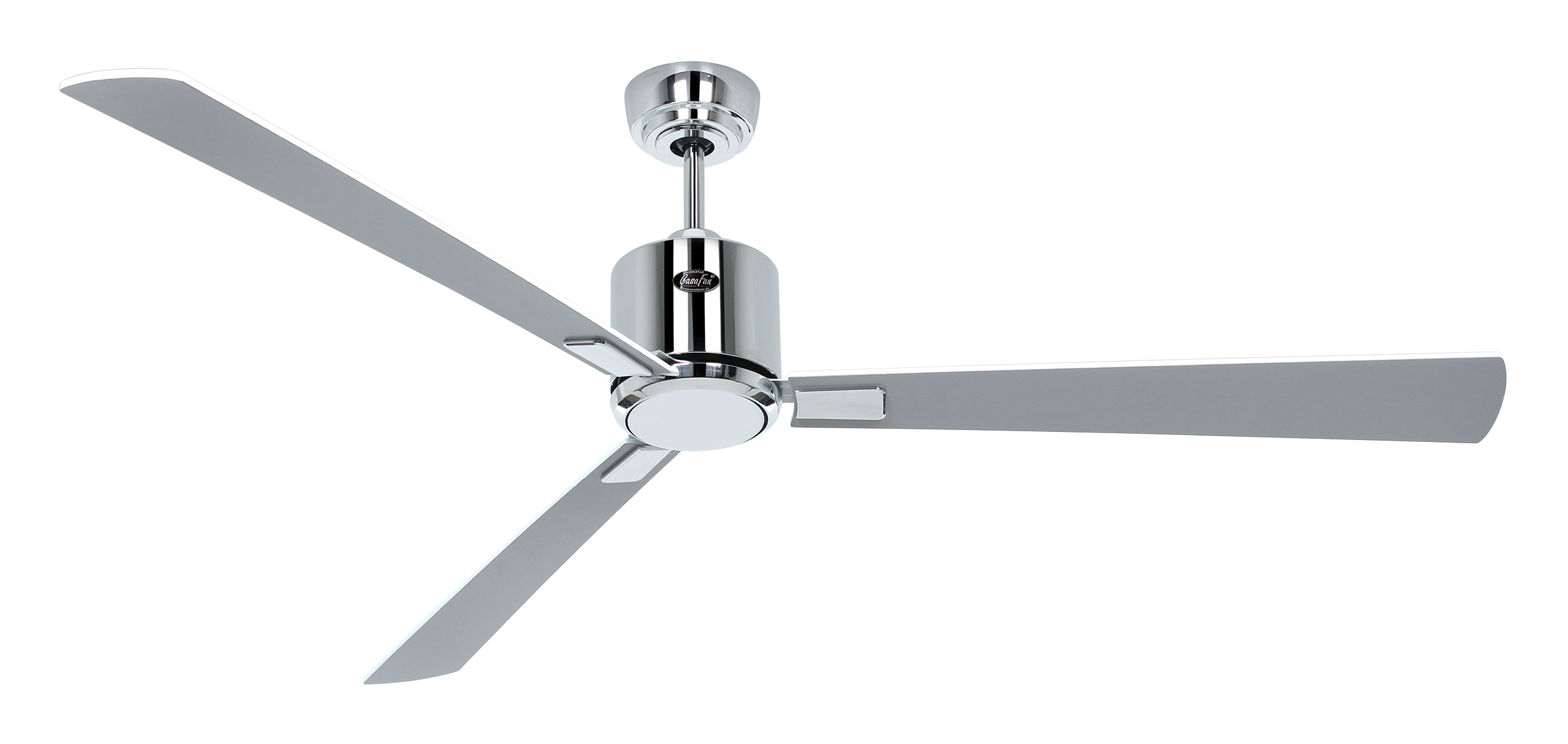 CasaFan ECO NEO III 152 CH-WE/LG 0 - 10 V, Energiespar Deckenventilator mit 0 - 10 V Schnittstelle, Ø 152 cm, Gehäuse Chrom glänzend, 4 Wendeflügel Lack weiß/Lack lichtgrau (wahlweise 2,3,4 montierbar), 100-240 V 50-60 Hz, DC/EC Motor 2,5-27 W, inkl. Funk-Fernbedienung (Motor 6 Stufen, Vor-/Rückwärtslauf - Sommer/Winter -, Schlaftimer, Licht ein/aus/dimmen) und Wandhalter, Zeitlupenstufe, Drehzahl max. 30-150 U/min, inkl. 2 Deckenstangen (150 und 80 mm), Abstand Decke - Flügel 360 mm (290 mm mit kurzer Deckenstange, 270 mm mit gekürzter Deckenstange), Montage an Schrägen bis 23°, gewuchteter Motor und Flügel, für Raumgrößen bis 35 m², Zubehör wie Leuchten, Austauschflügel und längere Deckenstangen erhältlich