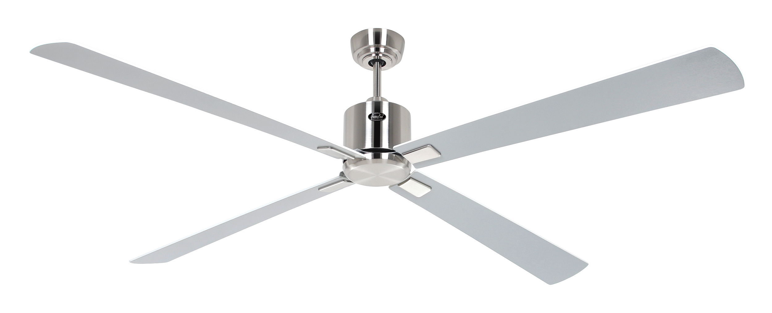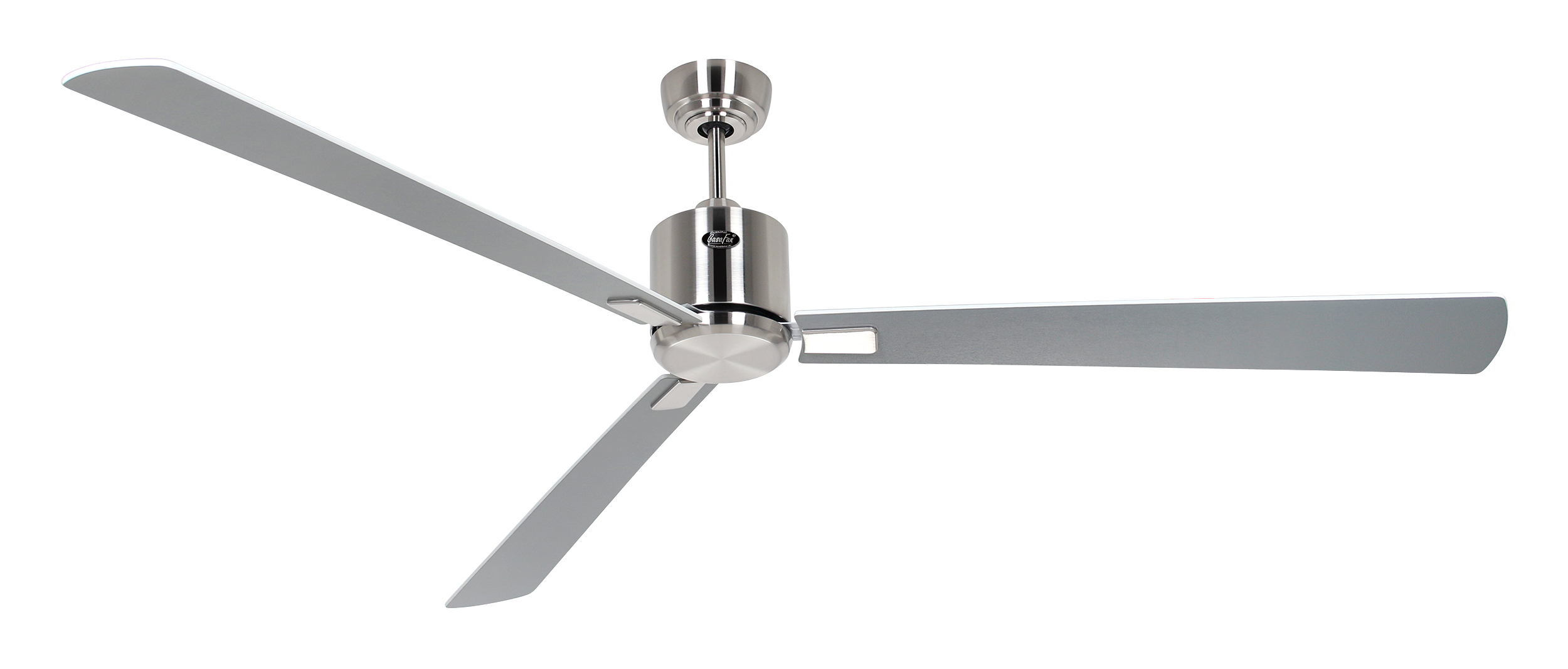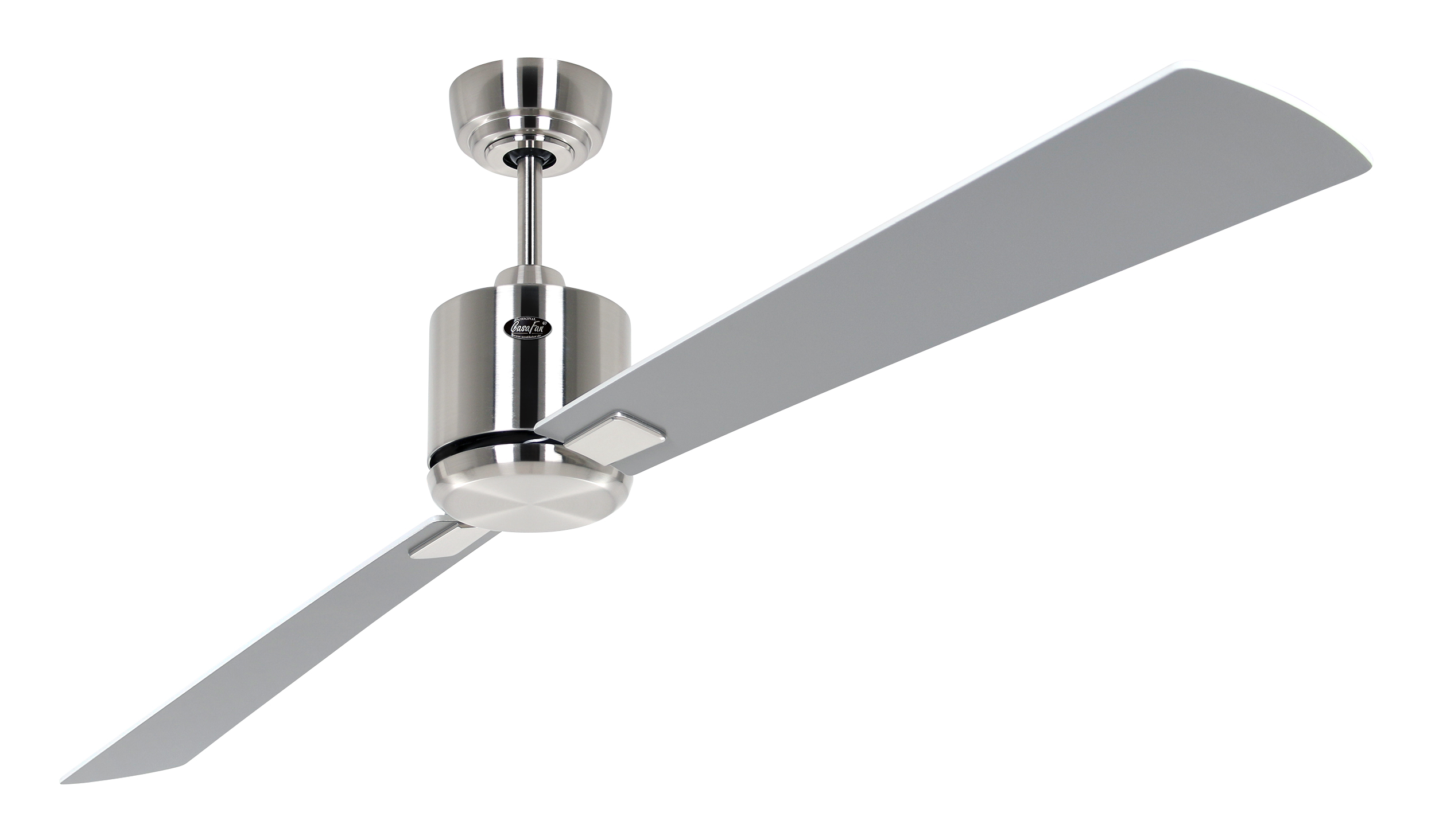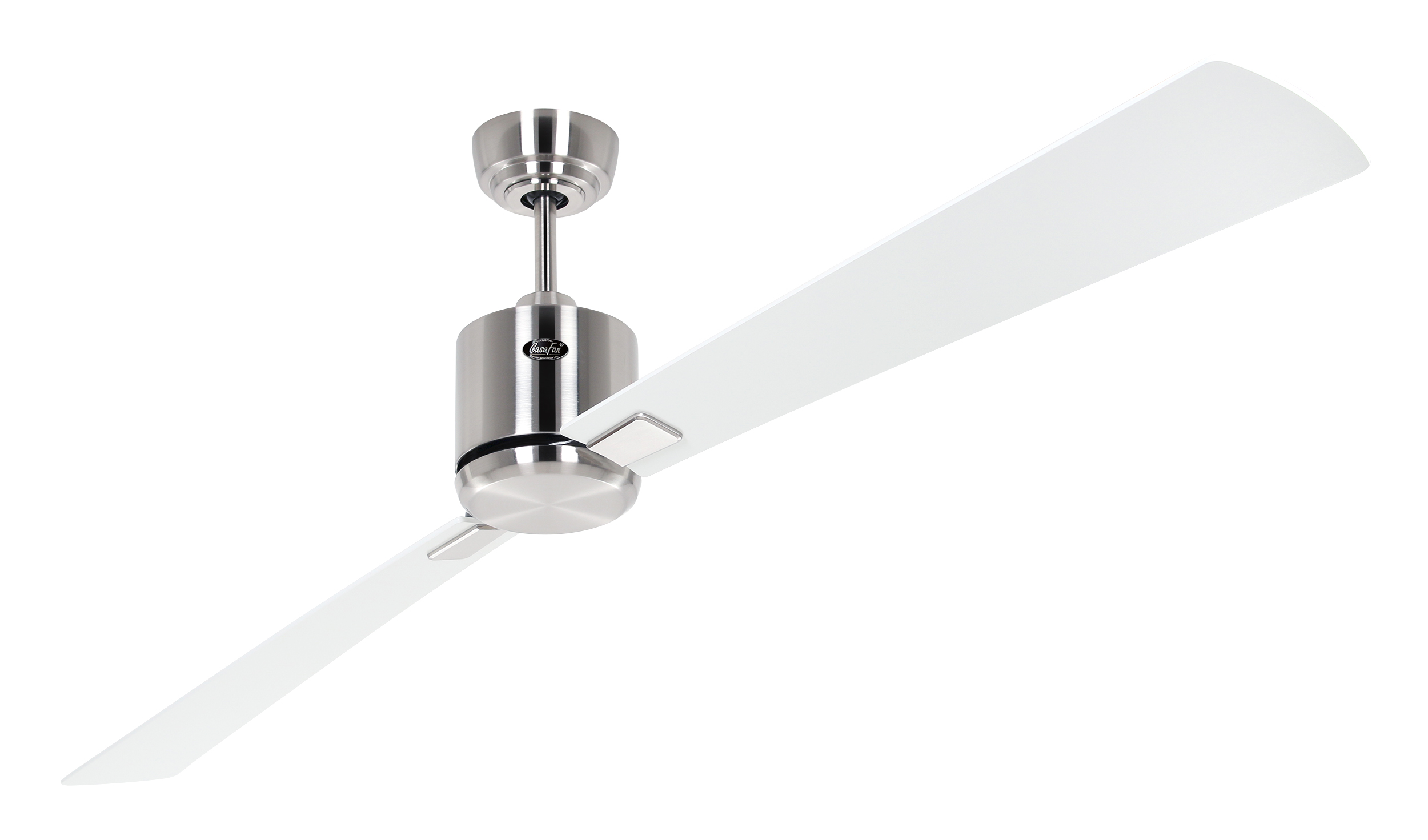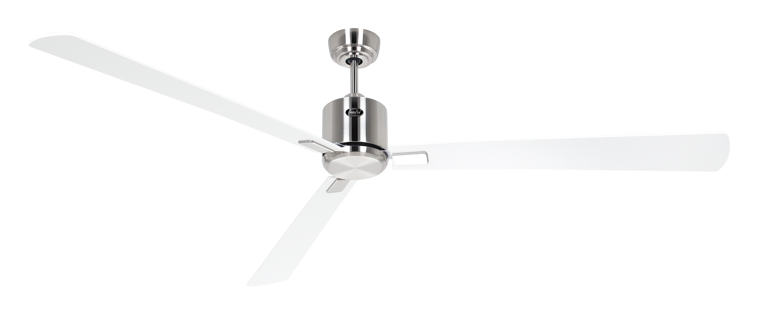 CasaFan ECO NEO III 180 BN-WE/LG 0 - 10 V, Energiespar Deckenventilator mit 0 - 10 V Schnittstelle, Ø 180 cm, Gehäuse Chrom gebürstet, 4 Wendeflügel Lack weiß/Lack lichtgrau (wahlweise 2,3,4 montierbar), 100-240 V 50-60 Hz, DC/EC Motor 1,5-28 W, inkl. Funk-Fernbedienung (Motor 6 Stufen, Vor-/Rückwärtslauf - Sommer/Winter -, Schlaftimer, Licht ein/aus/dimmen) und Wandhalter, Zeitlupenstufe, Drehzahl max. 30-110 U/min, inkl. 2 Deckenstangen (150 und 80 mm), Abstand Decke - Flügel 365 mm (295 mm mit kurzer Deckenstange), Montage an Schrägen bis 23°, gewuchteter Motor und Flügel, für Raumgrößen bis 45 m², Zubehör wie Leuchten, Austauschflügel und längere Deckenstangen erhältlich