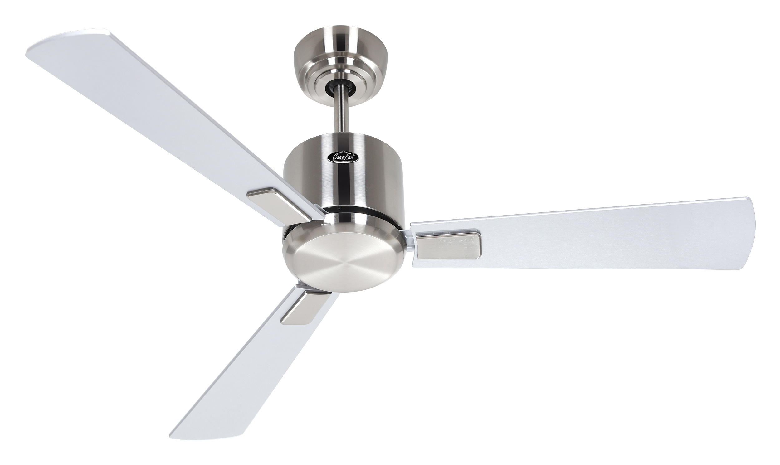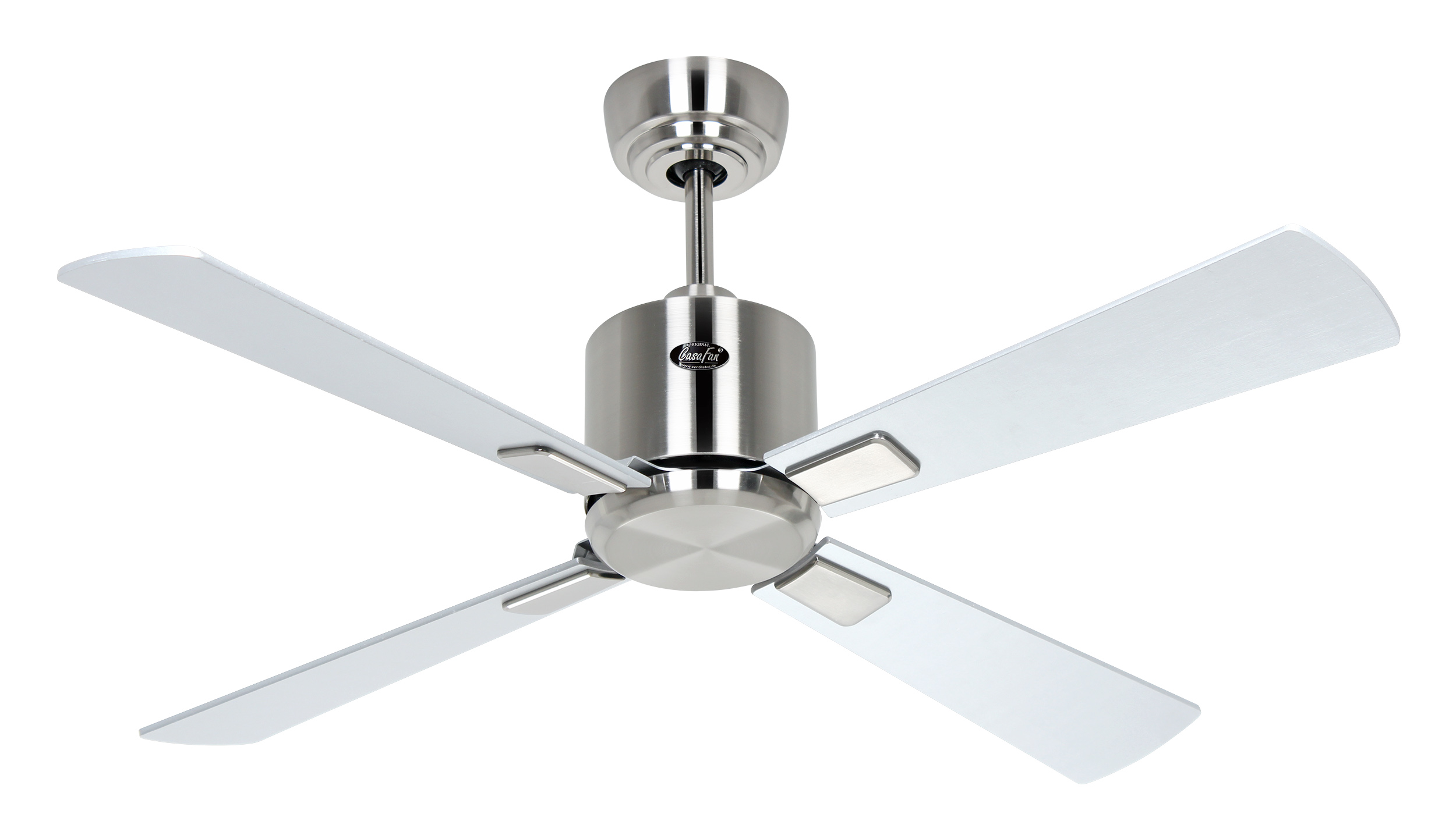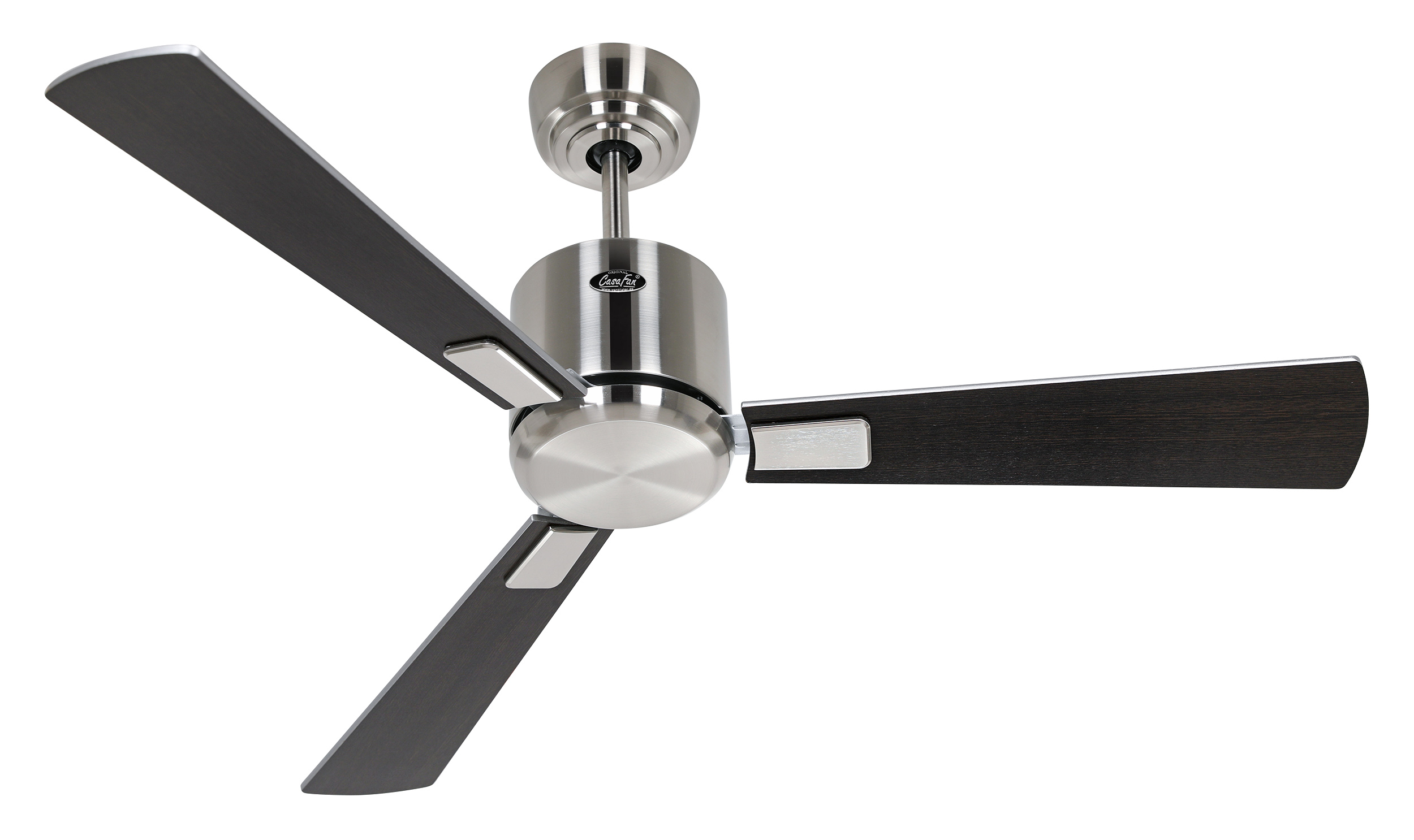 CasaFan ECO NEO III 103 BN-WN/SI WiFi, Energiespar Deckenventilator mit WiFi, Ø 103 cm, Gehäuse Chrom gebürstet, 4 Wendeflügel Wenge/Lack silber (wahlweise 2,3,4 montierbar), 100-240 V 50-60 Hz, DC/EC Motor 2,5-16 W, inkl. Funk-Fernbedienung (Motor 6 Stufen, Vor-/Rückwärtslauf - Sommer/Winter -, Schlaftimer, Licht ein/aus/dimmen) und Wandhalter, Zeitlupenstufe, Drehzahl max. 30-208 U/min, inkl. 2 Deckenstangen (150 und 80 mm), Abstand Decke - Flügel 360 mm (290 mm mit kurzer Deckenstange, 270 mm mit gekürzter Deckenstange), Montage an Schrägen bis 23°, gewuchteter Motor und Flügel, für Raumgrößen bis 13 m², Zubehör wie Leuchten, Austauschflügel und längere Deckenstangen erhältlich