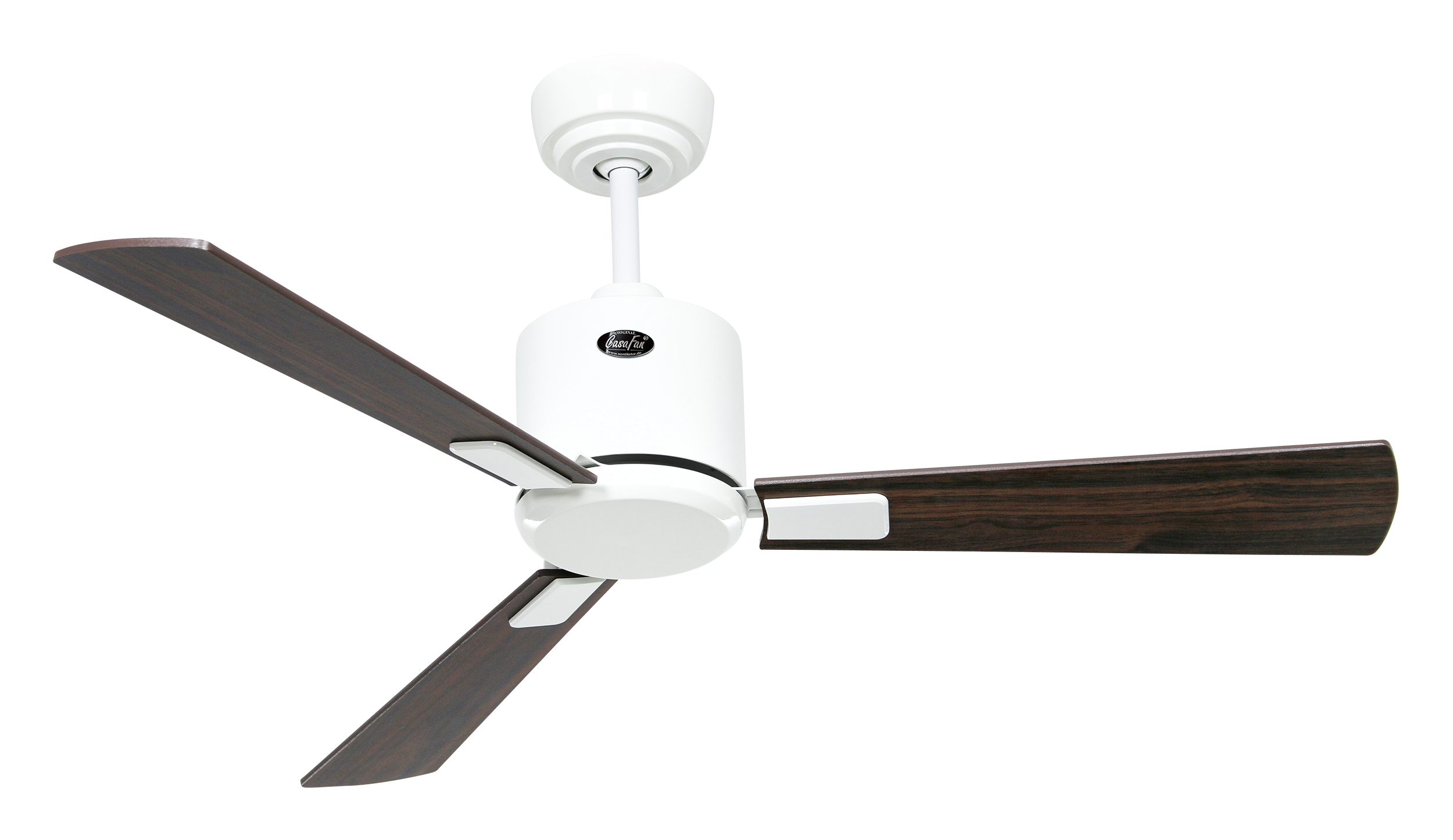 CasaFan ECO NEO III 103 WE-NB/KI WiFi, Energiespar Deckenventilator mit WiFi, Ø 103 cm, Gehäuse Lack weiß, 4 Wendeflügel Nussbaum/Kirschbaum (wahlweise 2,3,4 montierbar), 100-240 V 50-60 Hz, DC/EC Motor 2,5-16 W, inkl. Funk-Fernbedienung (Motor 6 Stufen, Vor-/Rückwärtslauf - Sommer/Winter -, Schlaftimer, Licht ein/aus/dimmen) und Wandhalter, Zeitlupenstufe, Drehzahl max. 30-208 U/min, inkl. 2 Deckenstangen (150 und 80 mm), Abstand Decke - Flügel 360 mm (290 mm mit kurzer Deckenstange, 270 mm mit gekürzter Deckenstange), Montage an Schrägen bis 23°, gewuchteter Motor und Flügel, für Raumgrößen bis 13 m², Zubehör wie Leuchten, Austauschflügel und längere Deckenstangen erhältlich