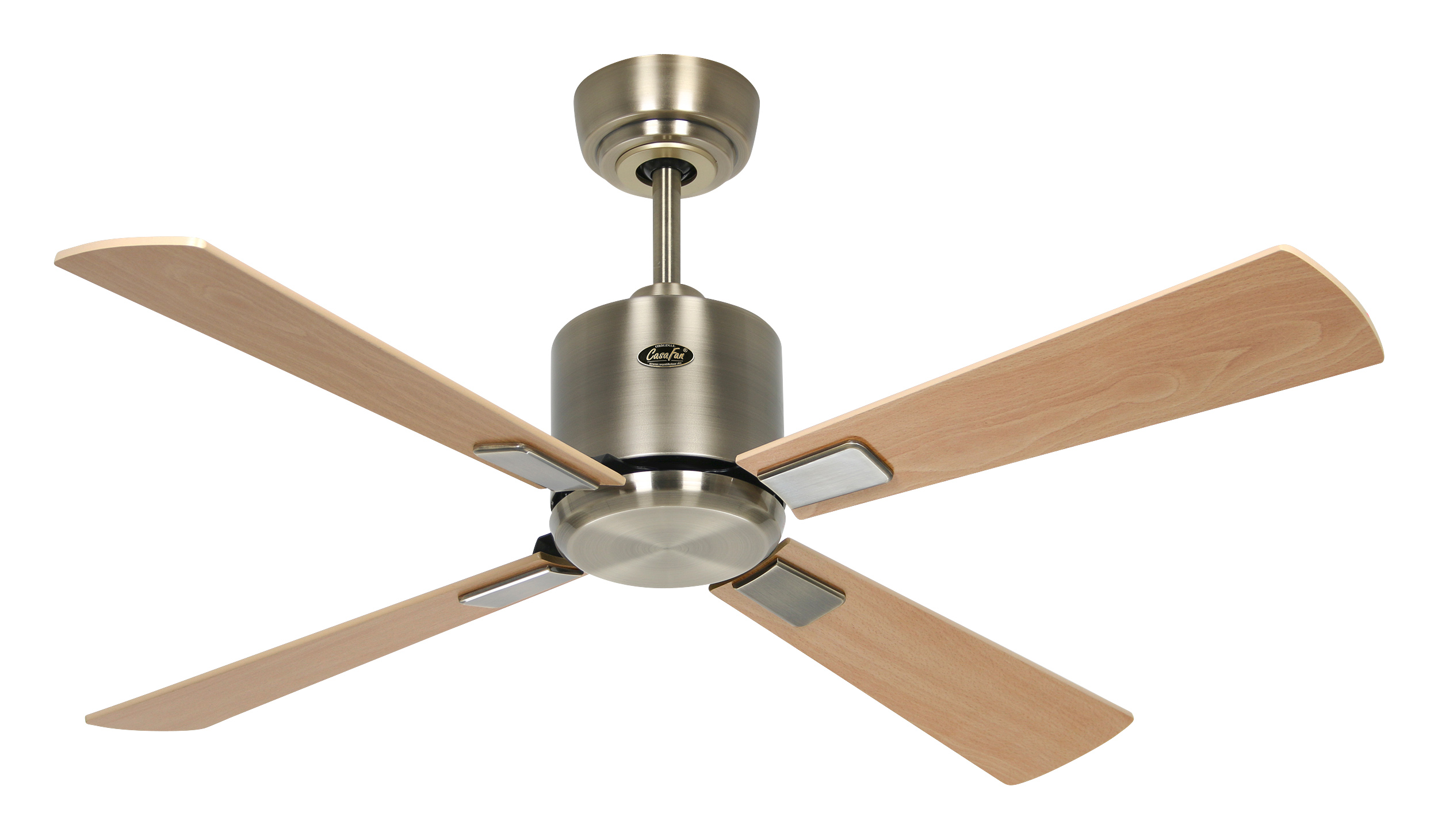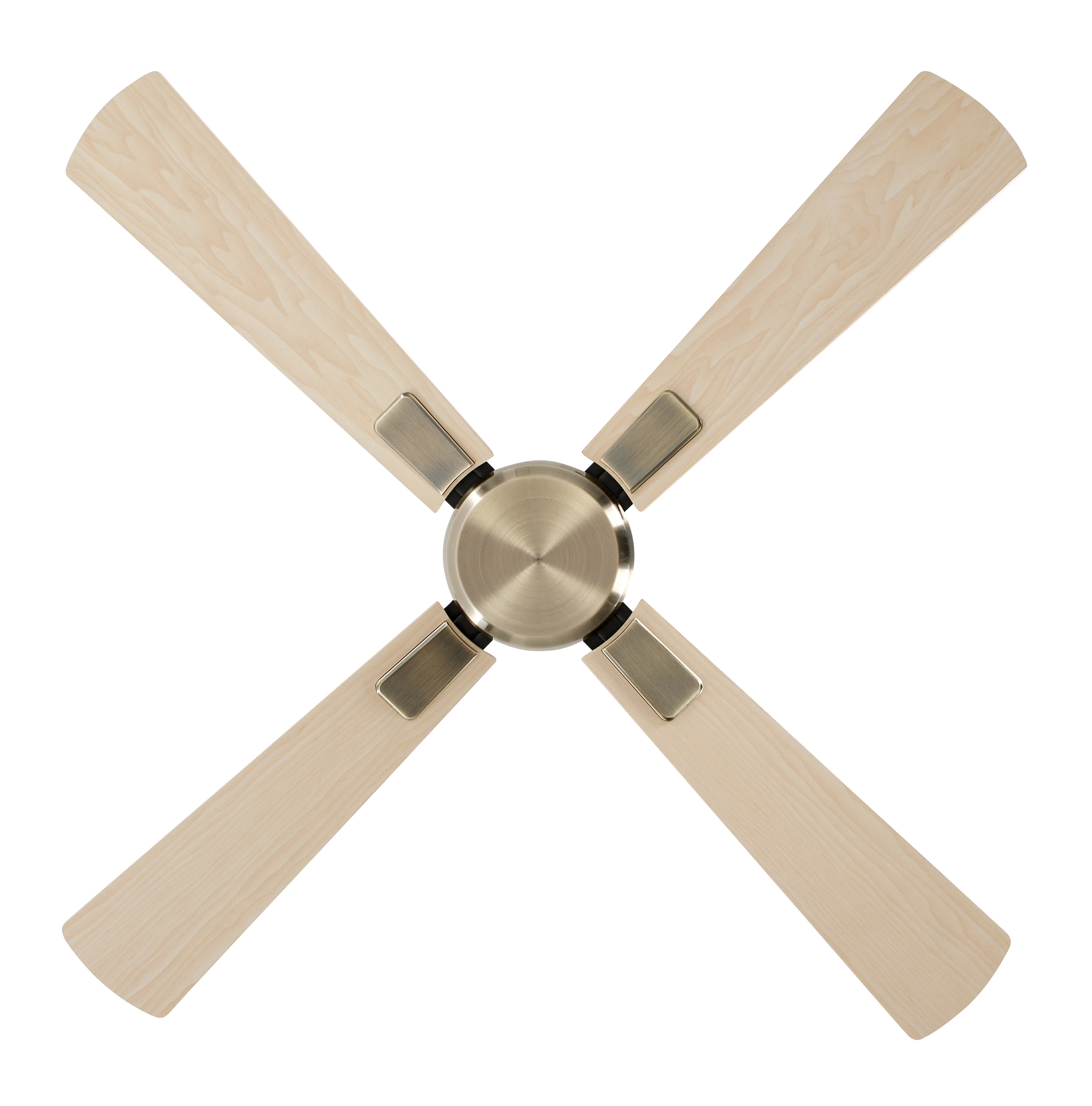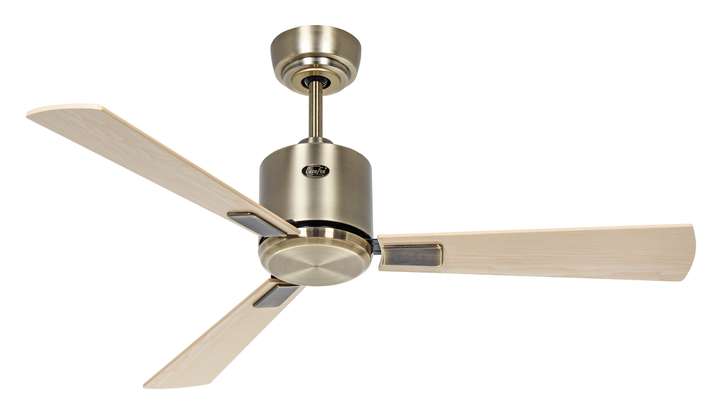 CasaFan ECO NEO III 103 MA-AH/BU WiFi, Energiespar Deckenventilator mit WiFi, Ø 103 cm, Gehäuse Messing antik, 4 Wendeflügel Ahorn/Buche (wahlweise 2,3,4 montierbar), 100-240 V 50-60 Hz, DC/EC Motor 2,5-16 W, inkl. Funk-Fernbedienung (Motor 6 Stufen, Vor-/Rückwärtslauf - Sommer/Winter -, Schlaftimer, Licht ein/aus/dimmen) und Wandhalter, Zeitlupenstufe, Drehzahl max. 30-208 U/min, inkl. 2 Deckenstangen (150 und 80 mm), Abstand Decke - Flügel 360 mm (290 mm mit kurzer Deckenstange, 270 mm mit gekürzter Deckenstange), Montage an Schrägen bis 23°, gewuchteter Motor und Flügel, für Raumgrößen bis 13 m², Zubehör wie Leuchten, Austauschflügel und längere Deckenstangen erhältlich