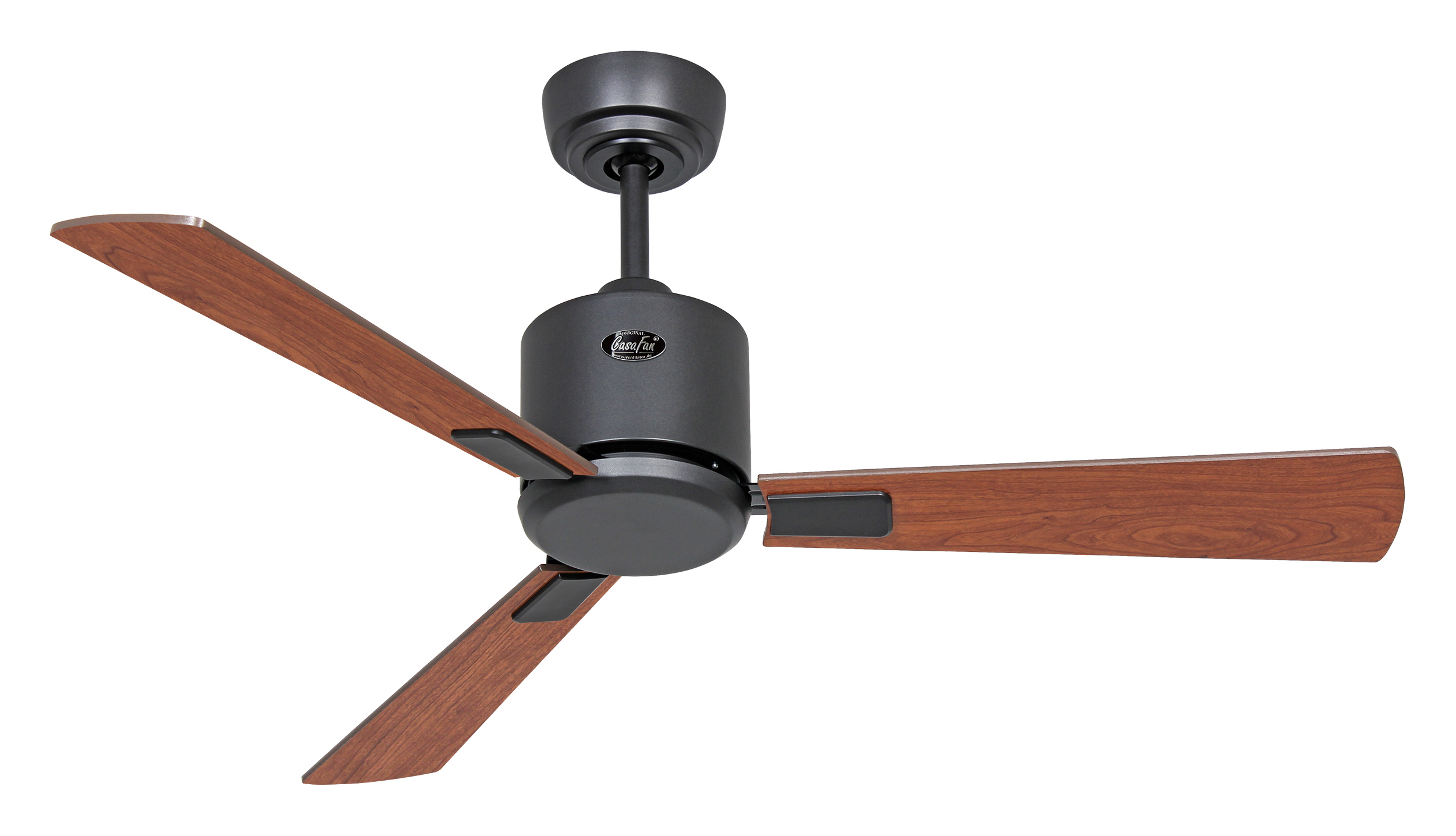 CasaFan ECO NEO III 103 BG-NB/KI WiFi, Energiespar Deckenventilator mit WiFi, Ø 103 cm, Gehäuse Lack basaltgrau, 4 Wendeflügel Nussbaum/Kirschbaum (wahlweise 2,3,4 montierbar), 100-240 V 50-60 Hz, DC/EC Motor 2,5-16 W, inkl. Funk-Fernbedienung (Motor 6 Stufen, Vor-/Rückwärtslauf - Sommer/Winter -, Schlaftimer, Licht ein/aus/dimmen) und Wandhalter, Zeitlupenstufe, Drehzahl max. 30-208 U/min, inkl. 2 Deckenstangen (150 und 80 mm), Abstand Decke - Flügel 360 mm (290 mm mit kurzer Deckenstange, 270 mm mit gekürzter Deckenstange), Montage an Schrägen bis 23°, gewuchteter Motor und Flügel, für Raumgrößen bis 13 m², Zubehör wie Leuchten, Austauschflügel und längere Deckenstangen erhältlich