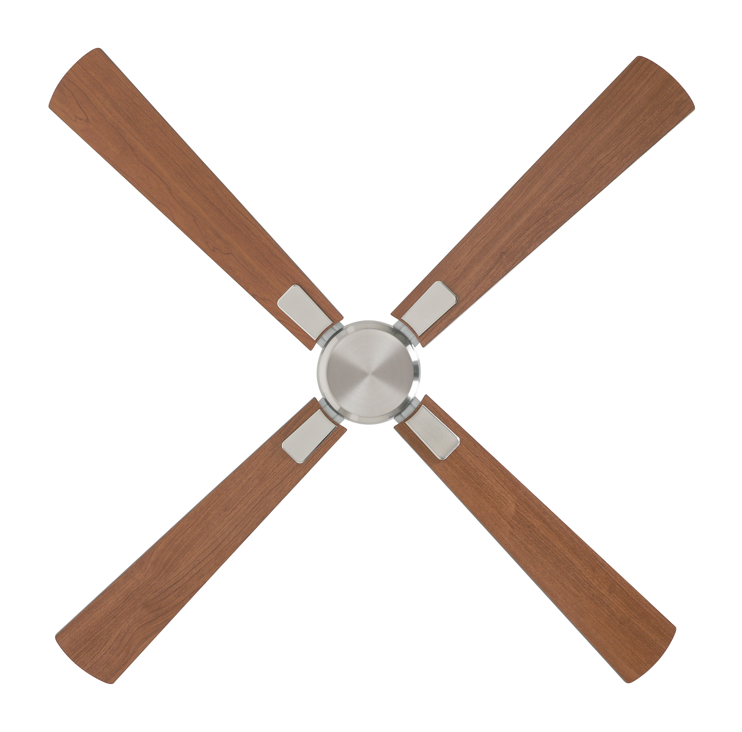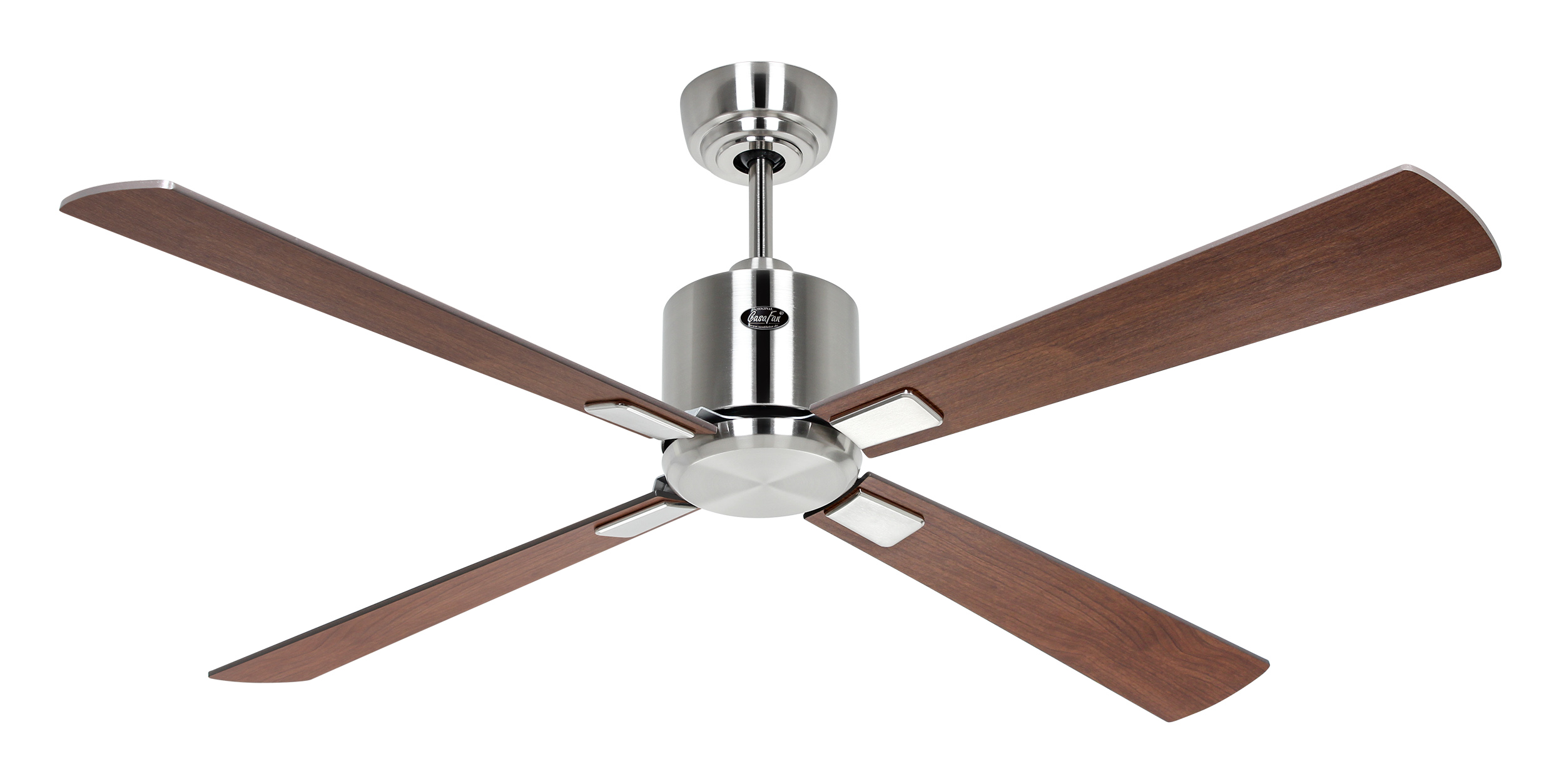 CasaFan ECO NEO III 132 BN-NB/KI WiFi, Energiespar Deckenventilator mit WiFi, Ø 132 cm, Gehäuse Chrom gebürstet, 4 Wendeflügel Nussbaum/Kirschbaum (wahlweise 2,3,4 montierbar), 100-240 V 50-60 Hz, DC/EC Motor 2,3-27 W, inkl. Funk-Fernbedienung (Motor 6 Stufen, Vor-/Rückwärtslauf - Sommer/Winter -, Schlaftimer, Licht ein/aus/dimmen) und Wandhalter, Zeitlupenstufe, Drehzahl max. 30-185 U/min, inkl. 2 Deckenstangen (150 und 80 mm), Abstand Decke - Flügel 360 mm (290 mm mit kurzer Deckenstange, 270 mm mit gekürzter Deckenstange), Montage an Schrägen bis 23°, gewuchteter Motor und Flügel, für Raumgrößen bis 25 m², Zubehör wie Leuchten, Austauschflügel und längere Deckenstangen erhältlich