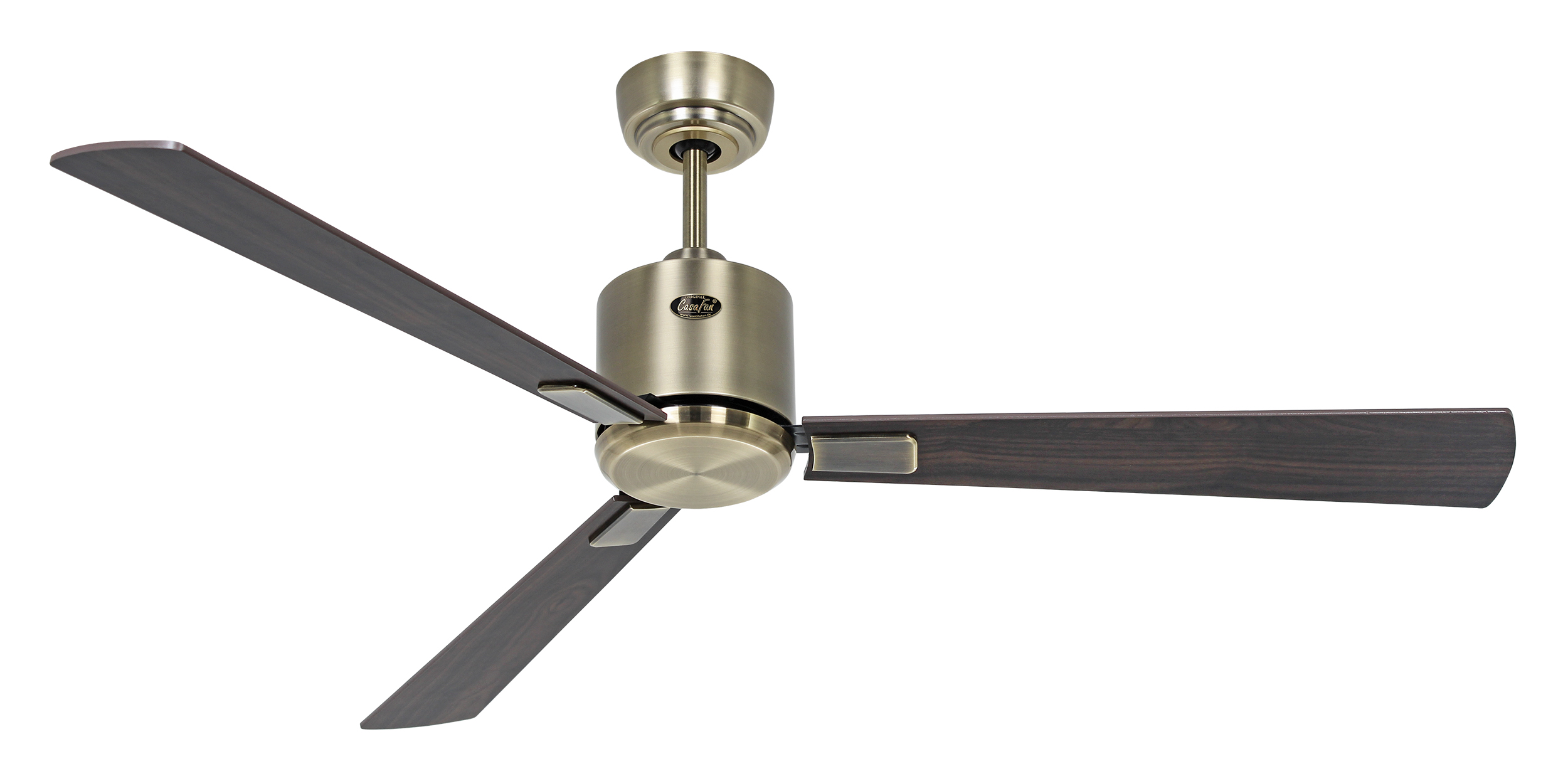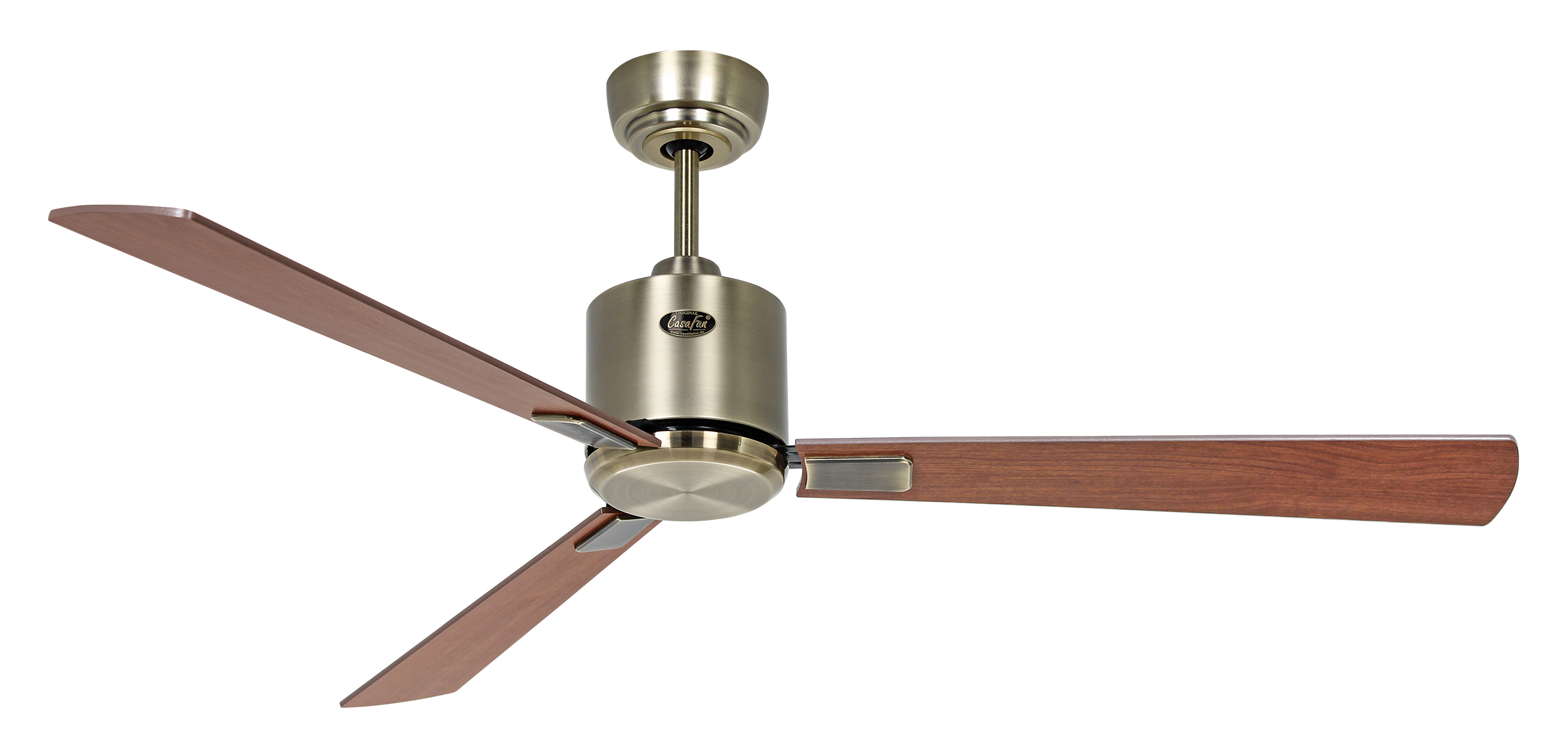 CasaFan ECO NEO III 132 MA-NB/KI WiFi, Energiespar Deckenventilator mit WiFi, Ø 132 cm, Gehäuse Messing antik, 4 Wendeflügel Nussbaum/Kirschbaum (wahlweise 2,3,4 montierbar), 100-240 V 50-60 Hz, DC/EC Motor 2,3-27 W, inkl. Funk-Fernbedienung (Motor 6 Stufen, Vor-/Rückwärtslauf - Sommer/Winter -, Schlaftimer, Licht ein/aus/dimmen) und Wandhalter, Zeitlupenstufe, Drehzahl max. 30-185 U/min, inkl. 2 Deckenstangen (150 und 80 mm), Abstand Decke - Flügel 360 mm (290 mm mit kurzer Deckenstange, 270 mm mit gekürzter Deckenstange), Montage an Schrägen bis 23°, gewuchteter Motor und Flügel, für Raumgrößen bis 25 m², Zubehör wie Leuchten, Austauschflügel und längere Deckenstangen erhältlich
