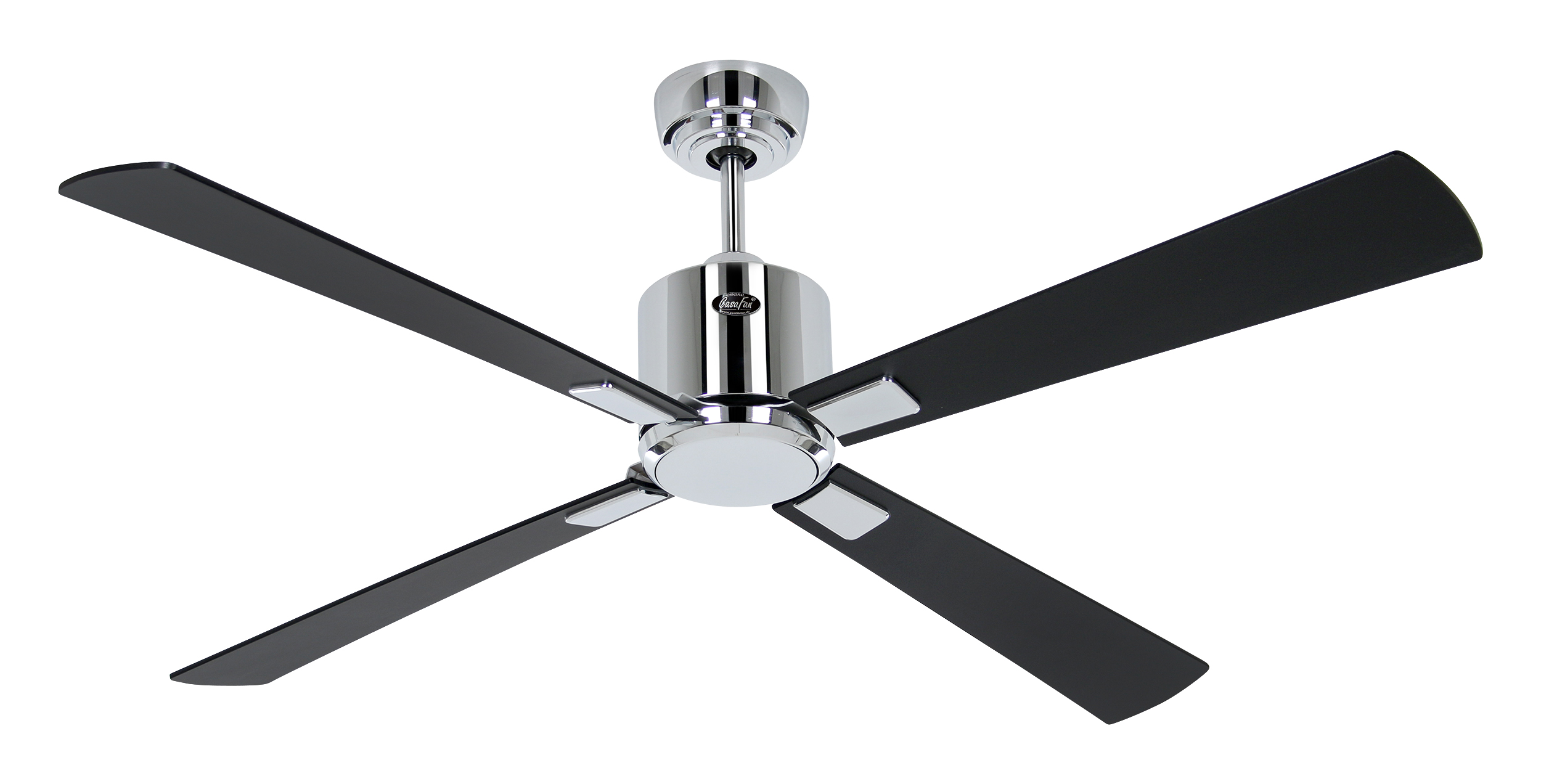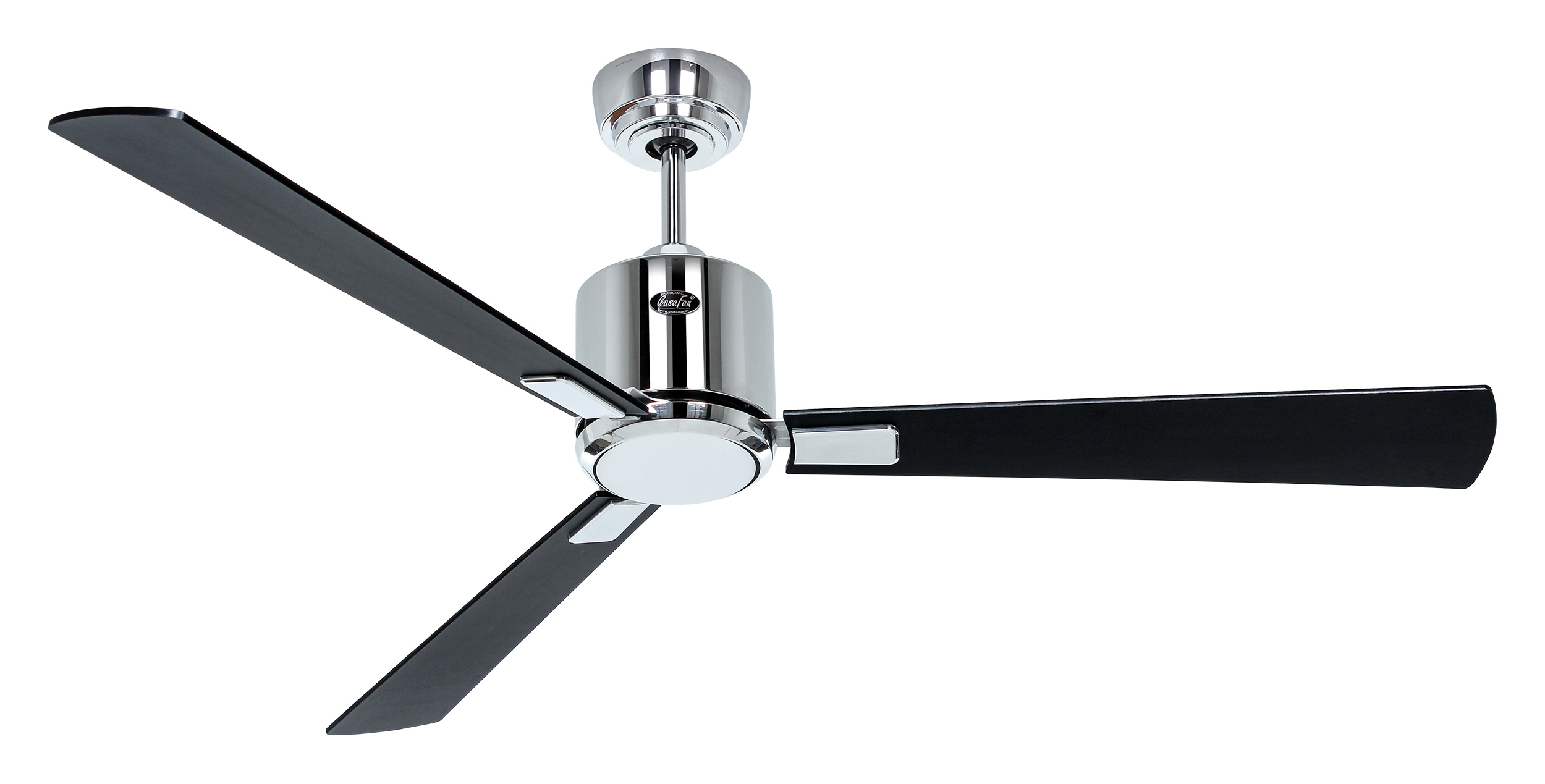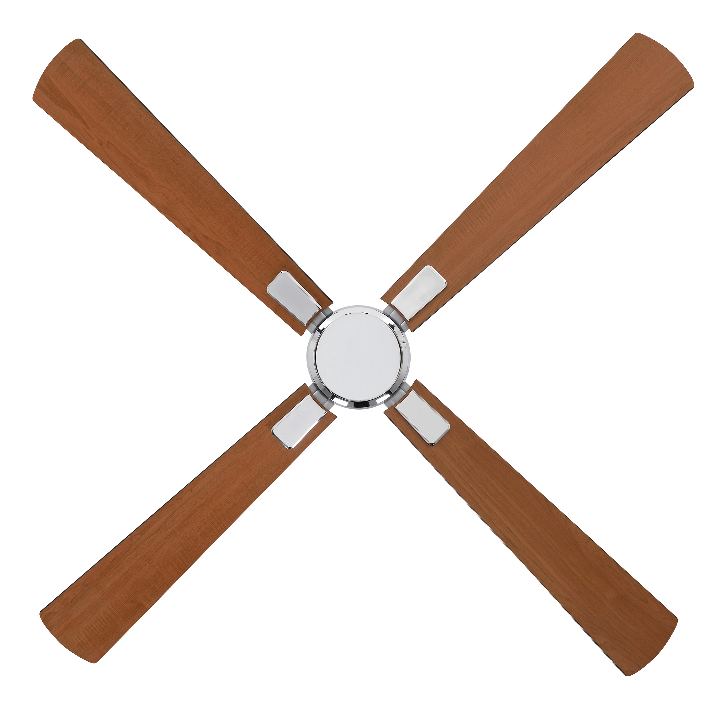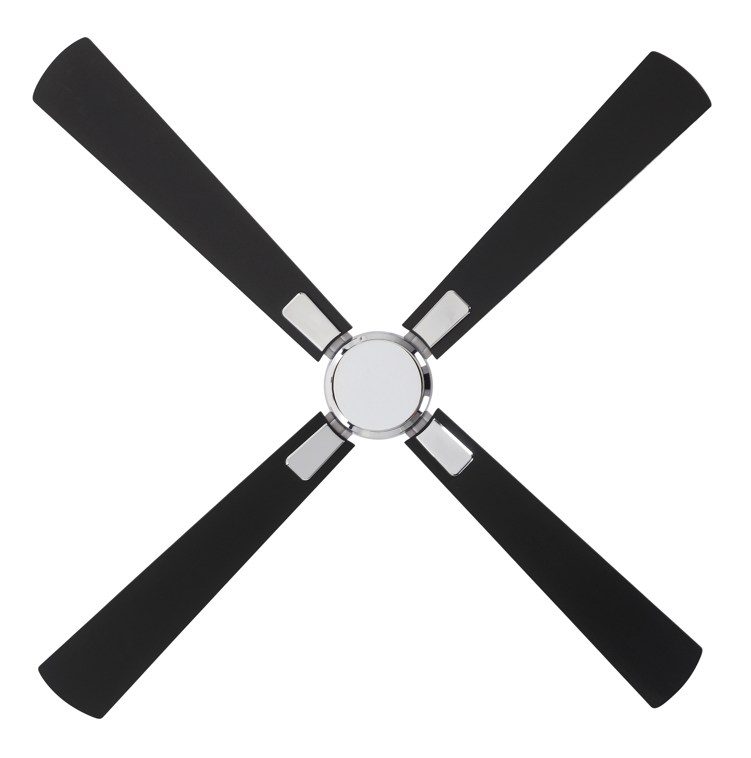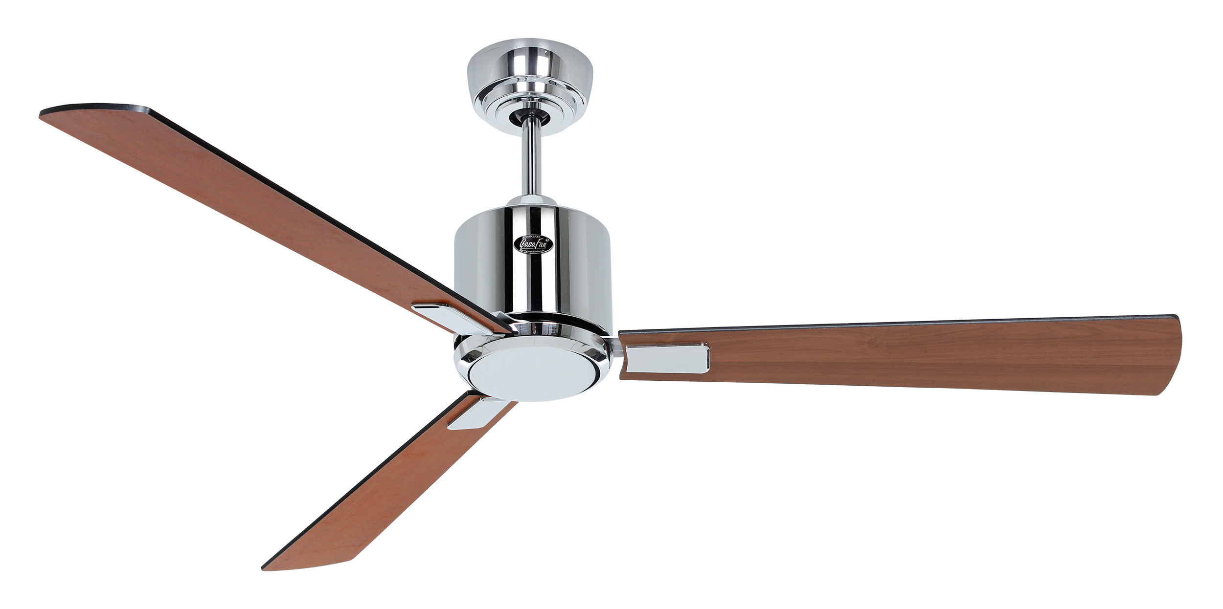 CasaFan ECO NEO III 132 CH-SW/TK WiFi, Energiespar Deckenventilator mit WiFi, Ø 132 cm, Gehäuse Chrom glänzend, 4 Wendeflügel Lack schwarz/Teak (wahlweise 2,3,4 montierbar), 100-240 V 50-60 Hz, DC/EC Motor 2,3-27 W, inkl. Funk-Fernbedienung (Motor 6 Stufen, Vor-/Rückwärtslauf - Sommer/Winter -, Schlaftimer, Licht ein/aus/dimmen) und Wandhalter, Zeitlupenstufe, Drehzahl max. 30-185 U/min, inkl. 2 Deckenstangen (150 und 80 mm), Abstand Decke - Flügel 360 mm (290 mm mit kurzer Deckenstange, 270 mm mit gekürzter Deckenstange), Montage an Schrägen bis 23°, gewuchteter Motor und Flügel, für Raumgrößen bis 25 m², Zubehör wie Leuchten, Austauschflügel und längere Deckenstangen erhältlich