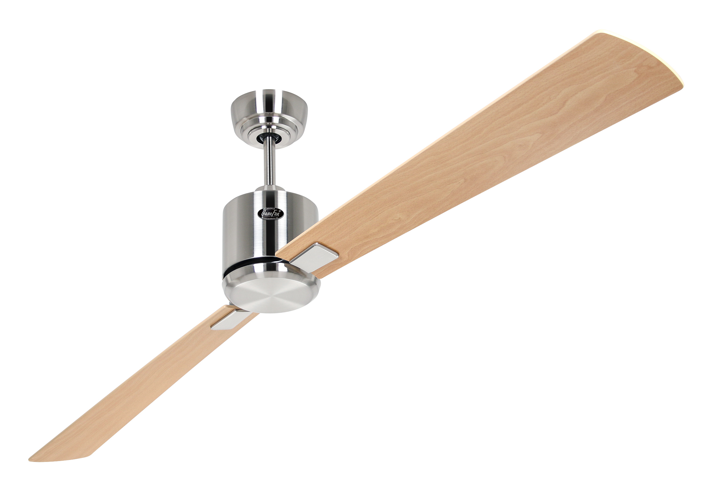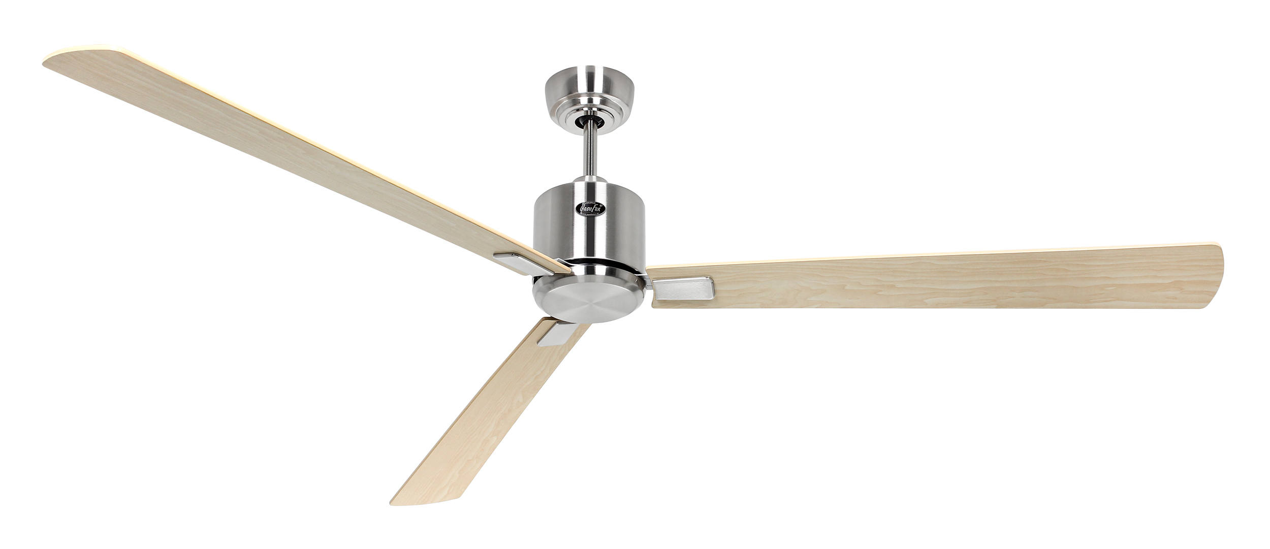 CasaFan ECO NEO III 180 BN-AH/BU WiFi, Energiespar Deckenventilator mit WiFi, Ø 180 cm, Gehäuse Chrom gebürstet, 4 Wendeflügel Ahorn/Buche (wahlweise 2,3,4 montierbar), 100-240 V 50-60 Hz, DC/EC Motor 1,5-28 W, inkl. Funk-Fernbedienung (Motor 6 Stufen, Vor-/Rückwärtslauf - Sommer/Winter -, Schlaftimer, Licht ein/aus/dimmen) und Wandhalter, Zeitlupenstufe, Drehzahl max. 30-110 U/min, inkl. 2 Deckenstangen (150 und 80 mm), Abstand Decke - Flügel 365 mm (295 mm mit kurzer Deckenstange), Montage an Schrägen bis 23°, gewuchteter Motor und Flügel, für Raumgrößen bis 45 m², Zubehör wie Leuchten, Austauschflügel und längere Deckenstangen erhältlich