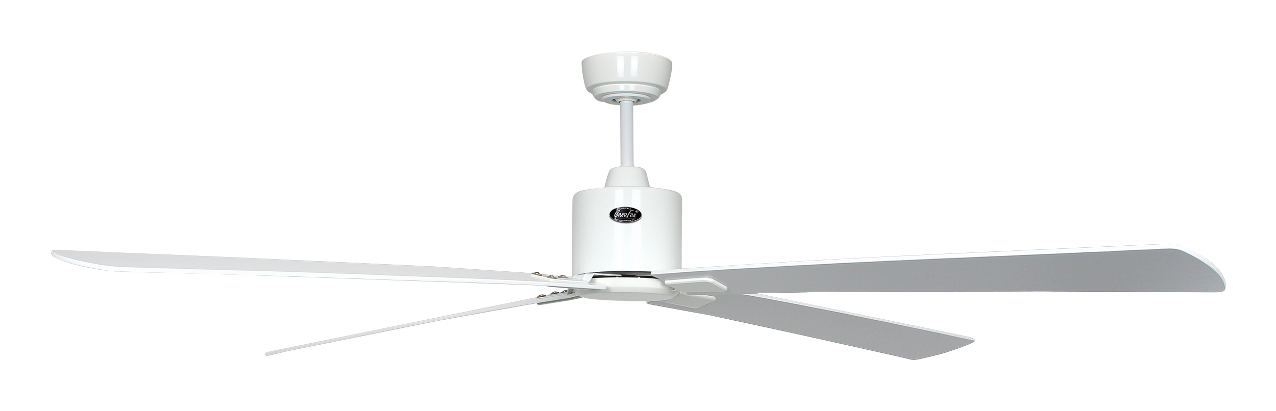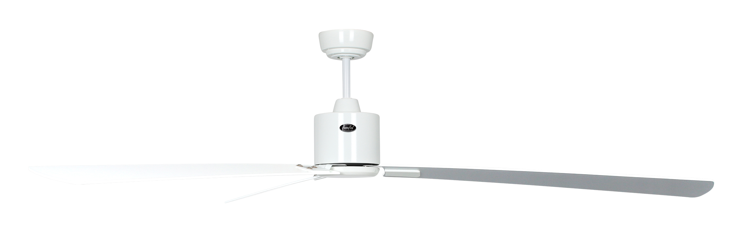 CasaFan ECO NEO III 180 WE-WE/LG WiFi, Energiespar Deckenventilator mit WiFi, Ø 180 cm, Gehäuse Lack weiß, 4 Wendeflügel Lack weiß/Lack lichtgrau (wahlweise 2,3,4 montierbar), 100-240 V 50-60 Hz, DC/EC Motor 1,5-28 W, inkl. Funk-Fernbedienung (Motor 6 Stufen, Vor-/Rückwärtslauf - Sommer/Winter -, Schlaftimer, Licht ein/aus/dimmen) und Wandhalter, Zeitlupenstufe, Drehzahl max. 30-110 U/min, inkl. 2 Deckenstangen (150 und 80 mm), Abstand Decke - Flügel 365 mm (295 mm mit kurzer Deckenstange), Montage an Schrägen bis 23°, gewuchteter Motor und Flügel, für Raumgrößen bis 45 m², Zubehör wie Leuchten, Austauschflügel und längere Deckenstangen erhältlich
