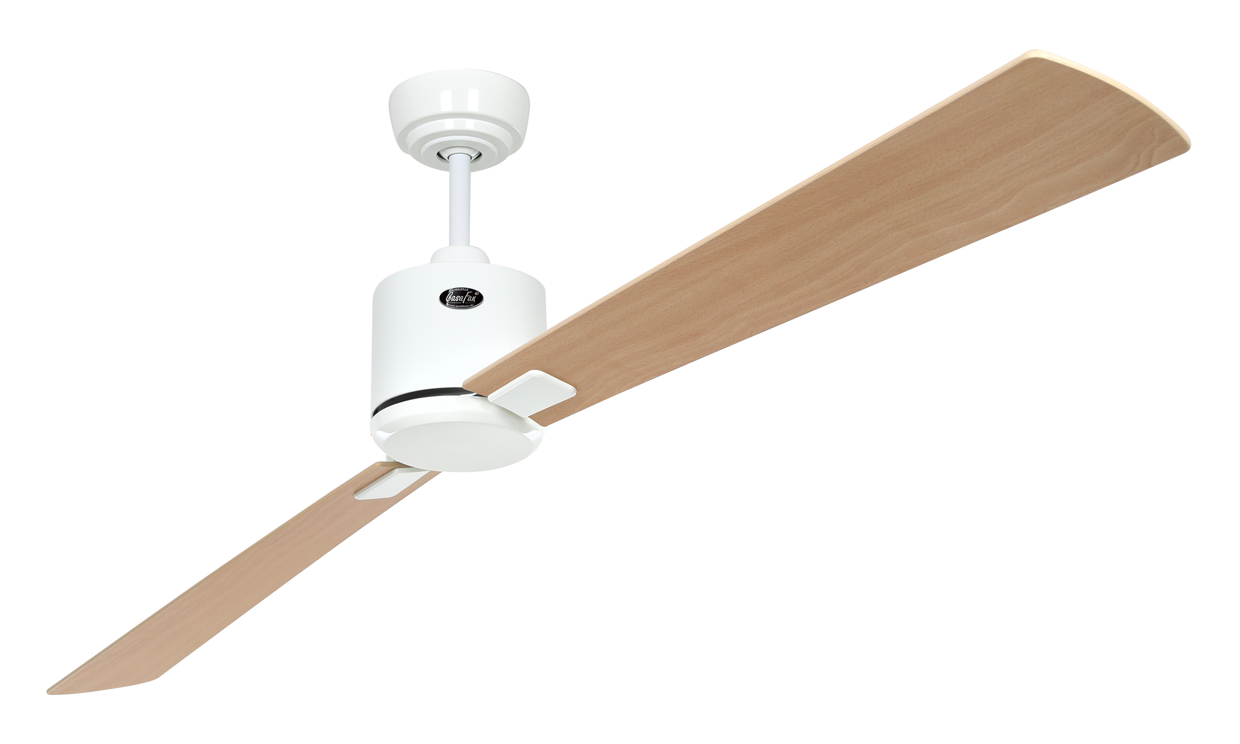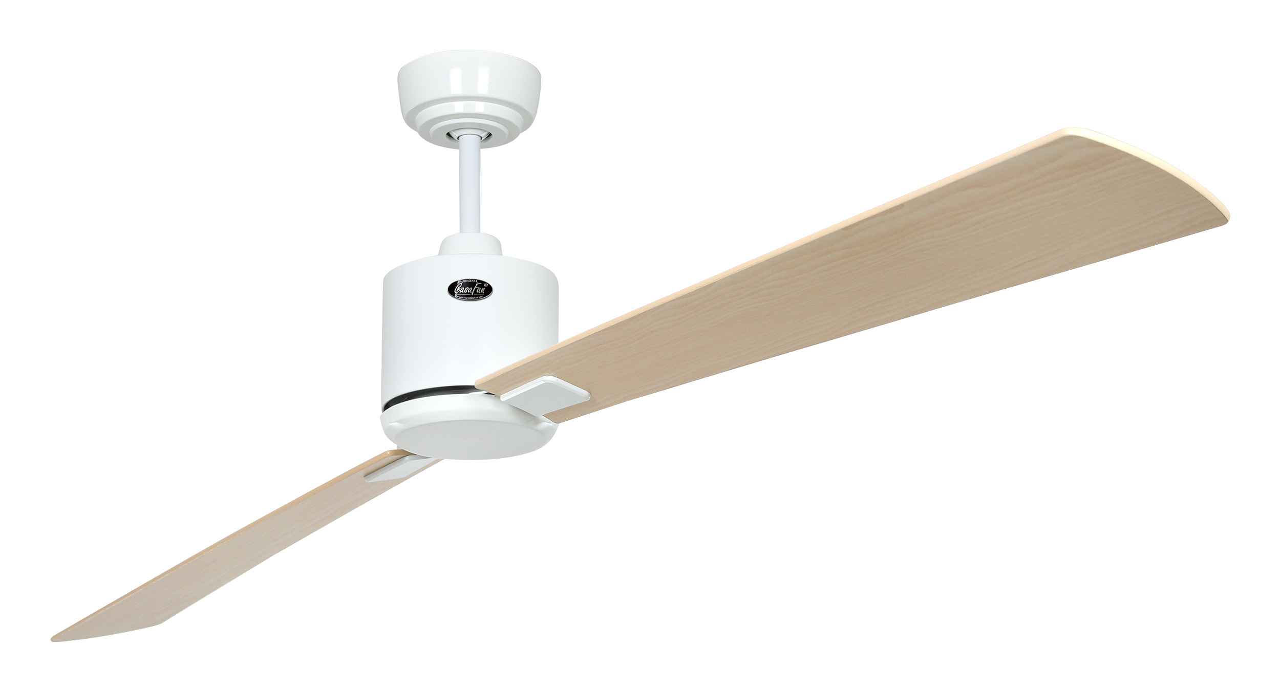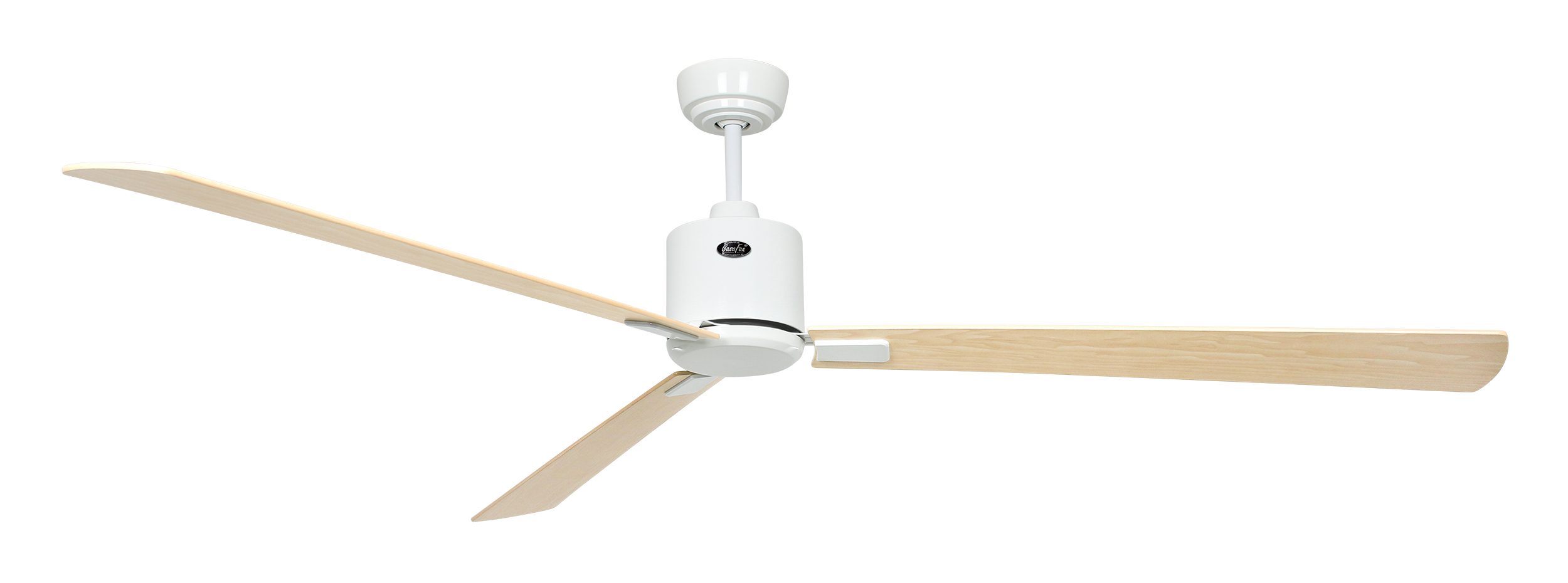 CasaFan ECO NEO III 180 WE-AH/BU WiFi, Energiespar Deckenventilator mit WiFi, Ø 180 cm, Gehäuse Lack weiß, 4 Wendeflügel Ahorn/Buche (wahlweise 2,3,4 montierbar), 100-240 V 50-60 Hz, DC/EC Motor 1,5-28 W, inkl. Funk-Fernbedienung (Motor 6 Stufen, Vor-/Rückwärtslauf - Sommer/Winter -, Schlaftimer, Licht ein/aus/dimmen) und Wandhalter, Zeitlupenstufe, Drehzahl max. 30-110 U/min, inkl. 2 Deckenstangen (150 und 80 mm), Abstand Decke - Flügel 365 mm (295 mm mit kurzer Deckenstange), Montage an Schrägen bis 23°, gewuchteter Motor und Flügel, für Raumgrößen bis 45 m², Zubehör wie Leuchten, Austauschflügel und längere Deckenstangen erhältlich