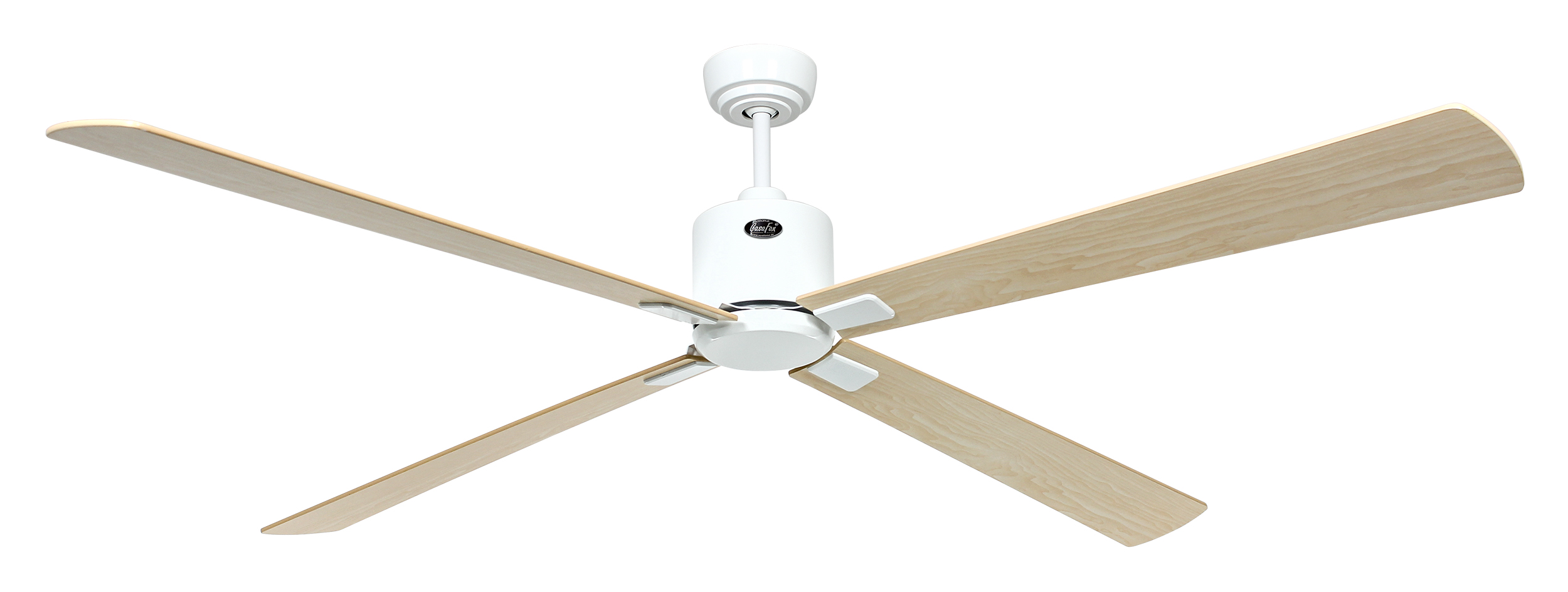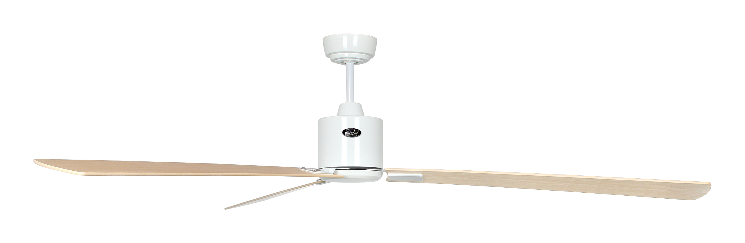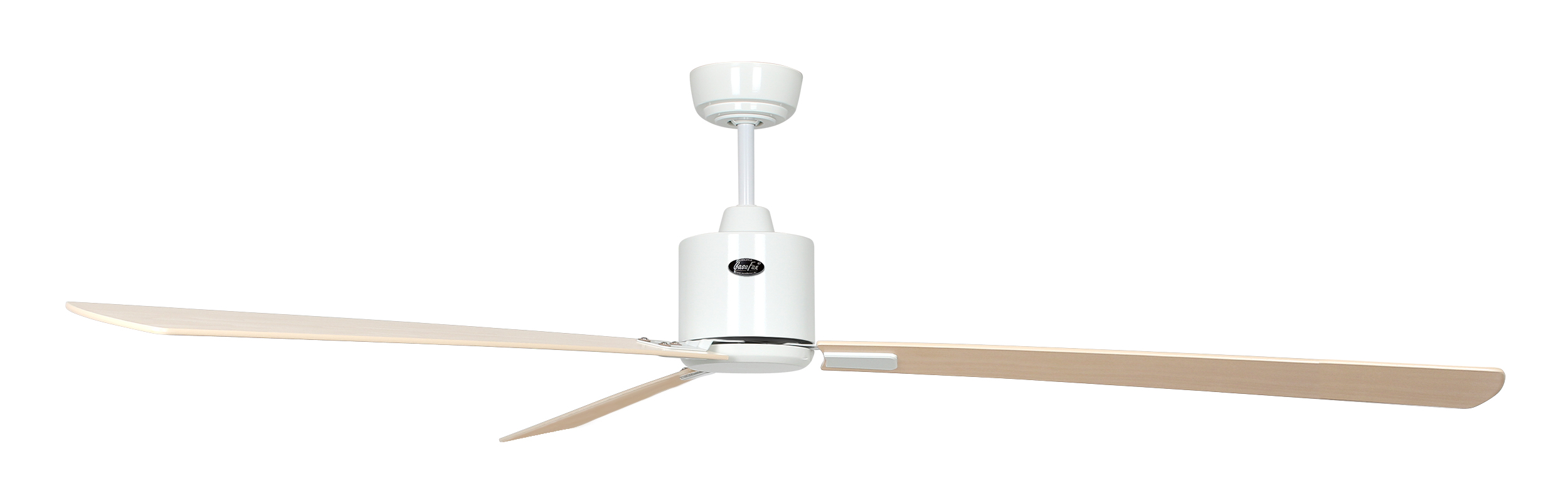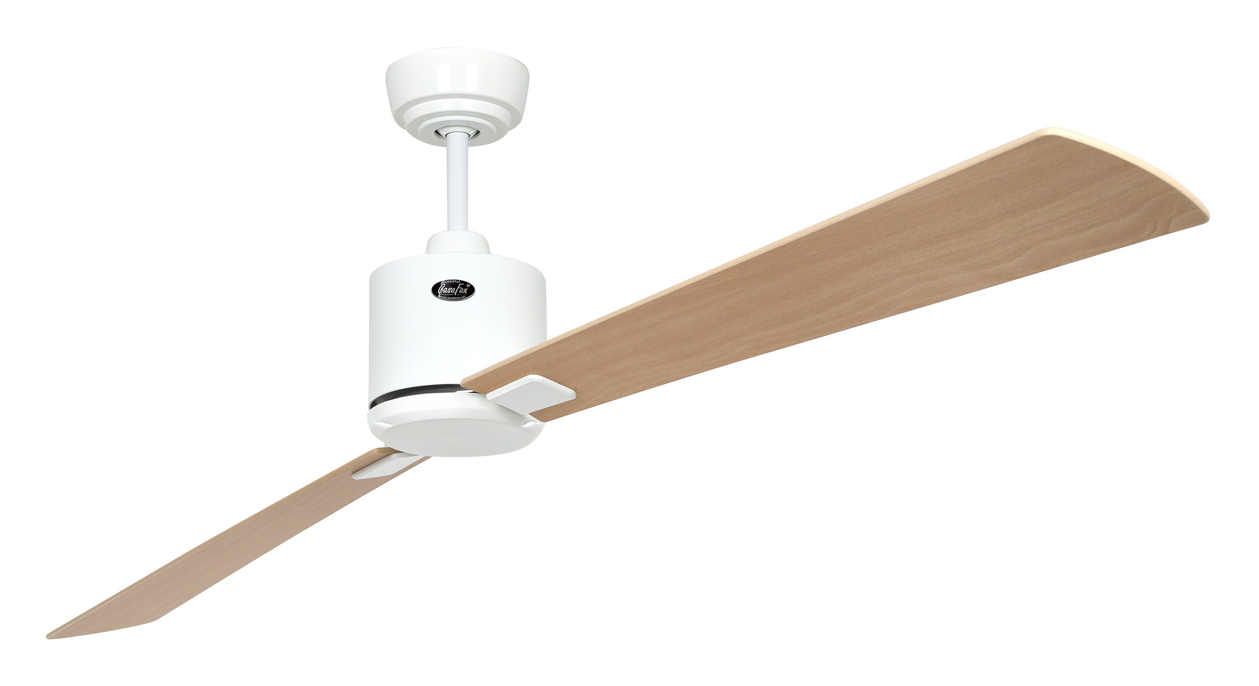 CasaFan ECO NEO III 180 WE-AH/BU WiFi, Energiespar Deckenventilator mit WiFi, Ø 180 cm, Gehäuse Lack weiß, 4 Wendeflügel Ahorn/Buche (wahlweise 2,3,4 montierbar), 100-240 V 50-60 Hz, DC/EC Motor 1,5-28 W, inkl. Funk-Fernbedienung (Motor 6 Stufen, Vor-/Rückwärtslauf - Sommer/Winter -, Schlaftimer, Licht ein/aus/dimmen) und Wandhalter, Zeitlupenstufe, Drehzahl max. 30-110 U/min, inkl. 2 Deckenstangen (150 und 80 mm), Abstand Decke - Flügel 365 mm (295 mm mit kurzer Deckenstange), Montage an Schrägen bis 23°, gewuchteter Motor und Flügel, für Raumgrößen bis 45 m², Zubehör wie Leuchten, Austauschflügel und längere Deckenstangen erhältlich