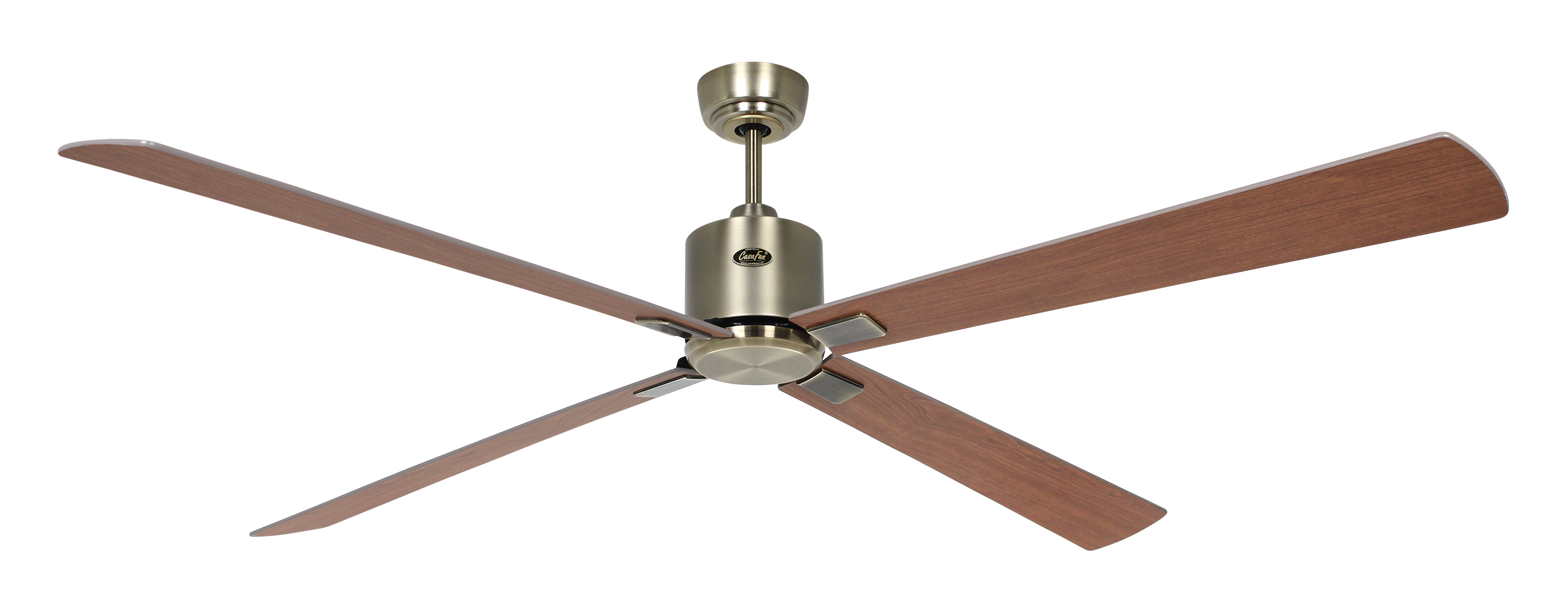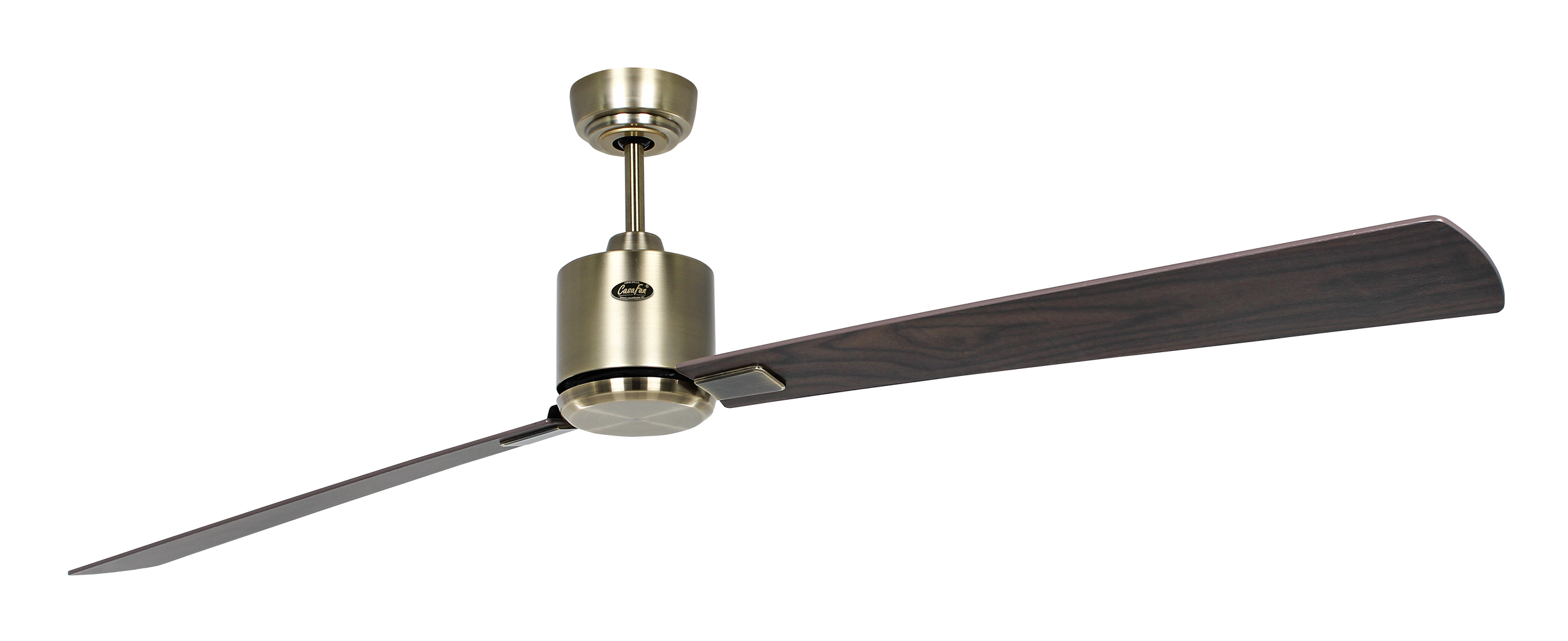 CasaFan ECO NEO III 180 MA-NB/KI WiFi, Energiespar Deckenventilator mit WiFi, Ø 180 cm, Gehäuse Messing antik, 4 Wendeflügel Nussbaum/Kirschbaum (wahlweise 2,3,4 montierbar), 100-240 V 50-60 Hz, DC/EC Motor 1,5-28 W, inkl. Funk-Fernbedienung (Motor 6 Stufen, Vor-/Rückwärtslauf - Sommer/Winter -, Schlaftimer, Licht ein/aus/dimmen) und Wandhalter, Zeitlupenstufe, Drehzahl max. 30-110 U/min, inkl. 2 Deckenstangen (150 und 80 mm), Abstand Decke - Flügel 365 mm (295 mm mit kurzer Deckenstange), Montage an Schrägen bis 23°, gewuchteter Motor und Flügel, für Raumgrößen bis 45 m², Zubehör wie Leuchten, Austauschflügel und längere Deckenstangen erhältlich