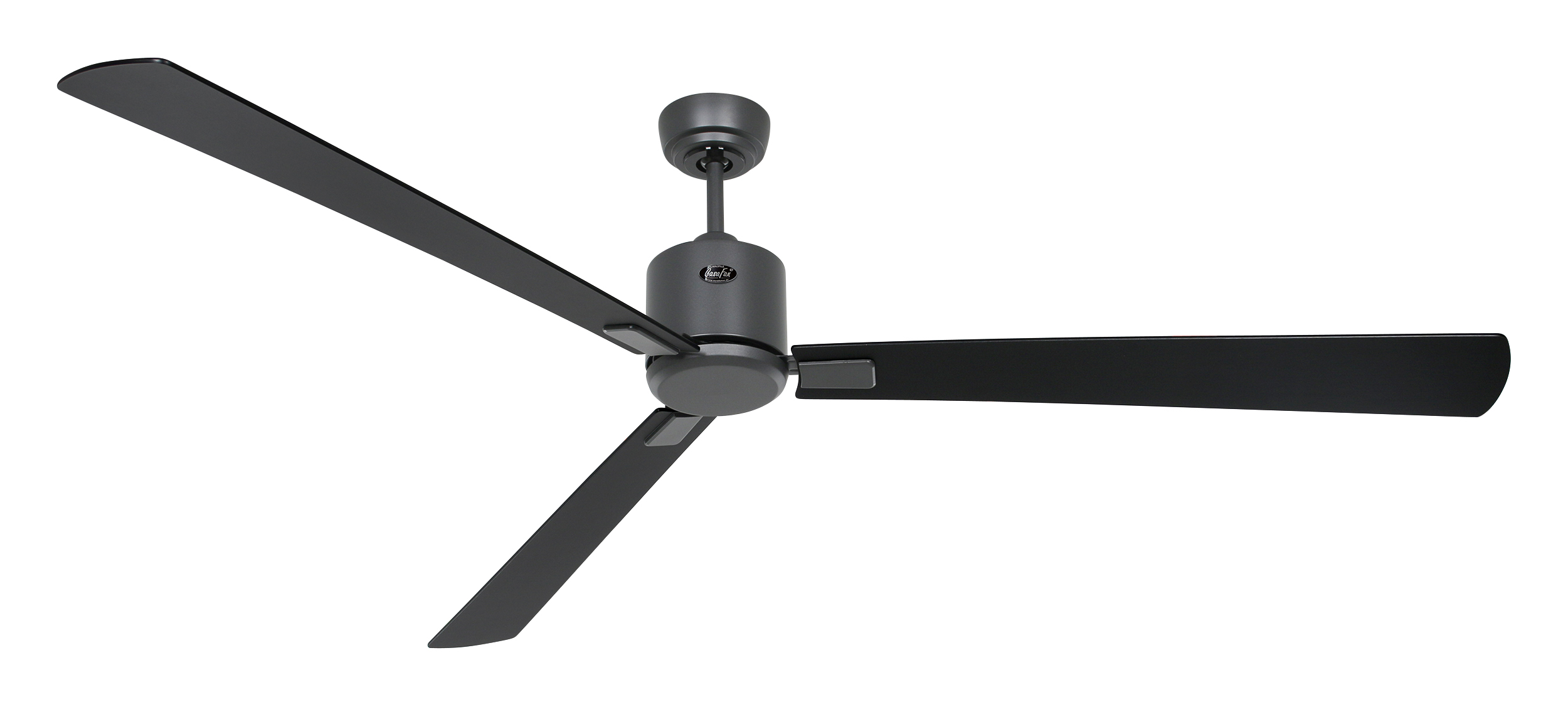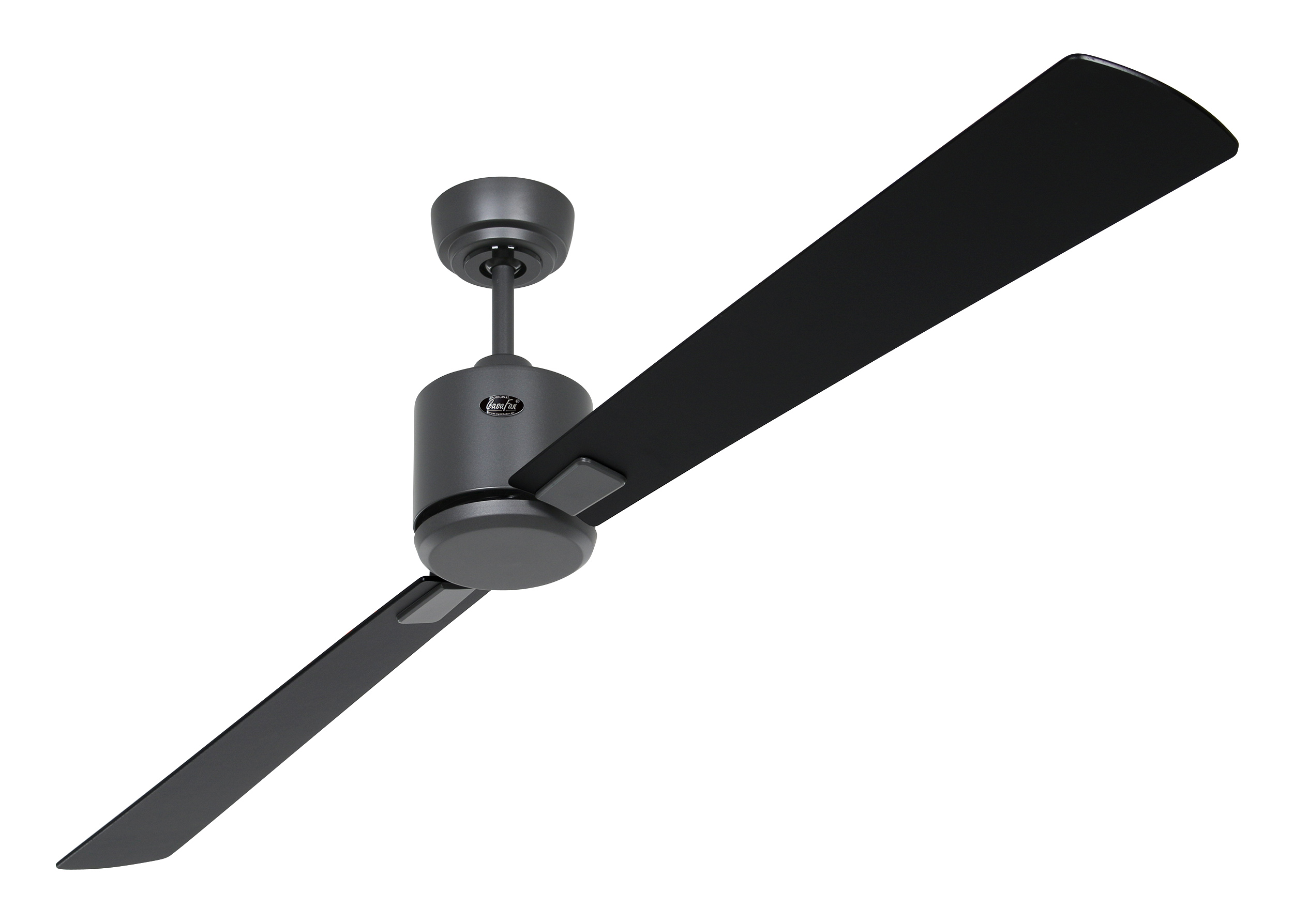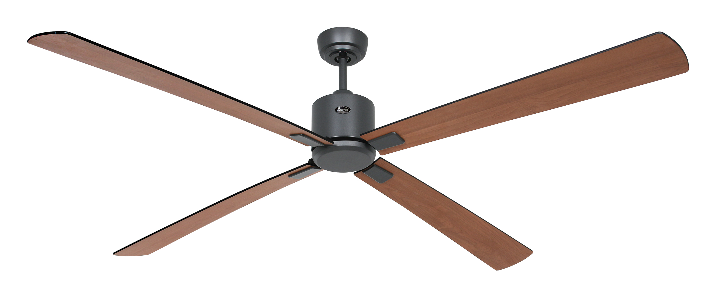 CasaFan ECO NEO III 180 BG-SW/TK WiFi, Energiespar Deckenventilator mit WiFi, Ø 180 cm, Gehäuse Lack basaltgrau, 4 Wendeflügel Lack schwarz/Teak (wahlweise 2,3,4 montierbar), 100-240 V 50-60 Hz, DC/EC Motor 1,5-28 W, inkl. Funk-Fernbedienung (Motor 6 Stufen, Vor-/Rückwärtslauf - Sommer/Winter -, Schlaftimer, Licht ein/aus/dimmen) und Wandhalter, Zeitlupenstufe, Drehzahl max. 30-110 U/min, inkl. 2 Deckenstangen (150 und 80 mm), Abstand Decke - Flügel 365 mm (295 mm mit kurzer Deckenstange), Montage an Schrägen bis 23°, gewuchteter Motor und Flügel, für Raumgrößen bis 45 m², Zubehör wie Leuchten, Austauschflügel und längere Deckenstangen erhältlich