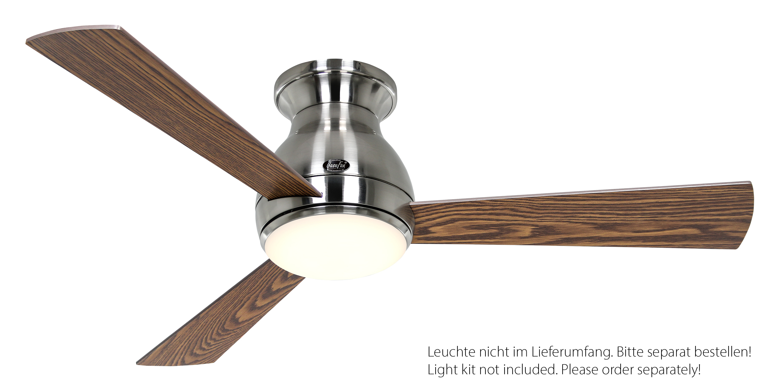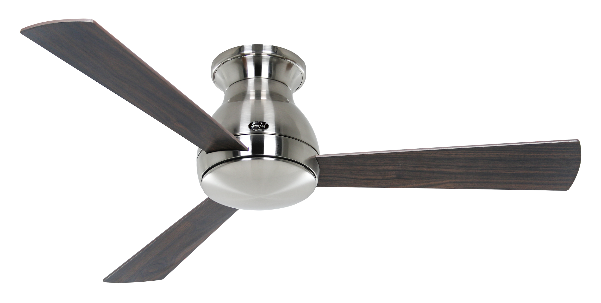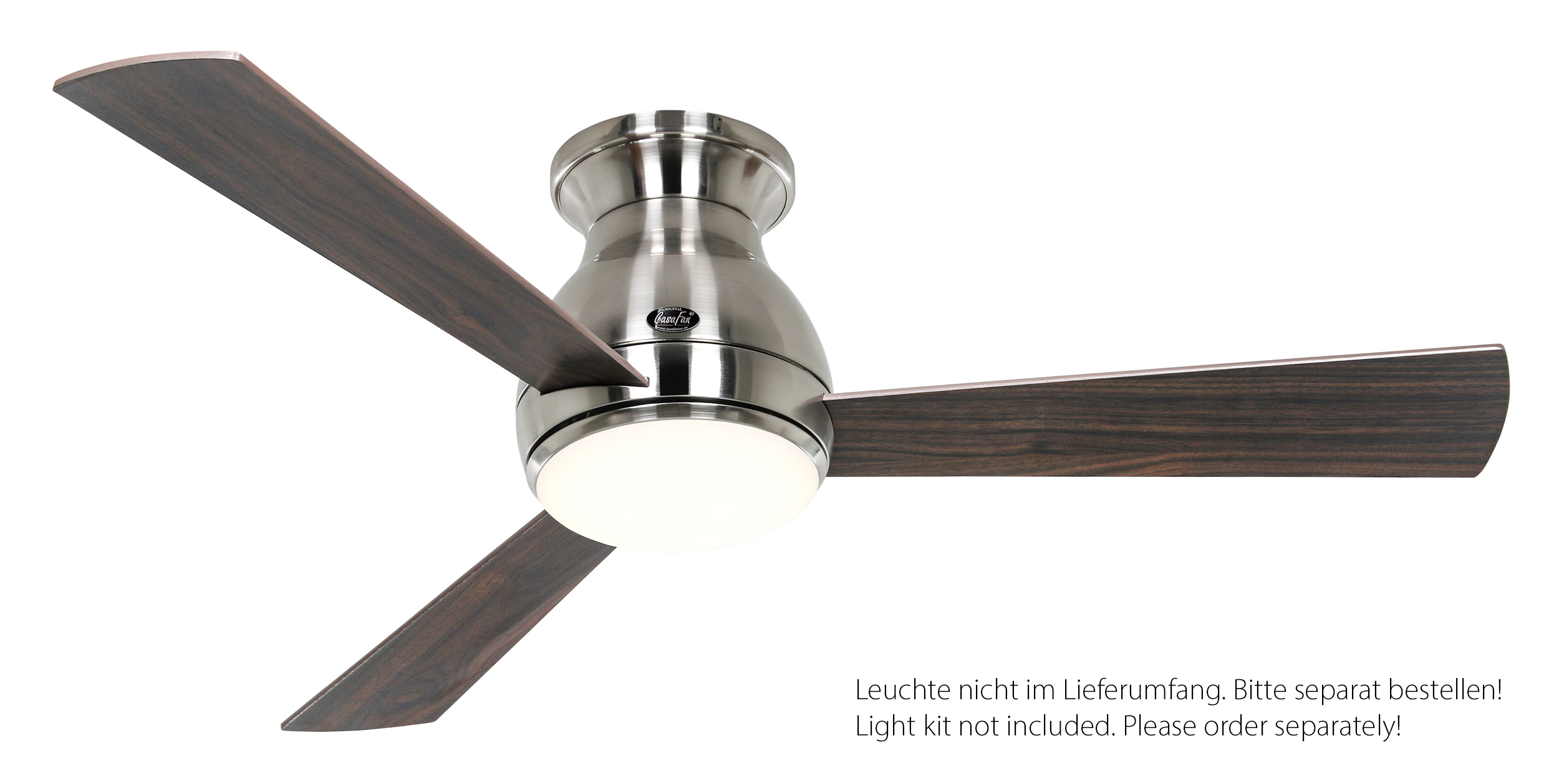 CasaFan Eco PALLAS 116 BN-EA/NB 0 - 10 V, Energiespar Deckenventilator, Ø 116 cm, Gehäuse Chrom gebürstet, 3 Wendeflügel Eiche antik/Nussbaum, 100-240 V 50-60 Hz, DC/EC Motor 1-20 W, inkl. Funk-Fernbedienung (Motor 6 Stufen, Lichtdimmung, Vor-/Rückwärtslauf - Sommer/Winter -, Schlaftimer) und Wandhalter, Zeitlupenstufe, Drehzahl max 31-210 U/min, Abstand Decke - Flügel 245 mm, extraflach, Montage nur an geraden Decken, gewuchteter Motor und Flügel, für Raumgrößen bis 14 m², Zubehör wie passende Leuchten erhältlich