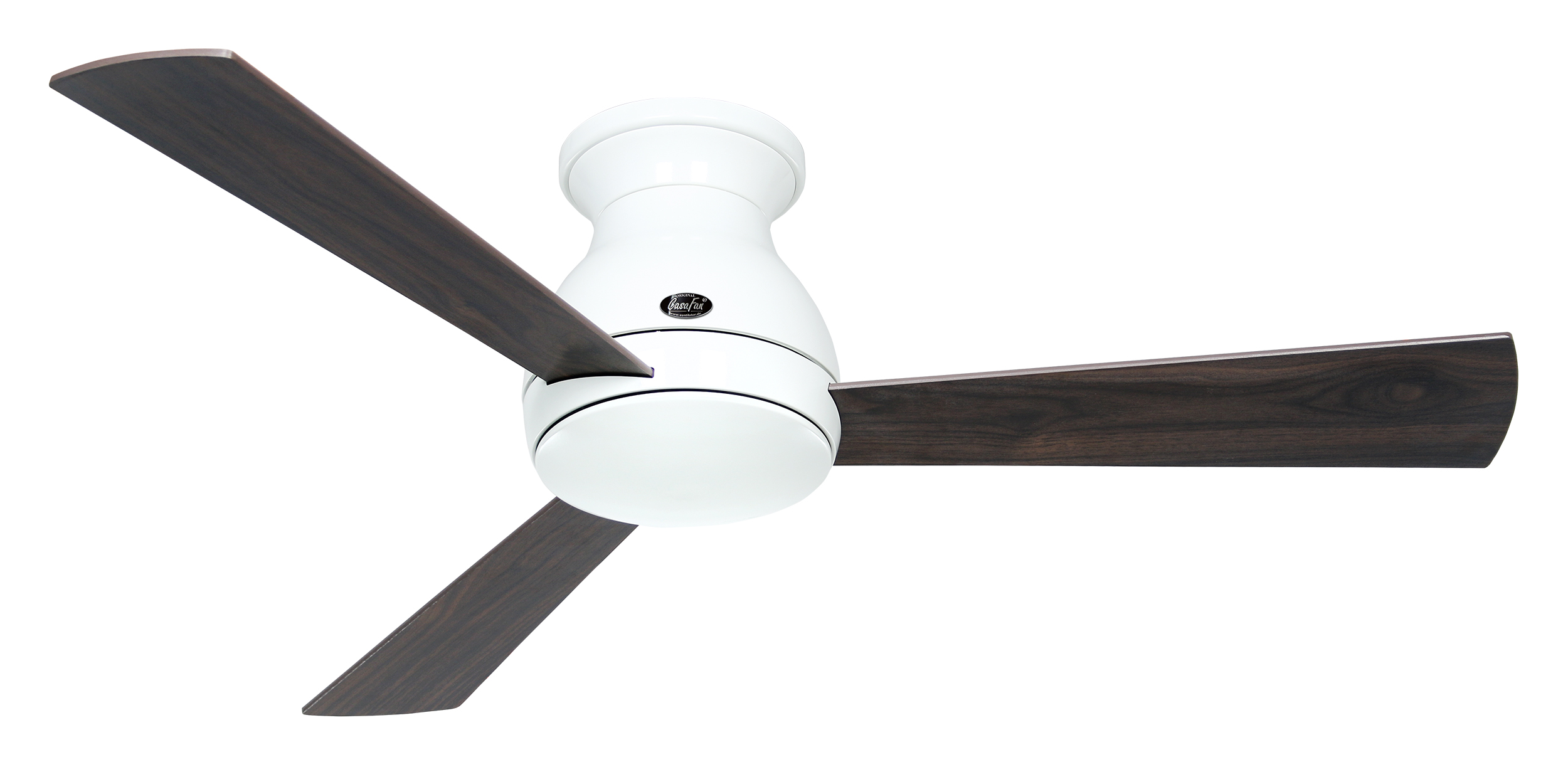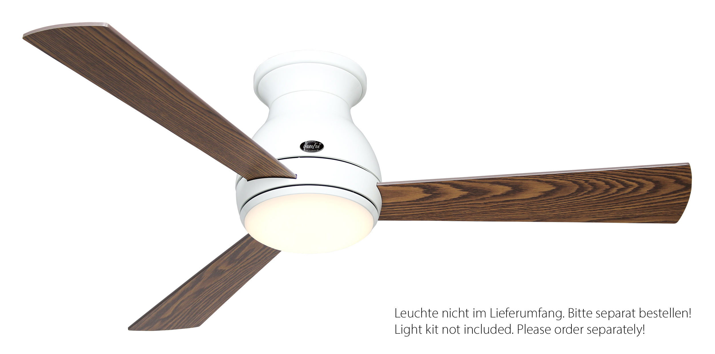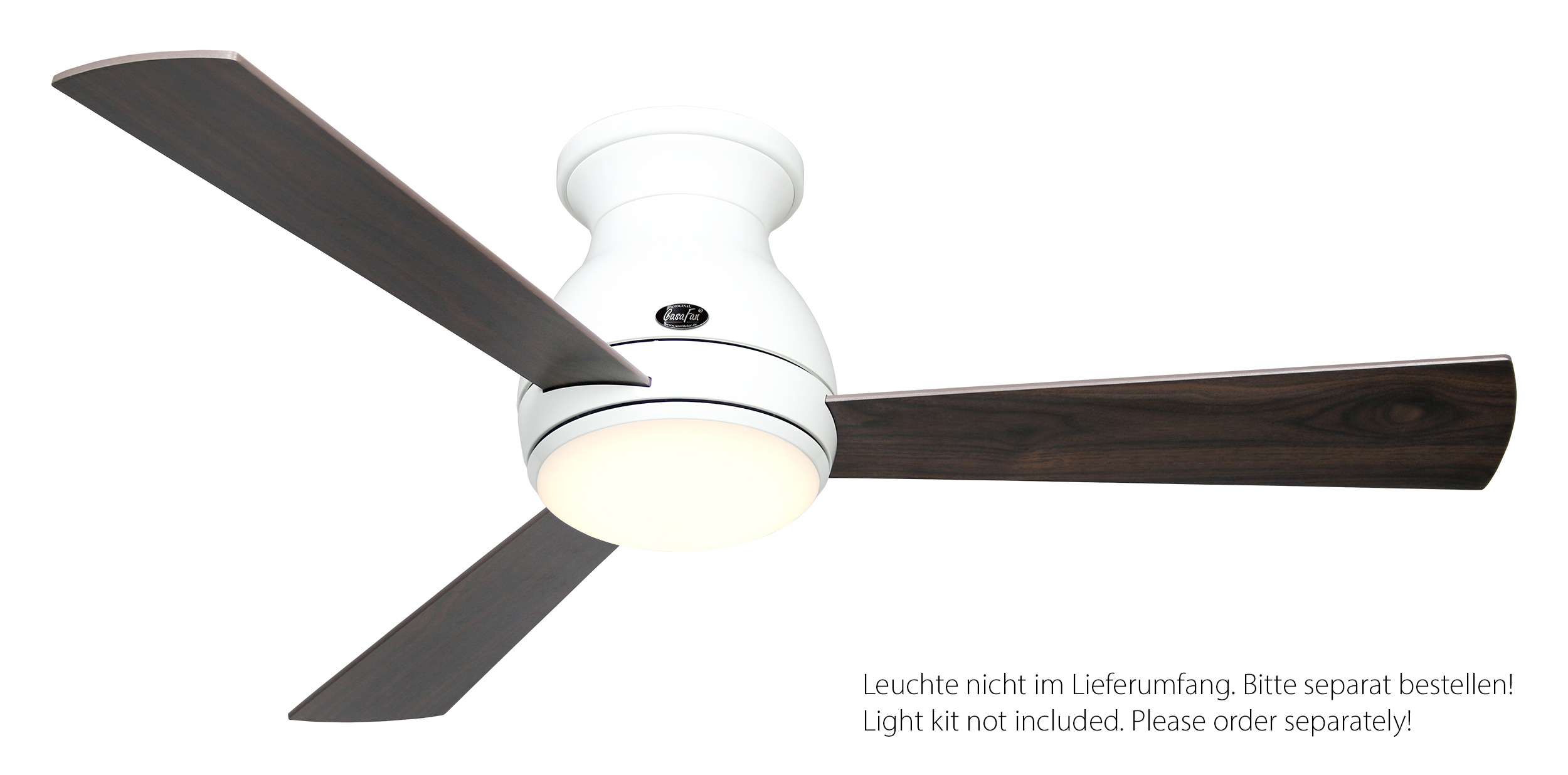 CasaFan Eco PALLAS 116 WE-EA/NB 0 - 10 V, Energiespar Deckenventilator, Ø 116 cm, Gehäuse Lack weiß, 3 Wendeflügel Eiche antik/Nussbaum 100-240 V 50-60 Hz, DC/EC Motor 1-20 W, inkl. Funk-Fernbedienung (Motor 6 Stufen, Lichtdimmung, Vor-/Rückwärtslauf - Sommer/Winter -, Schlaftimer) und Wandhalter, Zeitlupenstufe, Drehzahl max 31-210 U/min, Abstand Decke - Flügel 245 mm, extraflach, Montage nur an geraden Decken, gewuchteter Motor und Flügel, für Raumgrößen bis 14 m², Zubehör wie passende Leuchten erhältlich