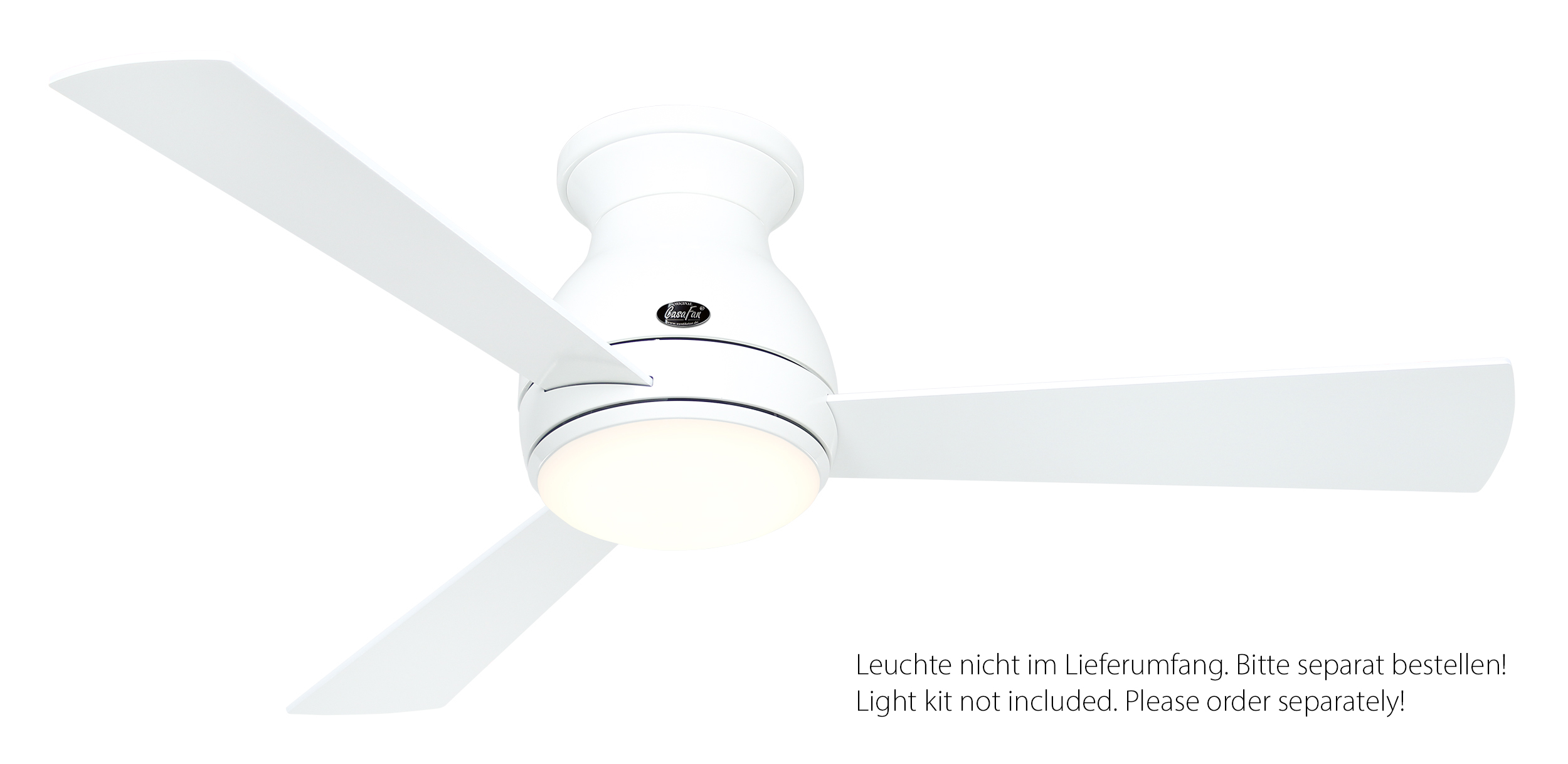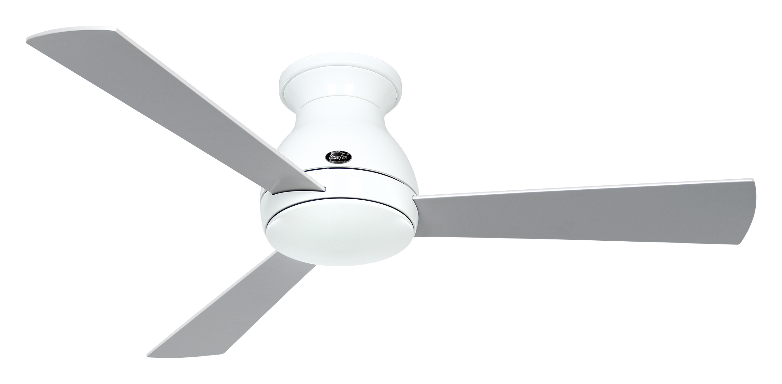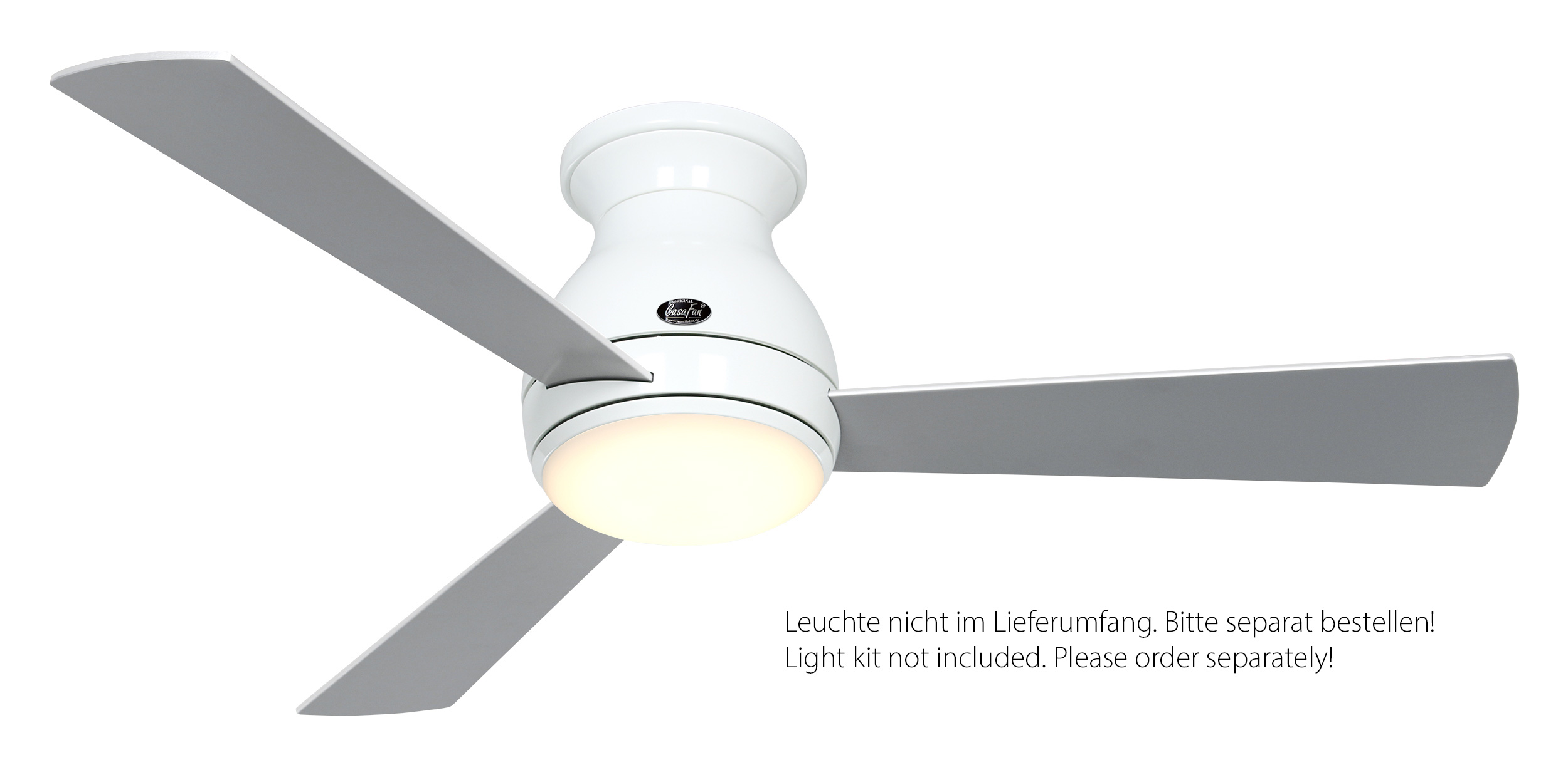 CasaFan Eco PALLAS 116 WE-WE/LG 0 - 10 V, Energiespar Deckenventilator, Ø 116 cm, Gehäuse Lack weiß, 3 Wendeflügel Lack weiß/Lack lichtgrau, 100-240 V 50-60 Hz, DC/EC Motor 1-20 W, inkl. Funk-Fernbedienung (Motor 6 Stufen, Lichtdimmung, Vor-/Rückwärtslauf - Sommer/Winter -, Schlaftimer) und Wandhalter, Zeitlupenstufe, Drehzahl max 31-210 U/min, Abstand Decke - Flügel 245 mm, extraflach, Montage nur an geraden Decken, gewuchteter Motor und Flügel, für Raumgrößen bis 14 m², Zubehör wie passende Leuchten erhältlich