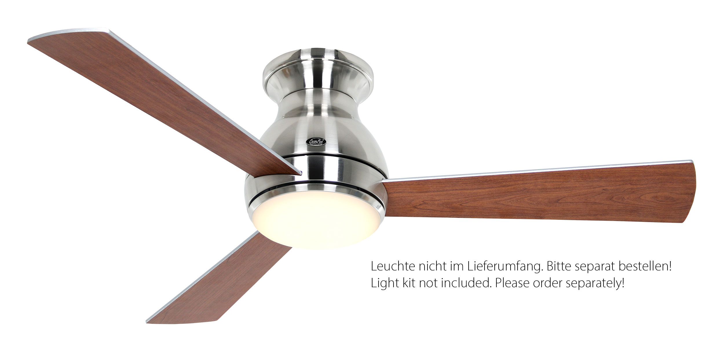 CasaFan ECO PALLAS 116 BN-SI/KI, Energiespar Deckenventilator, Ø 116 cm, Gehäuse Chrom gebürstet, 3 Wendeflügel Lack silber/Kirschbaum, 100-240 V 50-60 Hz, DC/EC Motor 1-20 W, inkl. Funk-Fernbedienung (Motor 6 Stufen, Lichtdimmung, Vor-/Rückwärtslauf - Sommer/Winter -, Schlaftimer) und Wandhalter, Zeitlupenstufe, Drehzahl max 31-210 U/min, Abstand Decke - Flügel 245 mm, extraflach, Montage nur an geraden Decken, gewuchteter Motor und Flügel, für Raumgrößen bis 14 m², Zubehör wie passende Leuchten erhältlich