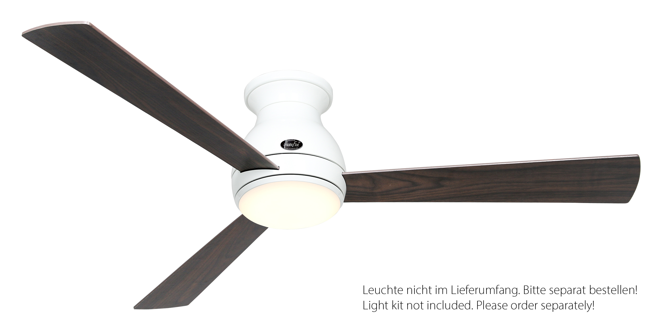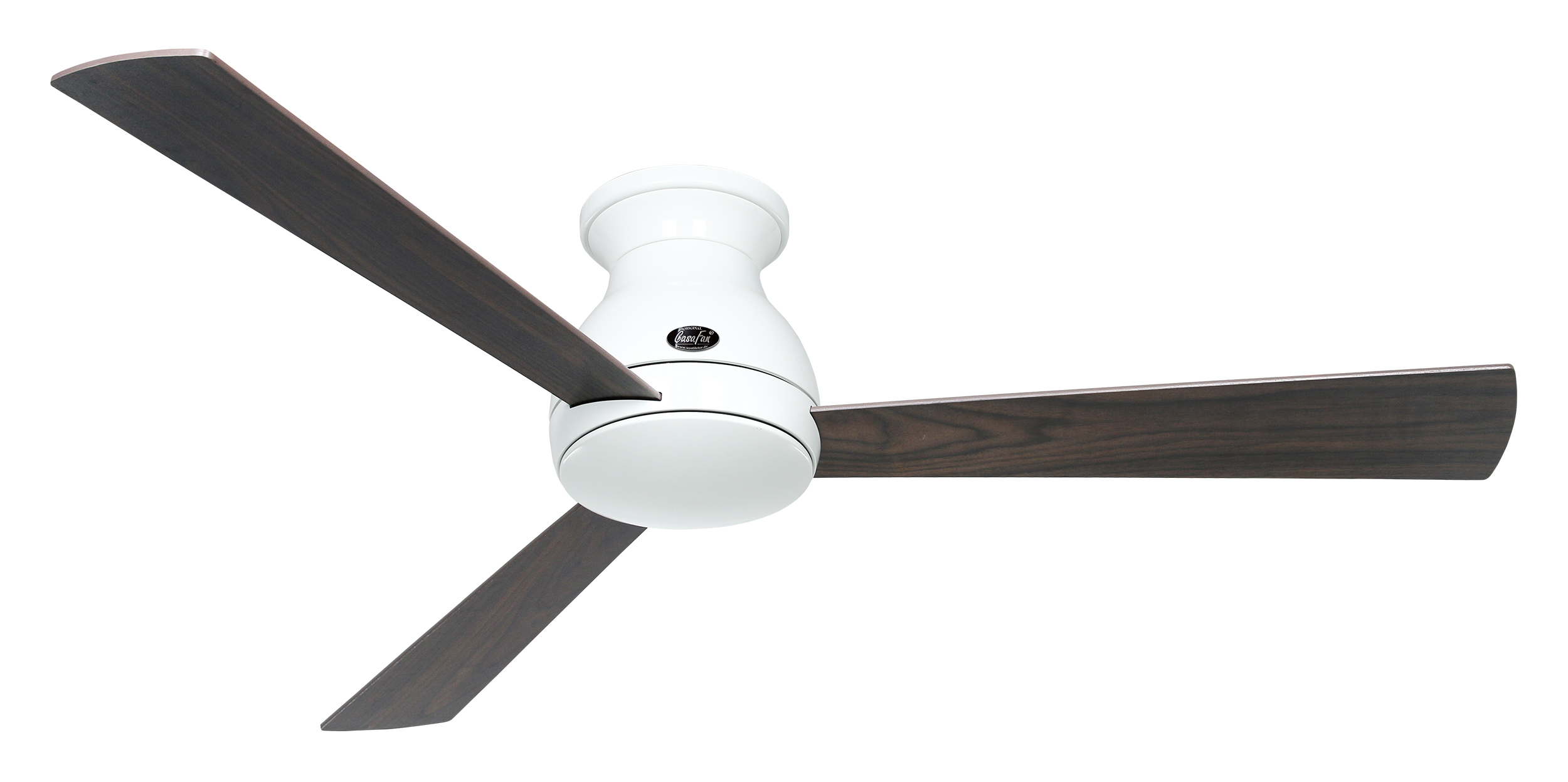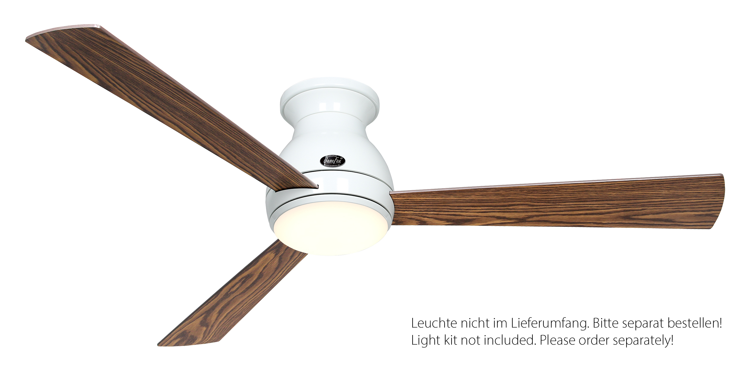 CasaFan ECO PALLAS 142 WE-EA/NB, Energiespar Deckenventilator, Ø 142 cm, Gehäuse Lack weiß, 3 Wendeflügel Eiche antik/Nussbaum, 100-240 V 50-60 Hz, DC/EC Motor 1,1-27 W, inkl. Funk-Fernbedienung (Motor 6 Stufen, Lichtdimmung, Vor-/Rückwärtslauf - Sommer/Winter -, Schlaftimer) und Wandhalter, Zeitlupenstufe, Drehzahl max 30-180 U/min, Abstand Decke - Flügel 245 mm, extraflach, Montage nur an geraden Decken, gewuchteter Motor und Flügel, für Raumgrößen bis 20 m², Zubehör wie passende Leuchten erhältlich