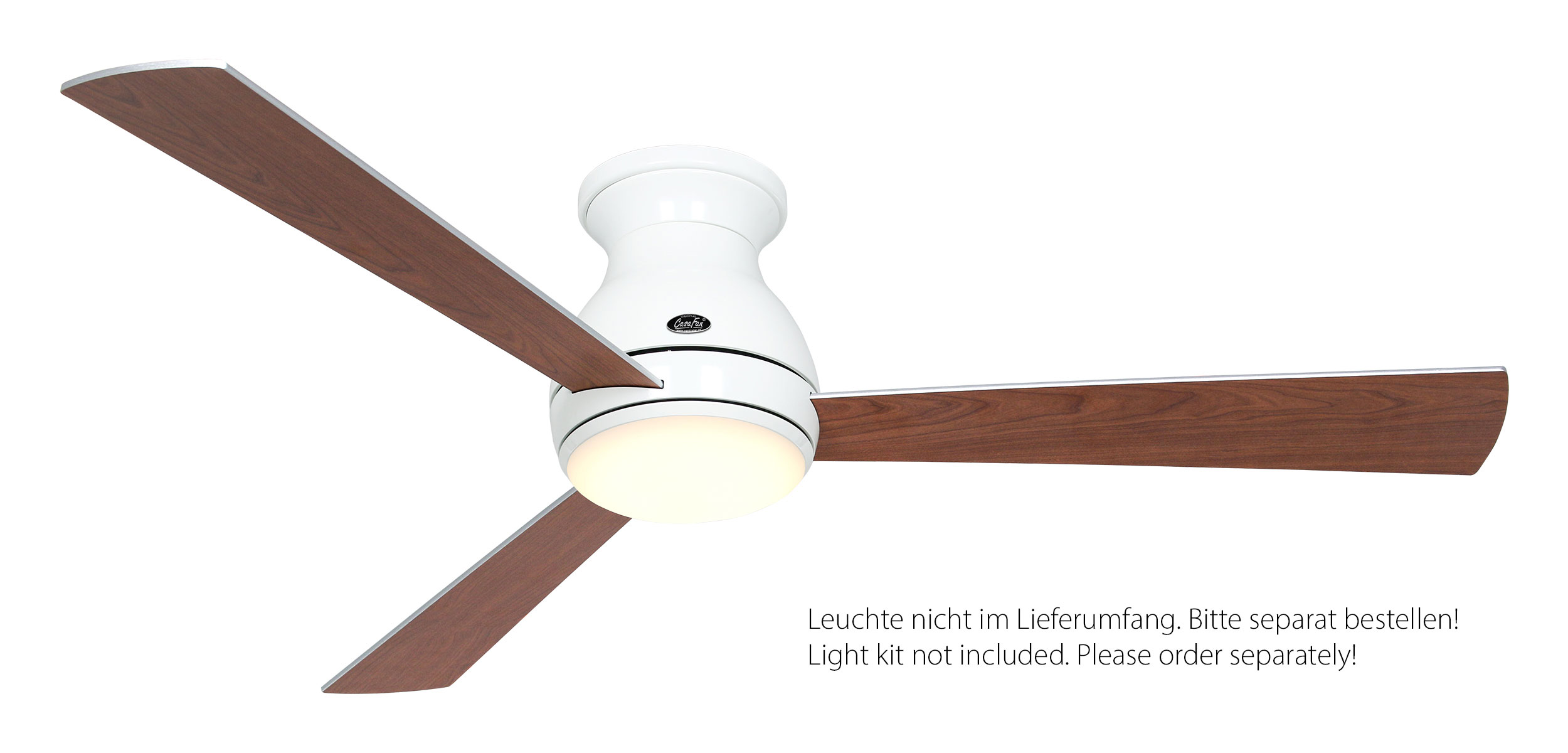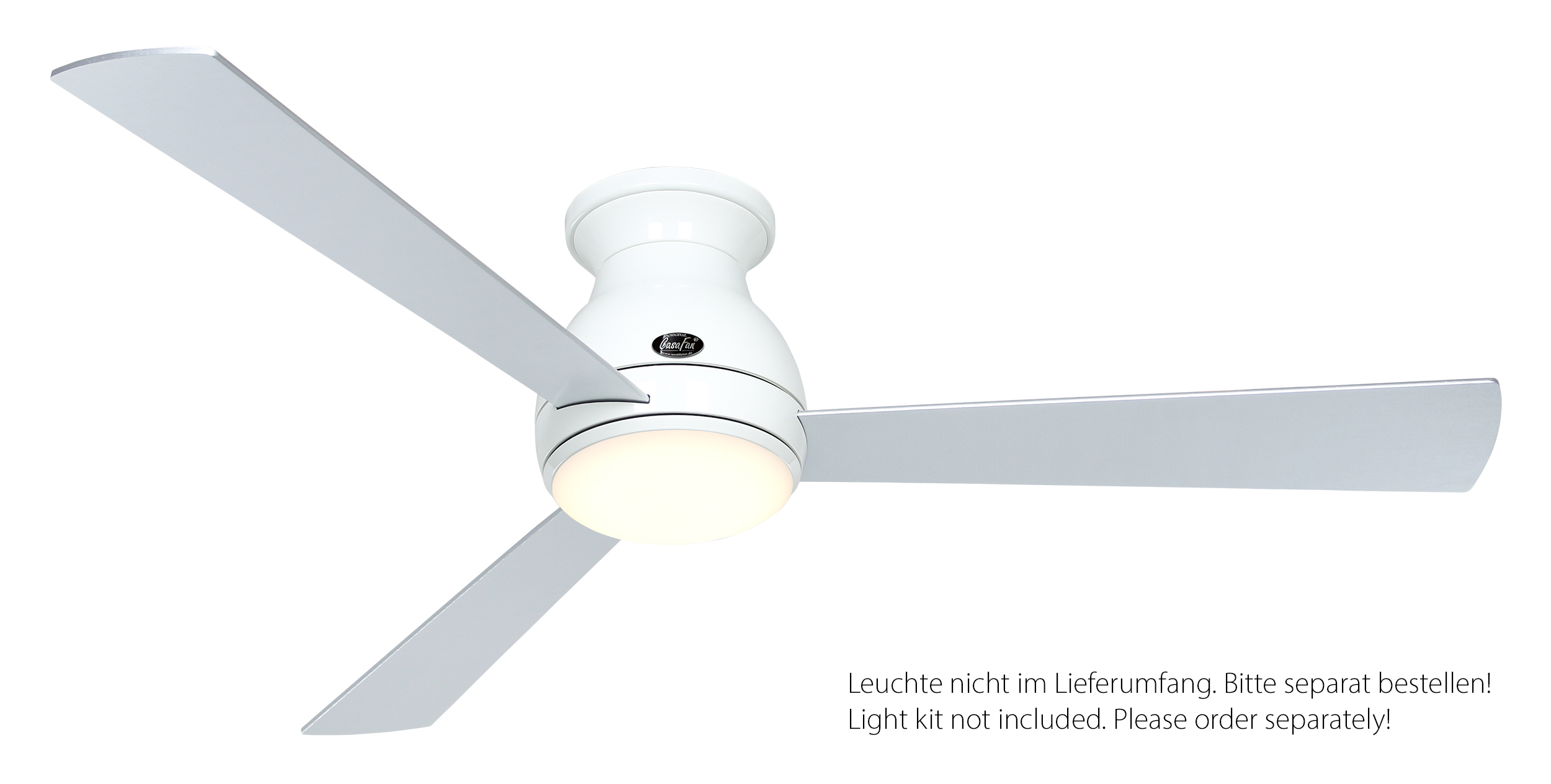 CasaFan ECO PALLAS 142 WE-SI/KI, Energiespar Deckenventilator, Ø 142 cm, Gehäuse Lack weiß, 3 Wendeflügel Lack silber/Kirschbaum, 100-240 V 50-60 Hz, DC/EC Motor 1,1-27 W, inkl. Funk-Fernbedienung (Motor 6 Stufen, Lichtdimmung, Vor-/Rückwärtslauf - Sommer/Winter -, Schlaftimer) und Wandhalter, Zeitlupenstufe, Drehzahl max 30-180 U/min, Abstand Decke - Flügel 245 mm, extraflach, Montage nur an geraden Decken, gewuchteter Motor und Flügel, für Raumgrößen bis 20 m², Zubehör wie passende Leuchten erhältlich