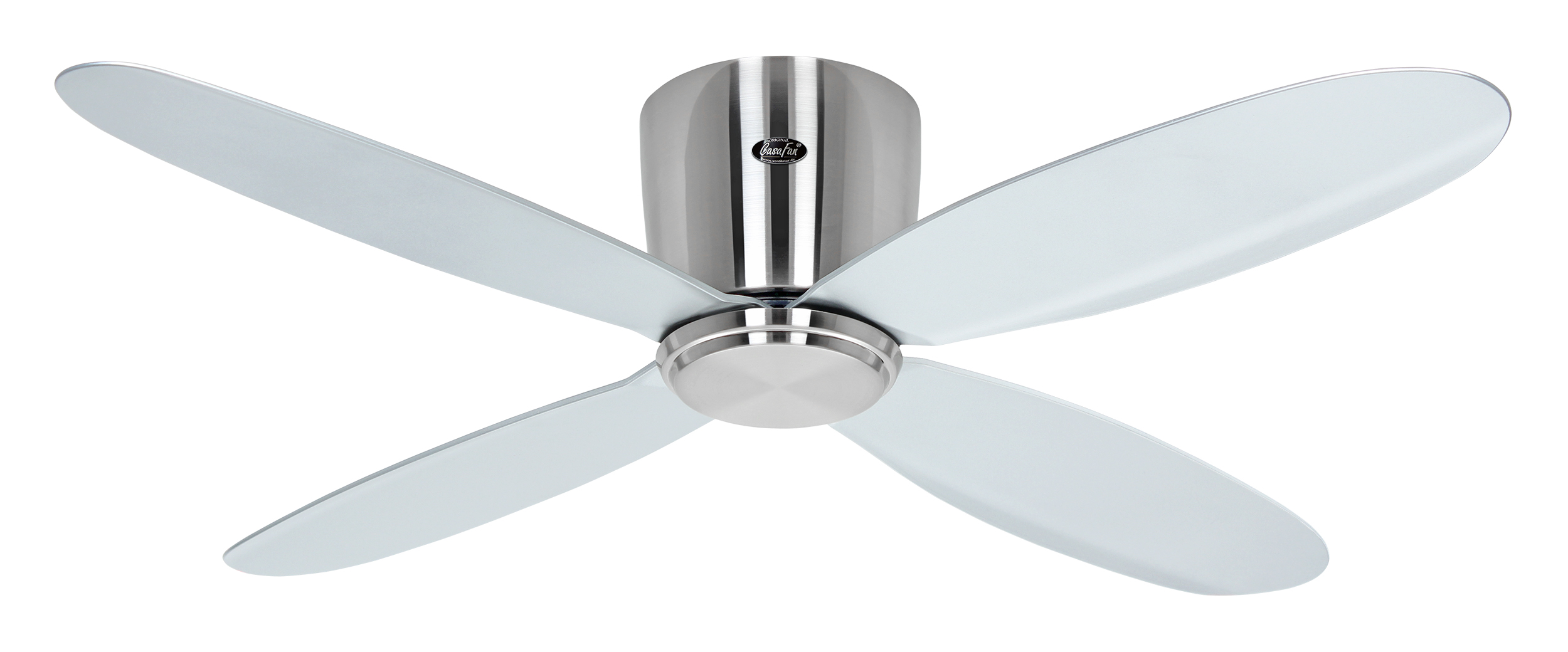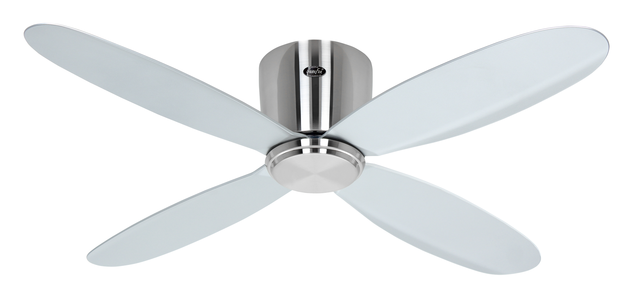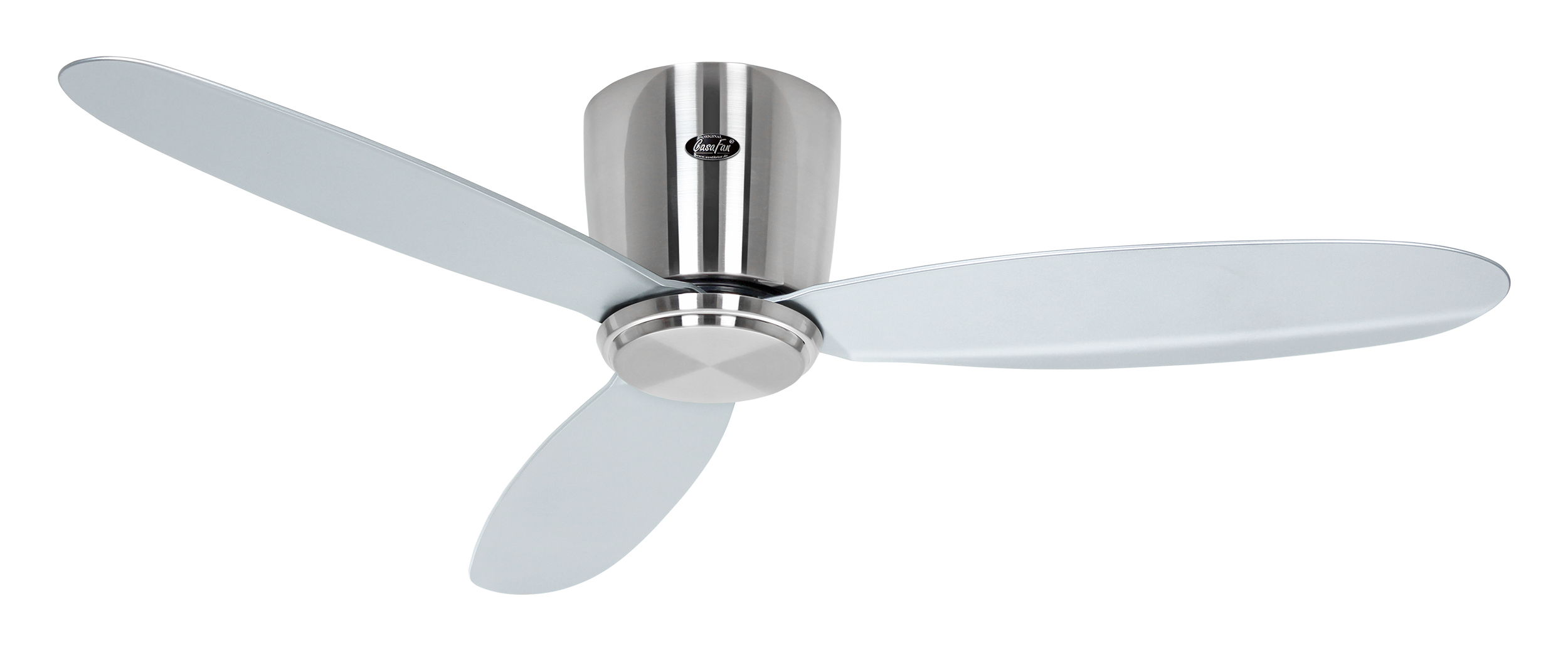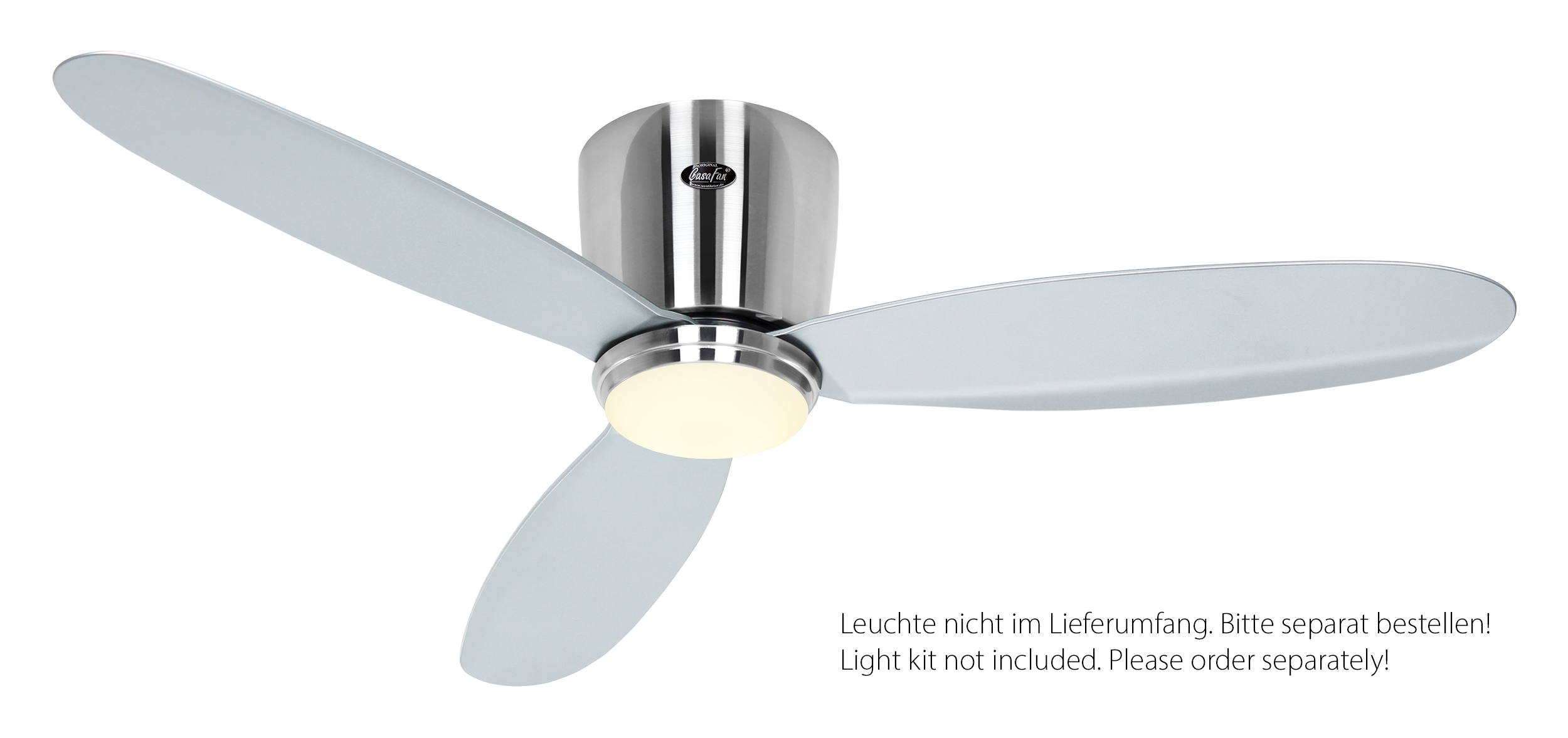CasaFan ECO PLANO II 112 BN-SI 0 - 10 V, Energiespar Deckenventilator, Ø 112 cm, Gehäuse Chrom gebürstet, 4 Flügel Lack silber (wahlweise 2,3,4 montierbar), 100-240 V 50-60 Hz, DC/EC Motor 1-13 W, inkl. Funk-Fernbedienung (Motor 6 Stufen, Vor-/Rückwärtslauf - Sommer/Winter -, Schlaftimer) und Wandhalter, Zeitlupenstufe, Drehzahl max. 30-208 U/min, Abstand Decke - Flügel 200 mm, extraflach, Montage nur an geraden Decken, gewuchteter Motor und Flügel, für Raumgrößen bis 15 m², Zubehör wie passende Leuchten erhältlich