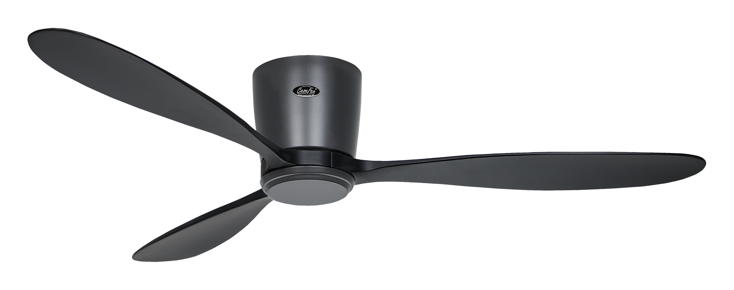 CasaFan ECO PLANO WOOD BG-SW WiFi, Energiespar Deckenventilator mit WiFi, Ø 132 cm, Gehäuse Lack basaltgrau, 3 Flügel Massivholz Lack schwarz, 100-240 V 50-60 Hz, DC/EC Motor 1,0-21 W, inkl. Funk-Fernbedienung (Motor 6 Stufen, Vor-/Rückwärtslauf - Sommer/Winter -, Schlaftimer) und Wandhalter, Zeitlupenstufe, Drehzahl max. 30-210 U/min, Abstand Decke - Flügel 198 mm, extraflach, Montage nur an geraden Decken, gewuchteter Motor und Flügel, für Raumgrößen bis 23 m², nicht für Leuchtenanbau geeignet, mit WiFi (alle Funktionen bedienbar mit WiFi Smart Life App), Zubehör Hotel Wandsteuerung FB-FNK EC #86200 erhältlich