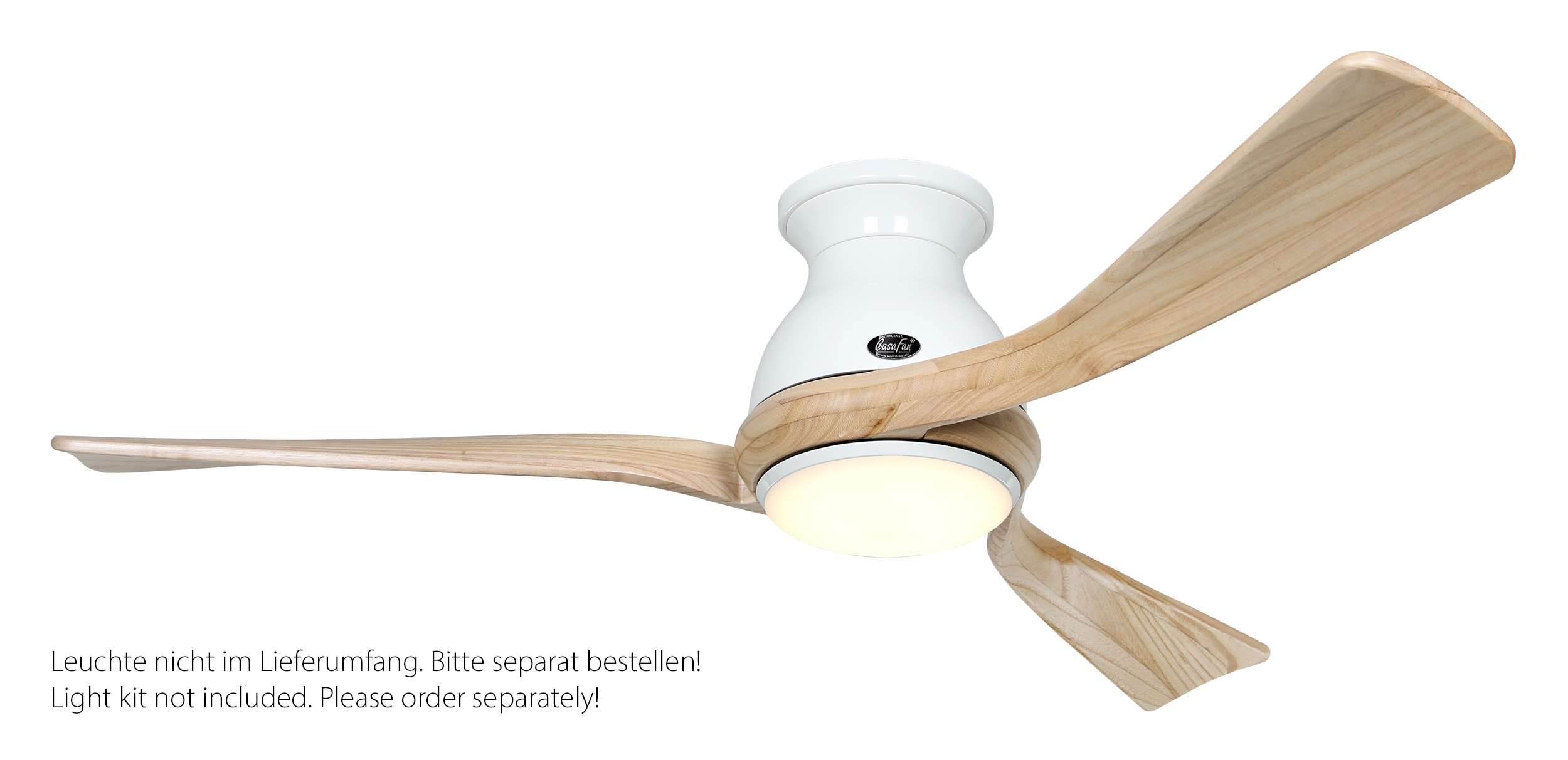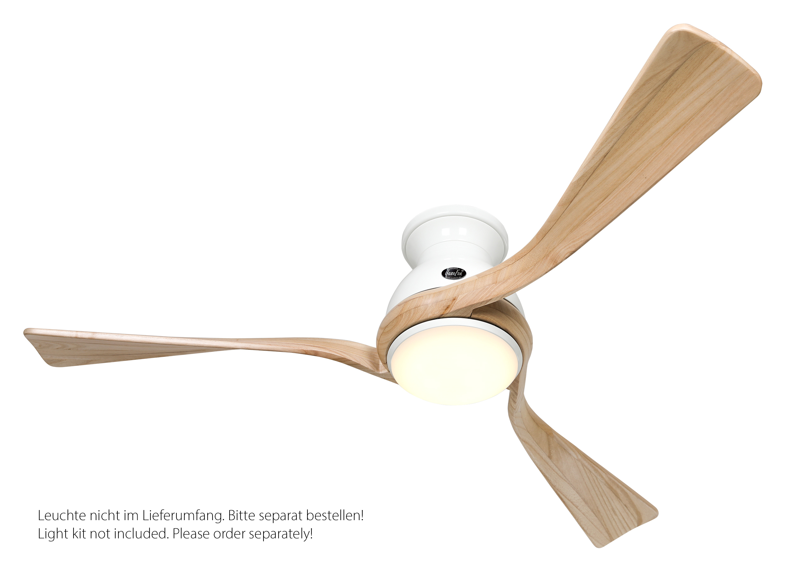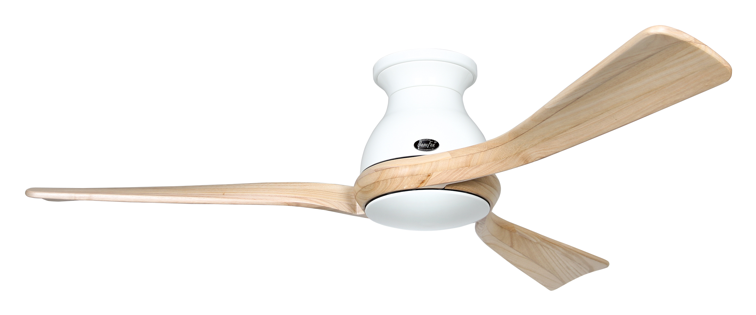 CasaFan ECO REGENTO 140 WE-NT 0 - 10 V, Energiespar Deckenventilator, Ø 140 cm, Gehäuse Lack weiß, 3 Flügel Holz natur, handgearbeitet aus schichtverleimtem Massivholz, 100-240 V 50-60 Hz, DC/EC Motor 1,2-27 W, inkl. Funk-Fernbedienung (Motor 6 Stufen, Lichtdimmung, Vor-/Rückwärtslauf - Sommer/Winter -, Schlaftimer) und Wandhalter, Zeitlupenstufe, Drehzahl max 30-132 U/min, Abstand Decke - Flügel 260 mm, extraflach, Montage nur an geraden Decken, gewuchteter Motor und Flügel, für Raumgrößen bis 25 m², Zubehör wie passende Leuchten erhältlich