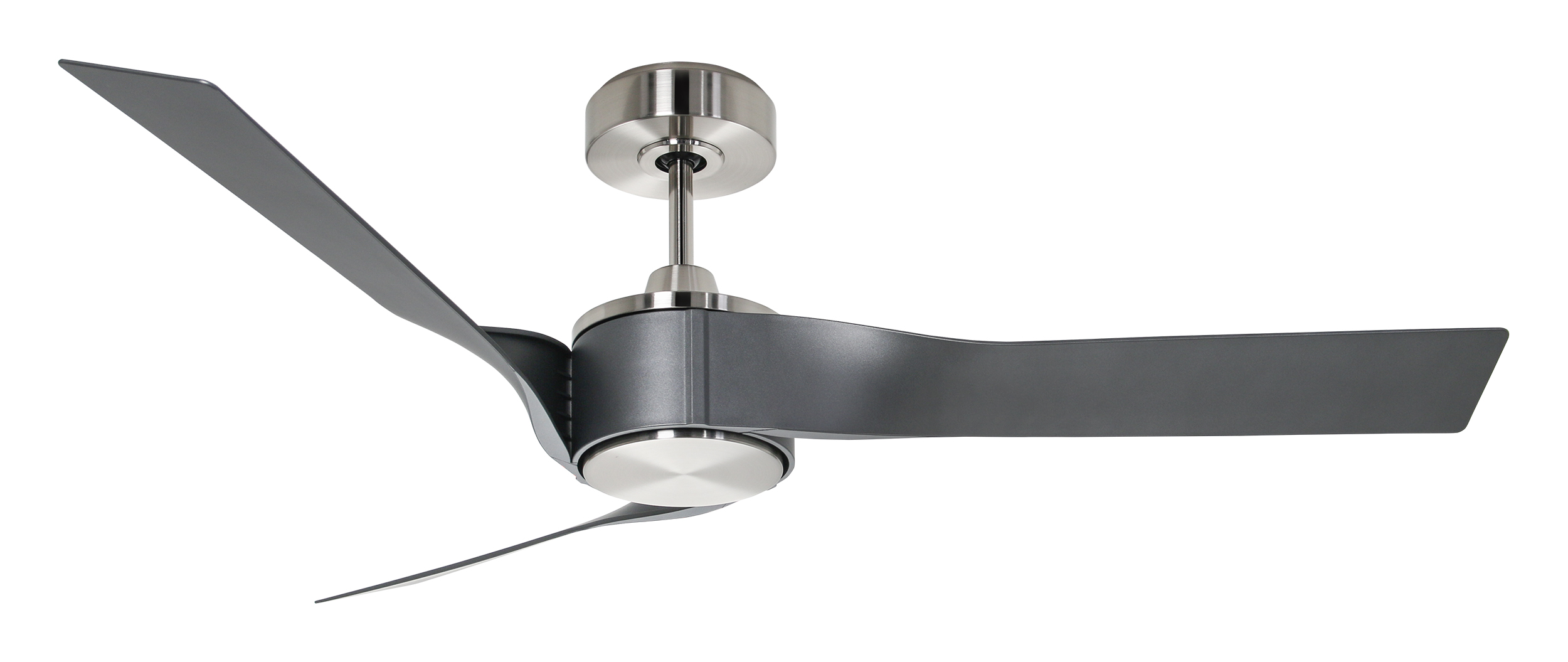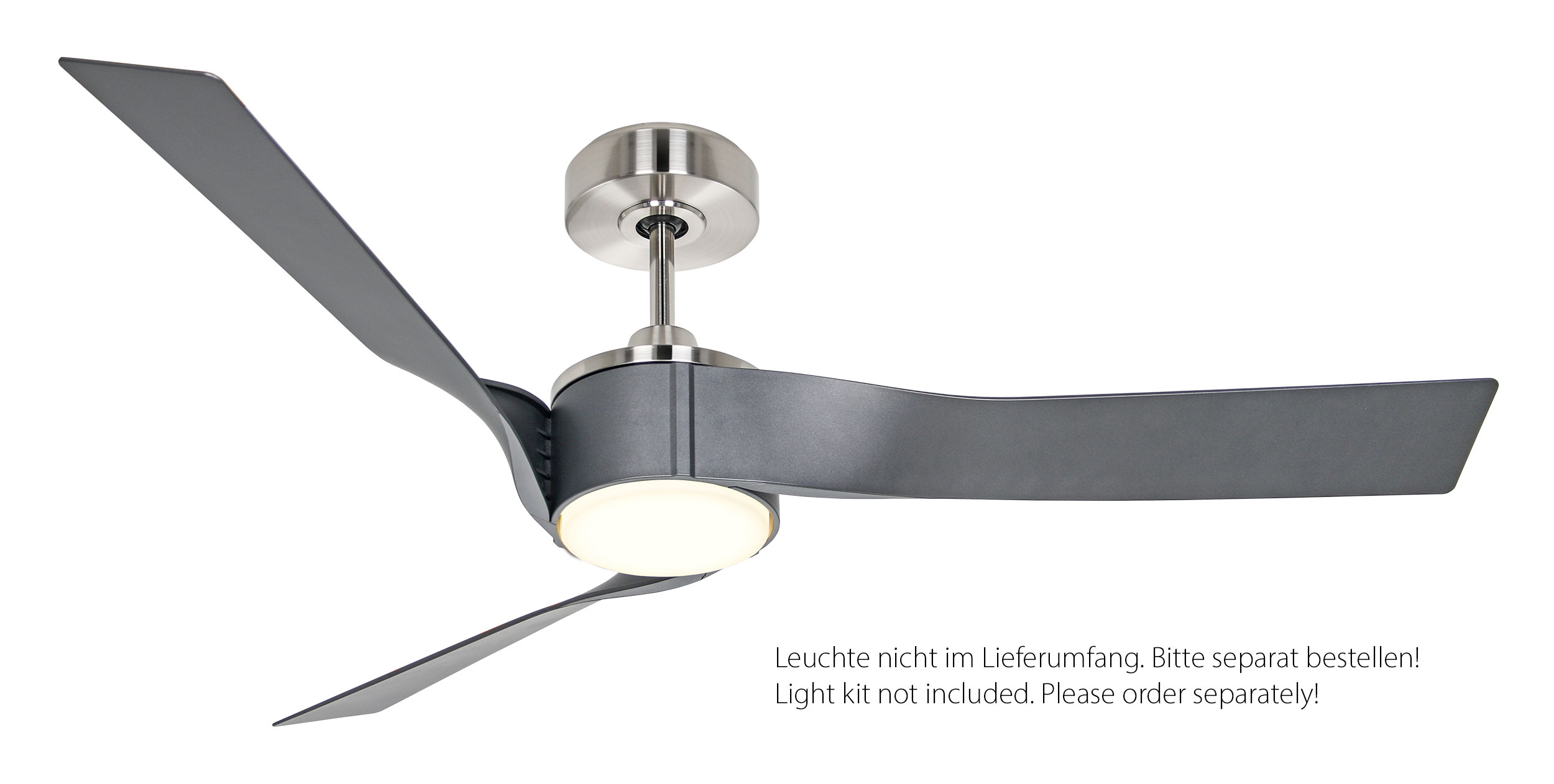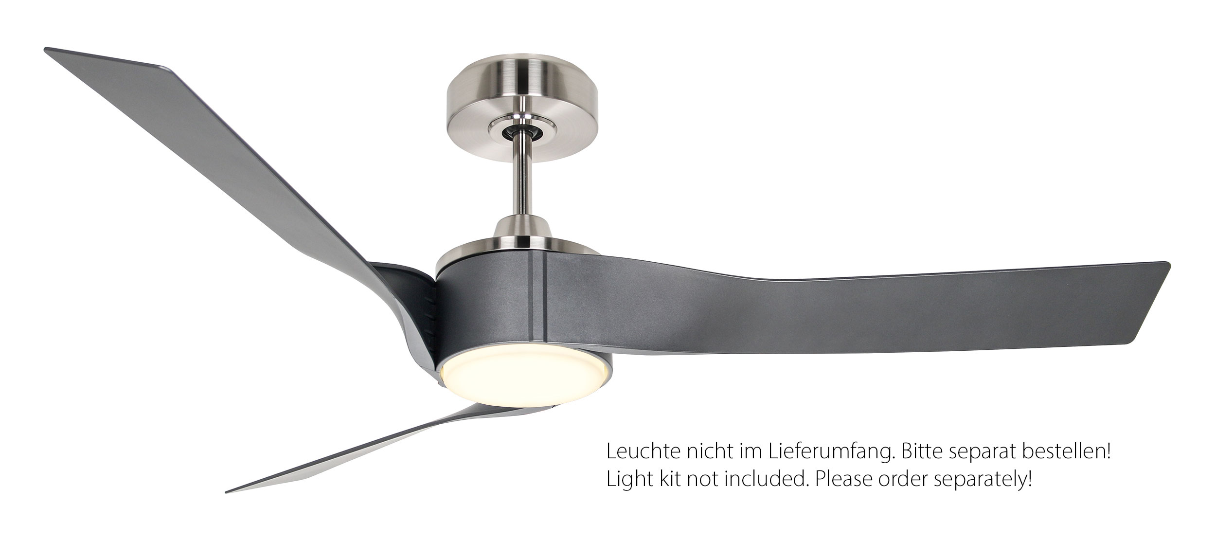 CasaFan ECO REVOLUTION BN-MMG, Energiespar Deckenventilator, Ø 136 cm, Gehäuse Chrom gebürstet, 3 Flügel Matt metallgrau aus Kunststoff für hohe Luftleistung, 220-240 V 50 Hz, DC/EC Motor 2,4-24 W, inkl. Funk-Fernbedienung (Motor 6 Stufen, Vor-/Rückwärtslauf - Sommer/Winter -, Schlaftimer, Licht ein/aus) und Wandhalter, Zeitlupenstufe, Drehzahl max. 30-144 U/min, inkl. 2 Deckenstangen (150 und 80 mm), Abstand Decke - Flügel 282 mm (212 mm mit kurzer Deckenstange), Montage an Schrägen bis 10°, gewuchteter Motor und Flügel, für Raumgrößen bis 35 m², Zubehör wie passende Leuchten erhältlich