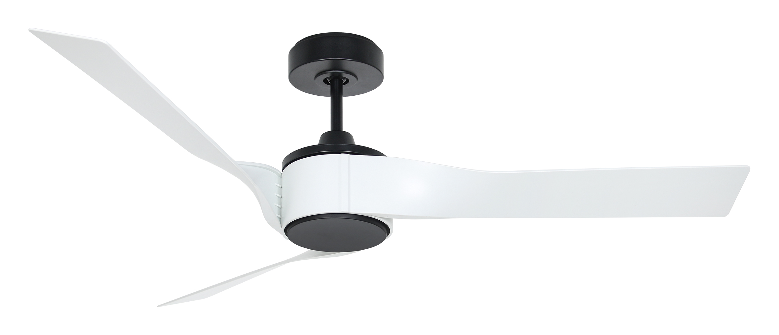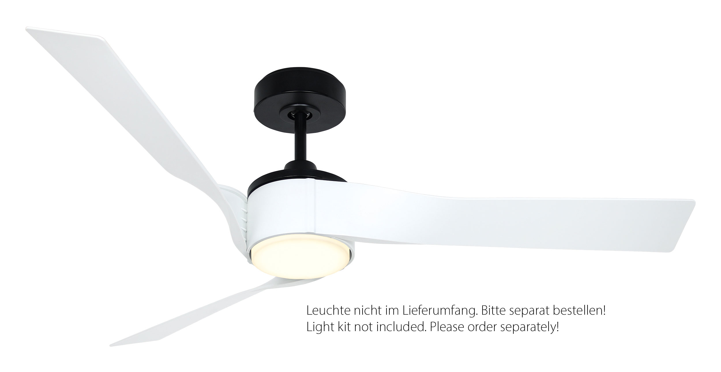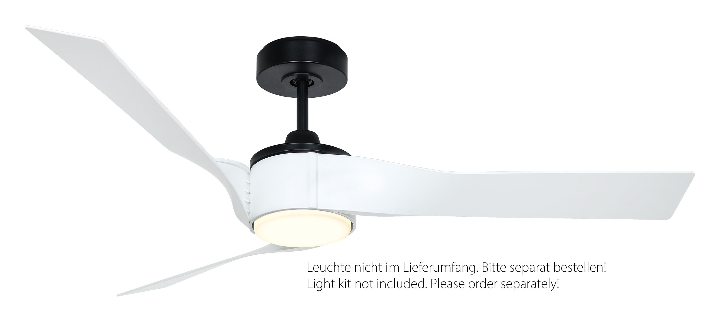 CasaFan ECO REVOLUTION MNS-MWE, Energiespar Deckenventilator, Ø 136 cm, Gehäuse Lack matt nachtschwarz, 3 Flügel Matt weiß aus Kunststoff für hohe Luftleistung, 220-240 V 50 Hz, DC/EC Motor 2,4-24 W, inkl. Funk-Fernbedienung (Motor 6 Stufen, Vor-/Rückwärtslauf - Sommer/Winter -, Schlaftimer, Licht ein/aus) und Wandhalter, Zeitlupenstufe, Drehzahl max. 30-144 U/min, inkl. 2 Deckenstangen (150 und 80 mm), Abstand Decke - Flügel 282 mm (212 mm mit kurzer Deckenstange), Montage an Schrägen bis 10°, gewuchteter Motor und Flügel, für Raumgrößen bis 35 m², Zubehör wie passende Leuchten erhältlich
