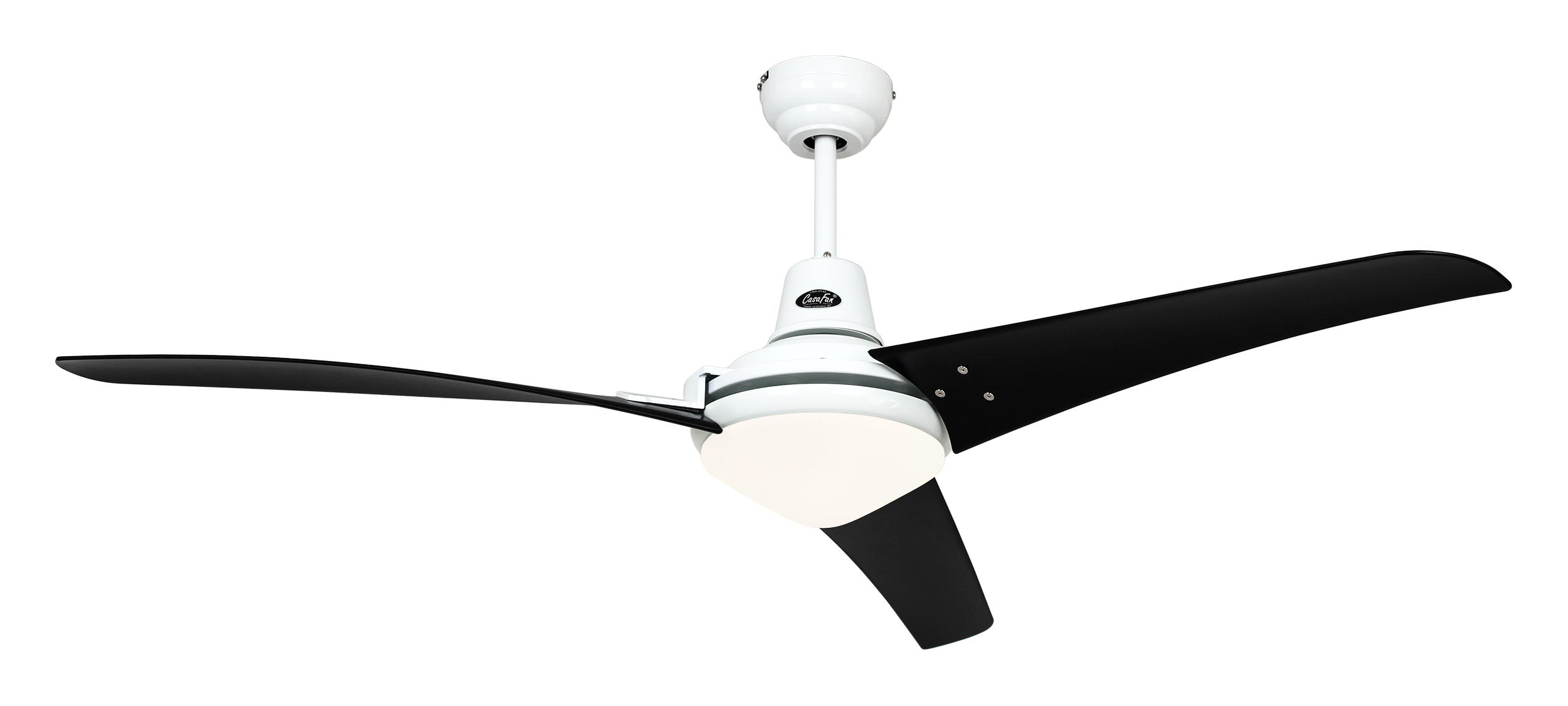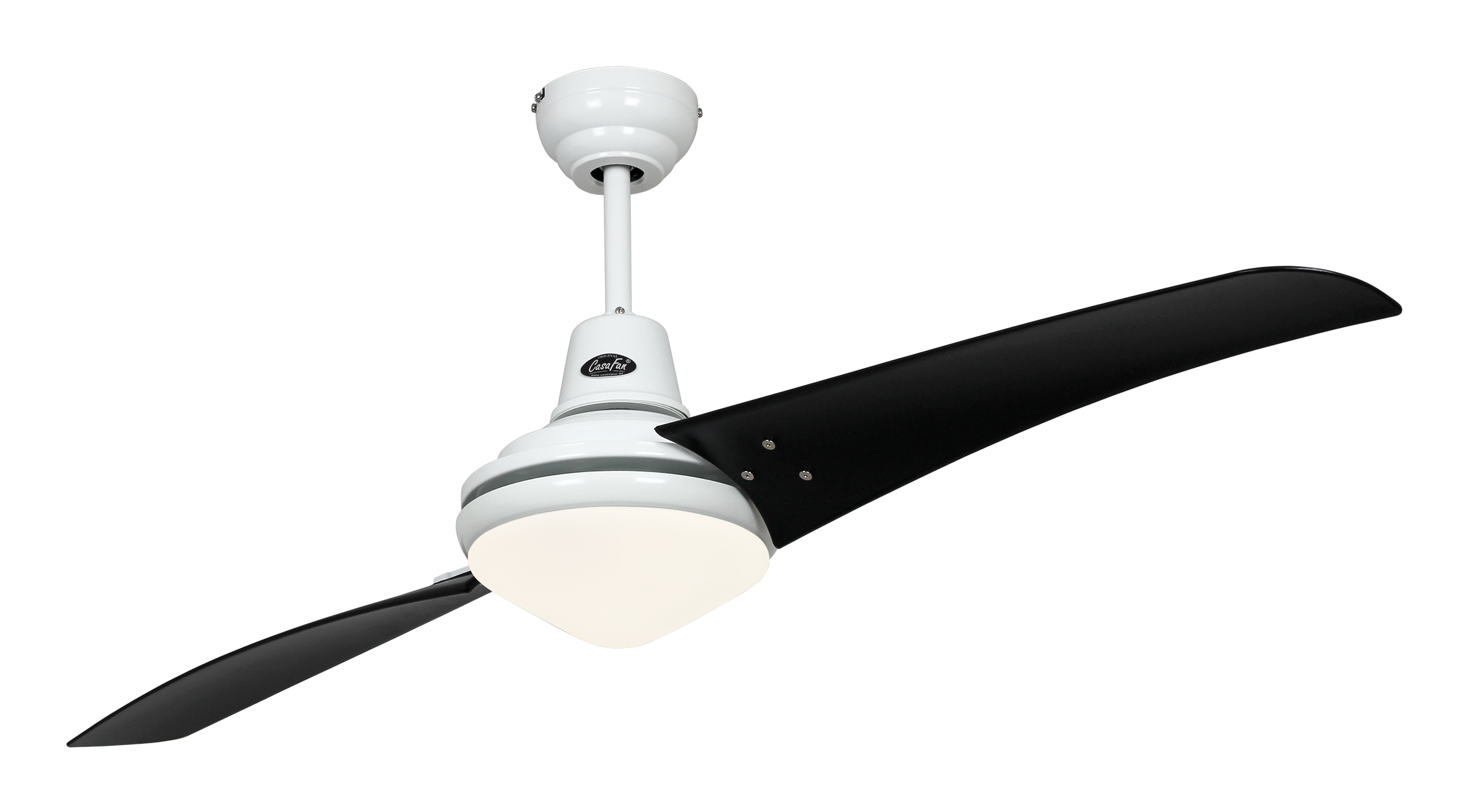 CasaFan MIRAGE WE-SW mit Fernbedienung, Deckenventilator, Ø 132 cm, Gehäuse Lack weiß, 5 Flügel Kunststoff Lack schwarz (wahlweise 2,3,4 möglich), inkl. Fernbedienung (Motor 3 Stufen, Licht ein/aus/dimmen) mit Wandhalter, inkl. Milchglasleuchte 2 x 40 W E27, für Energiesparleuchtmittel geeignet, 220-240 V 50 Hz, Motor 18-62 W, Vor-/Rückwärtslauf - Sommer/Winter - über Schiebeschalter, Drehzahl max. 231 U/min, inkl. 2 Deckenstangen (200 und 100 mm), Abstand Decke - Flügel 400 mm (300 mm mit kurzer Deckenstange), Montage an Schrägen bis 14°, gewuchteter Motor und Flügel, für Raumgrößen bis 32 m², Zubehör wie Austauschflügel, längere Deckenstangen und Wandschalter erhältlich
