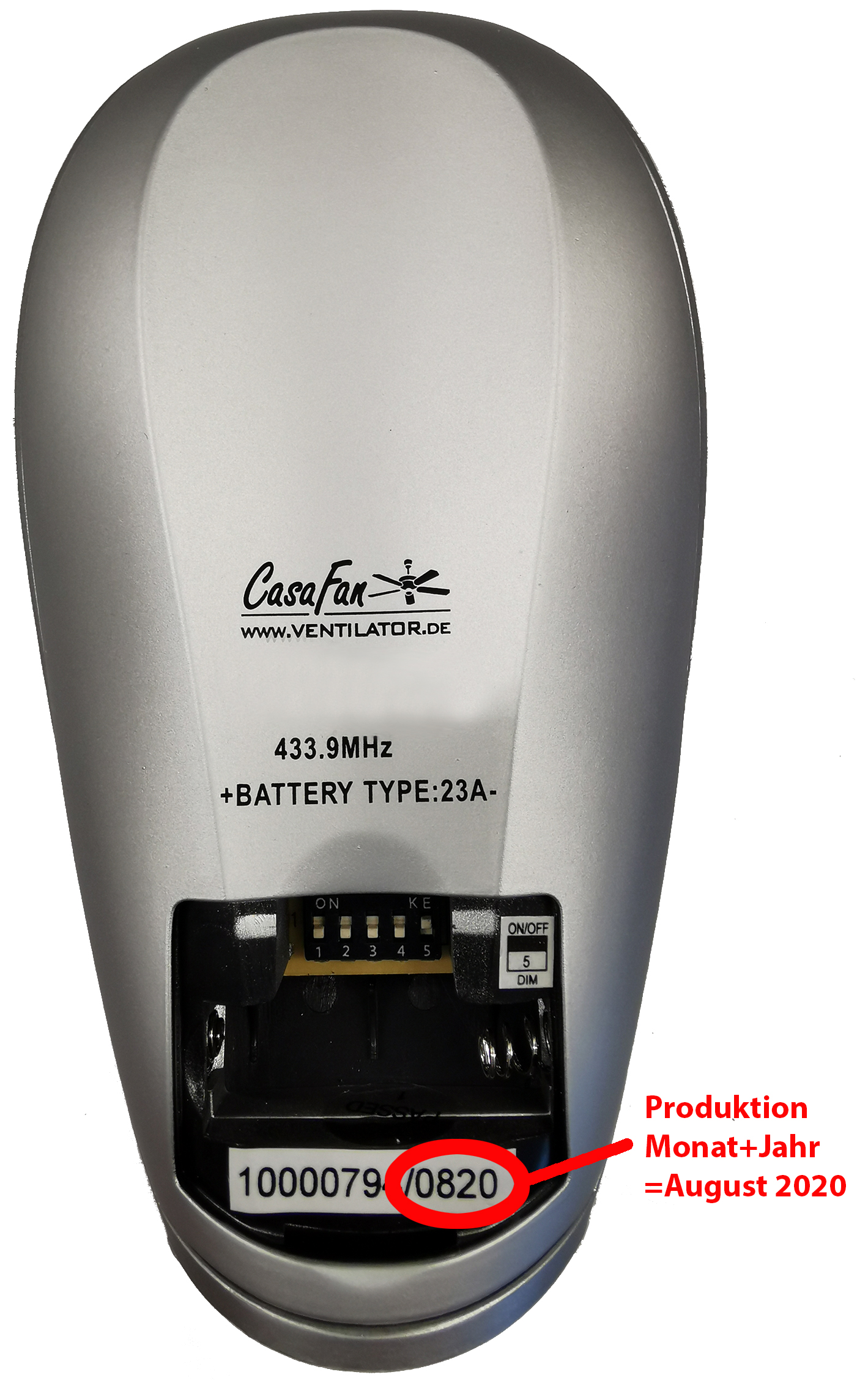 CasaFan FB-FNK Powerboat, Universal-Fernbedienung für Deckenventilatoren mit Design-Handsender. Achtung - Dimmen von Energiesparleuchtmittel ist nicht möglich. Daher bieten wir unsere Fernbedienung sowohl MIT als auch OHNE Dimmung an. Funktion: Motor 3 Stufen und Aus, Leuchte dimmen oder Leuchte An/Aus. Umschaltung Dimmung An/Dimmung Aus über einen DIP Switch. Funk-System im 434 MHz-Bereich, 16-fach codierbar, Reichweite ca. 10 Meter. Der Empfänger wird im Baldachin oder an der Deckenplatte (bei extraflachen Modellen) des Deckenventilators plaziert. Der Handsender inkl. Wandhalter hat eine Betriebs-LED und wird mit einer Batterie vom Typ 23A, 12 V betrieben (im Lieferumfang). Bei Einsatz von Deckenventilatoren für Dachschrägen vermindert sich die max. Neigung des Ventilators auf 20°. Nur für Empfänger ab Baujahr 2011.