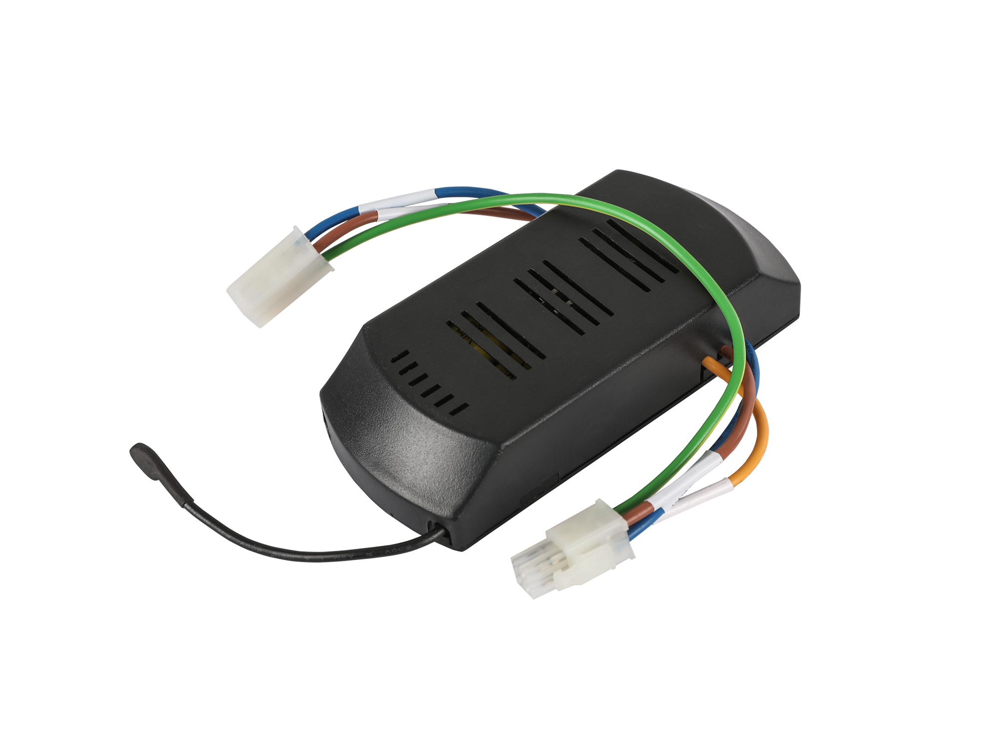 CasaFan FB-FNK Multicode-D mit HUNTER-Steckerbelegung , Universal-Fernbedienung für 1 Deckenventilator, mit Design-Handsender. Achtung - Dimmen von Energiesparleuchtmitteln ist nicht immer möglich. Daher bieten wir unsere Fernbedienung sowohl MIT als auch OHNE Dimmung an. Funktion: Motor 3 Stufen + Aus, Leuchte dimmen oder Leuchte An/Aus. Umschaltung Dimmung An/Dimmung Aus über einen Mikroschalter. Funk-System im 434 MHz-Bereich, 65.000-fach codierbar, Reichweite ca. 10 Meter. Der Empfänger wird im Baldachin oder an der Deckenplatte (bei extraflachen Modellen) des Deckenventilators platziert. Der Handsender inklusive Wandhalter hat eine Betriebs-LED und wird mit einer Batterie vom Typ 23A 12V betrieben (im Lieferumfang). Bei Einsatz von Deckenventilatoren für Dachschrägen vermindert sich die max. Neigung des Ventilators auf 16°.