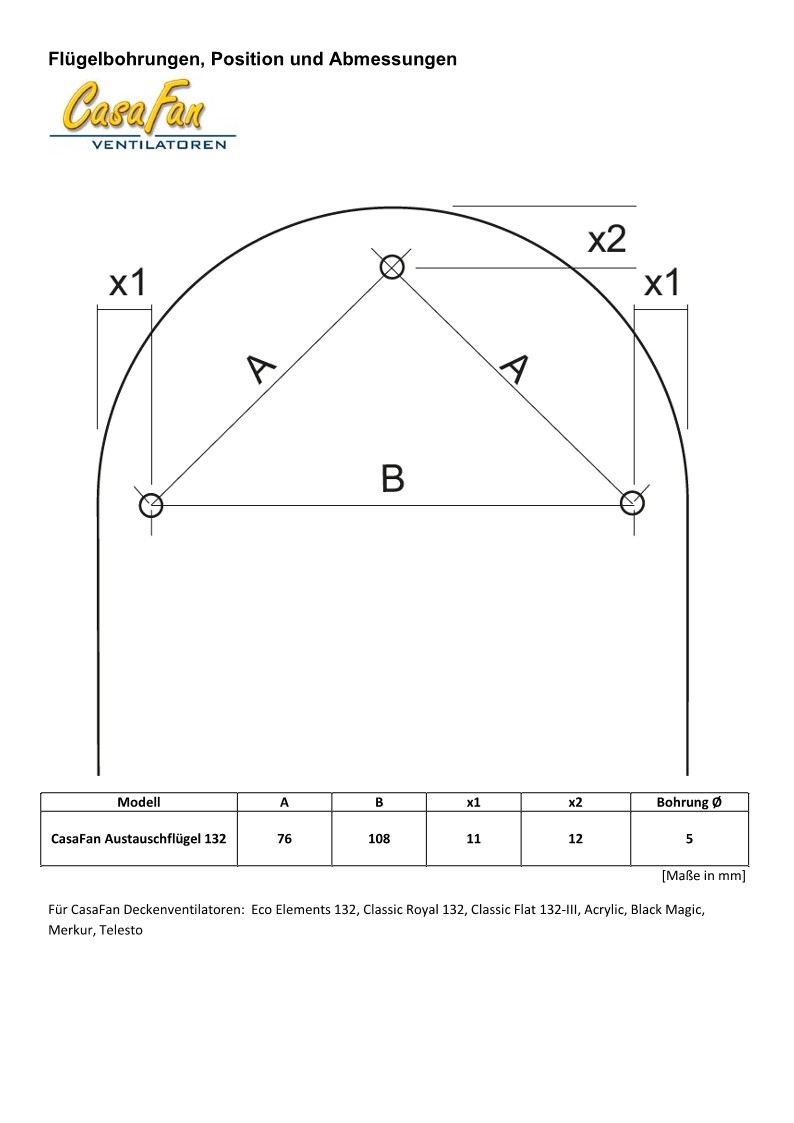 CasaFan Flügelsatz FLAT 132-III Nussbaum/Buche, für Ø 132, Set mit 5 Wendeflügeln für Deckenventilator Classic Flat-III und Eco Elements