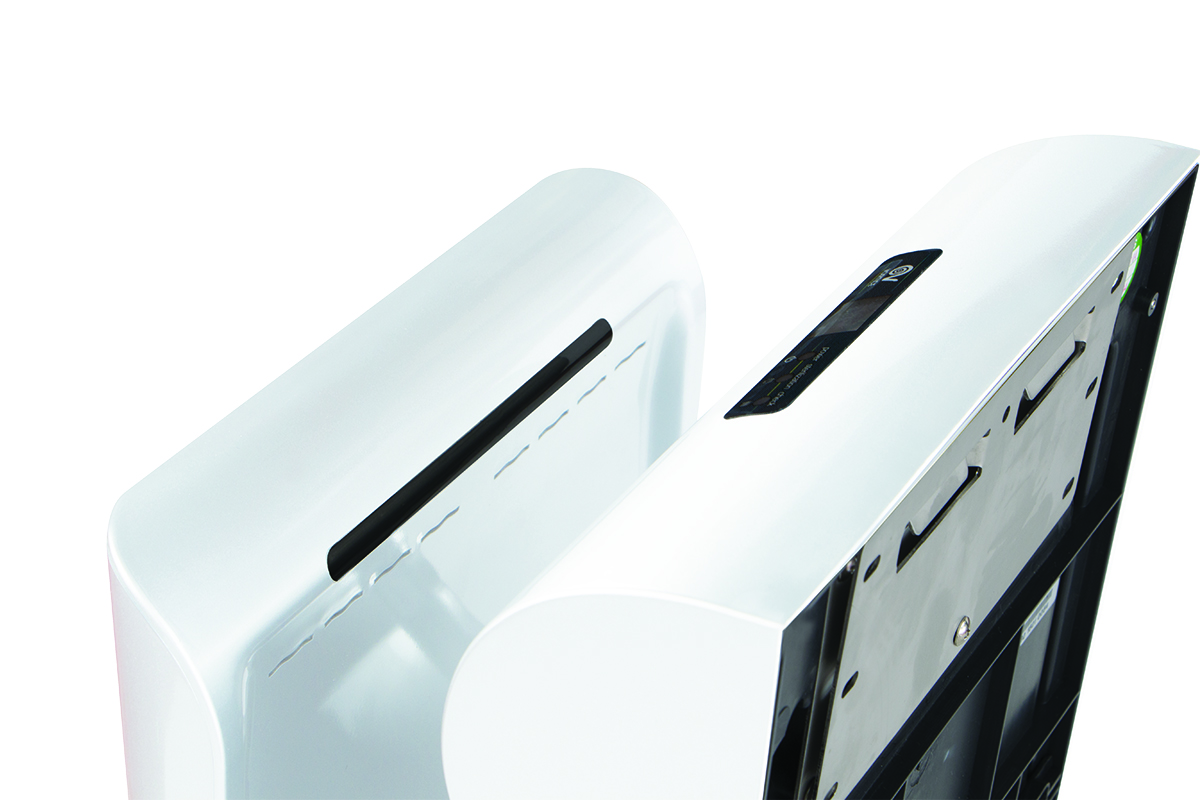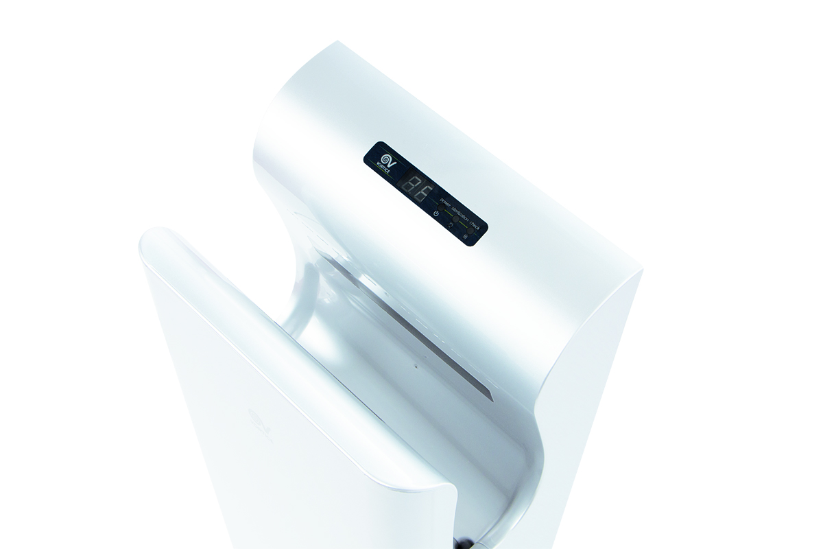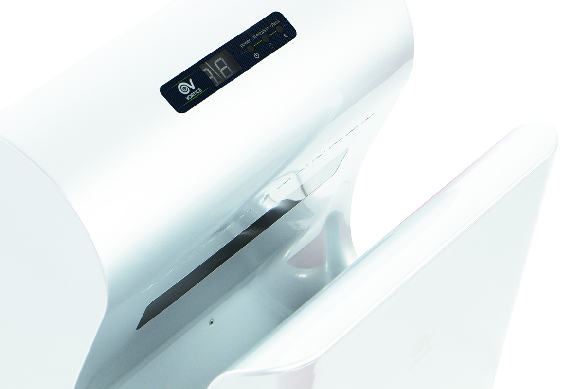 Händertrockner Vort Super Dry UV B, Farbe weiß, 220-224 V 50/60 Hz, Motor max. 750 W, automatischer elektrischer Luftklingen-Händetrockner. Ausgestattet mit einem HEPA-Filter und einer keimtötenden Lampe (UV), um die Hygiene der Benutzer zu schützen. Geeignet für die Installation in öffentlichen Einrichtungen, Schwimmbädern, Fitnessstudios, Wellnesszentren, Dienstleistungsbereichen usw., die täglich stark beansprucht werden. Display zur Visualisierung der Restlaufzeit und Warnleuchten, die den Betriebszustand des Produkts, den Sterilisationsstatus des Filters und eventuelle Anomalien anzeigen.
